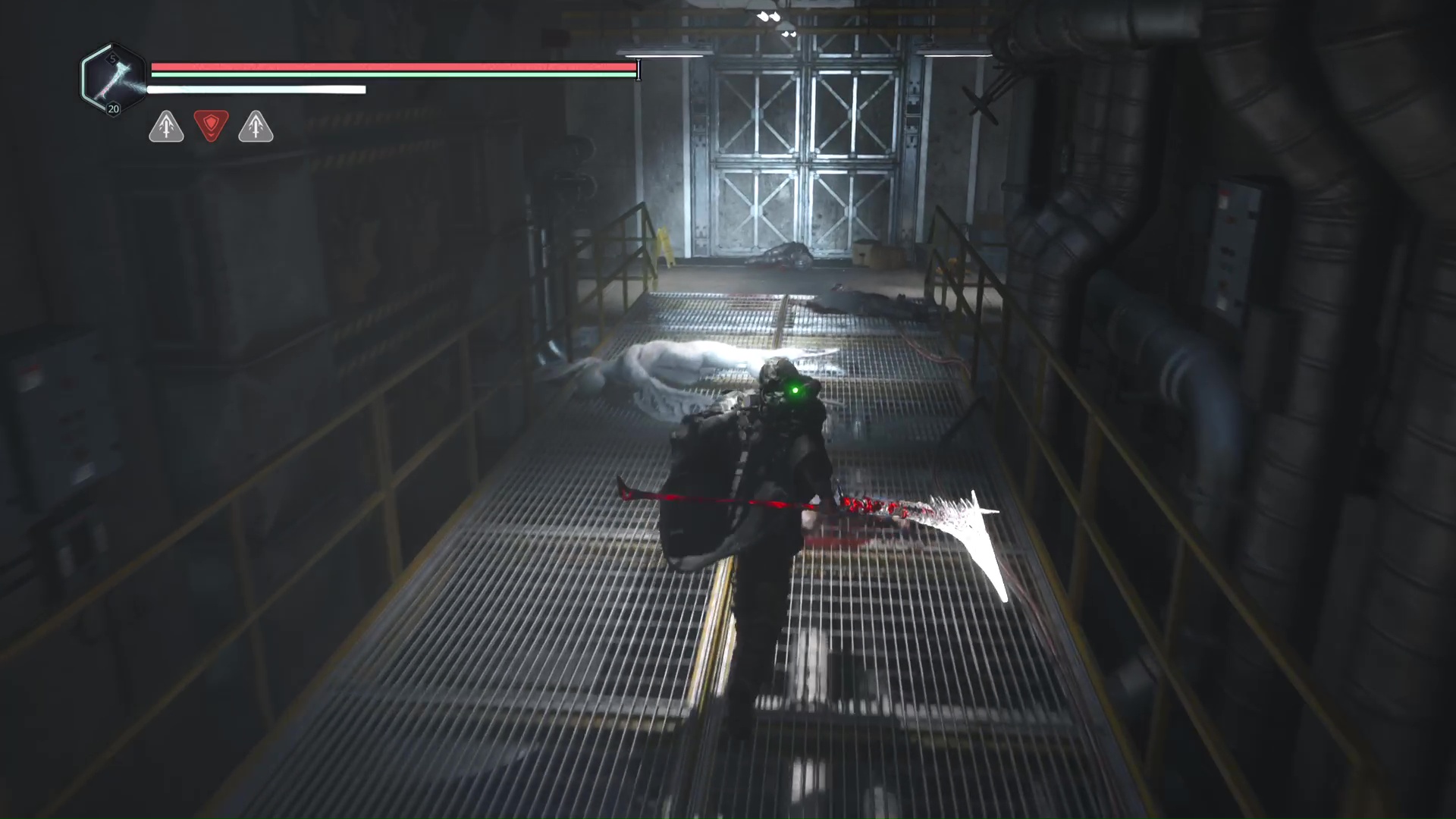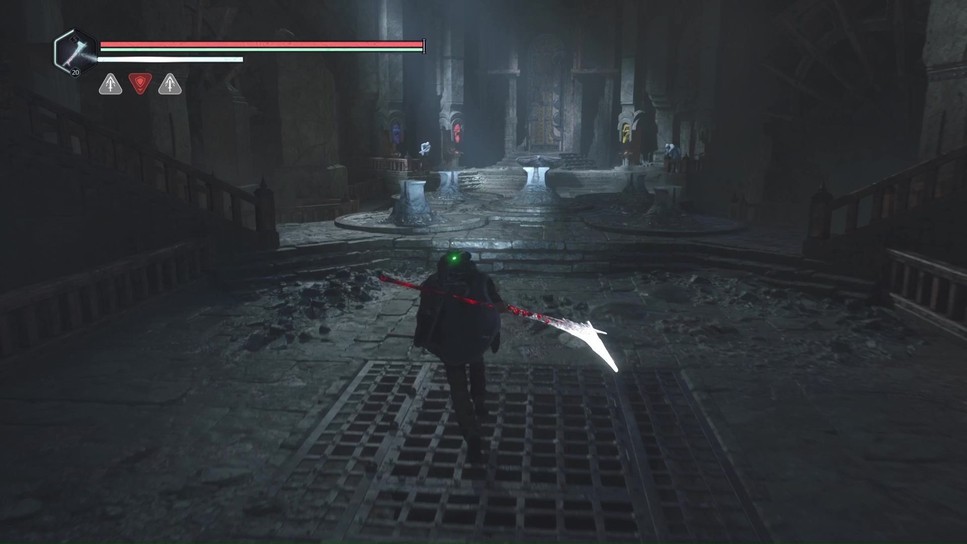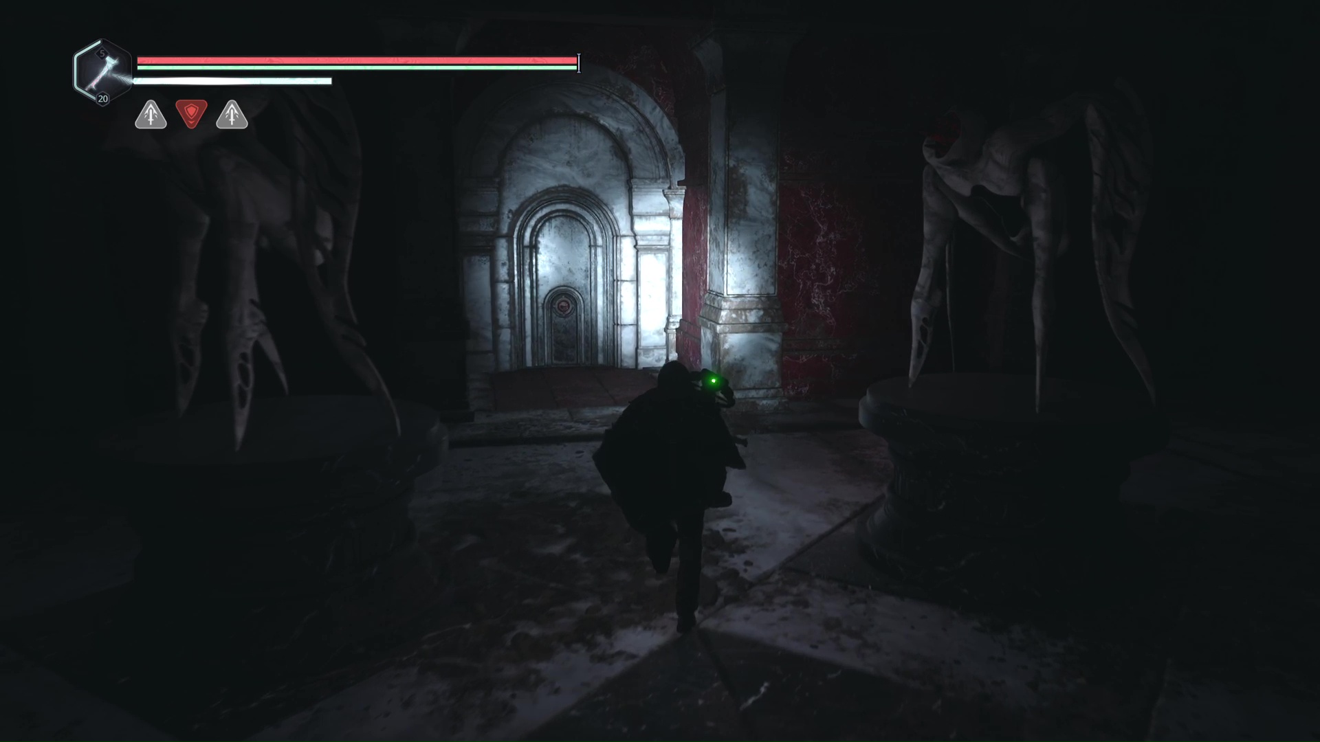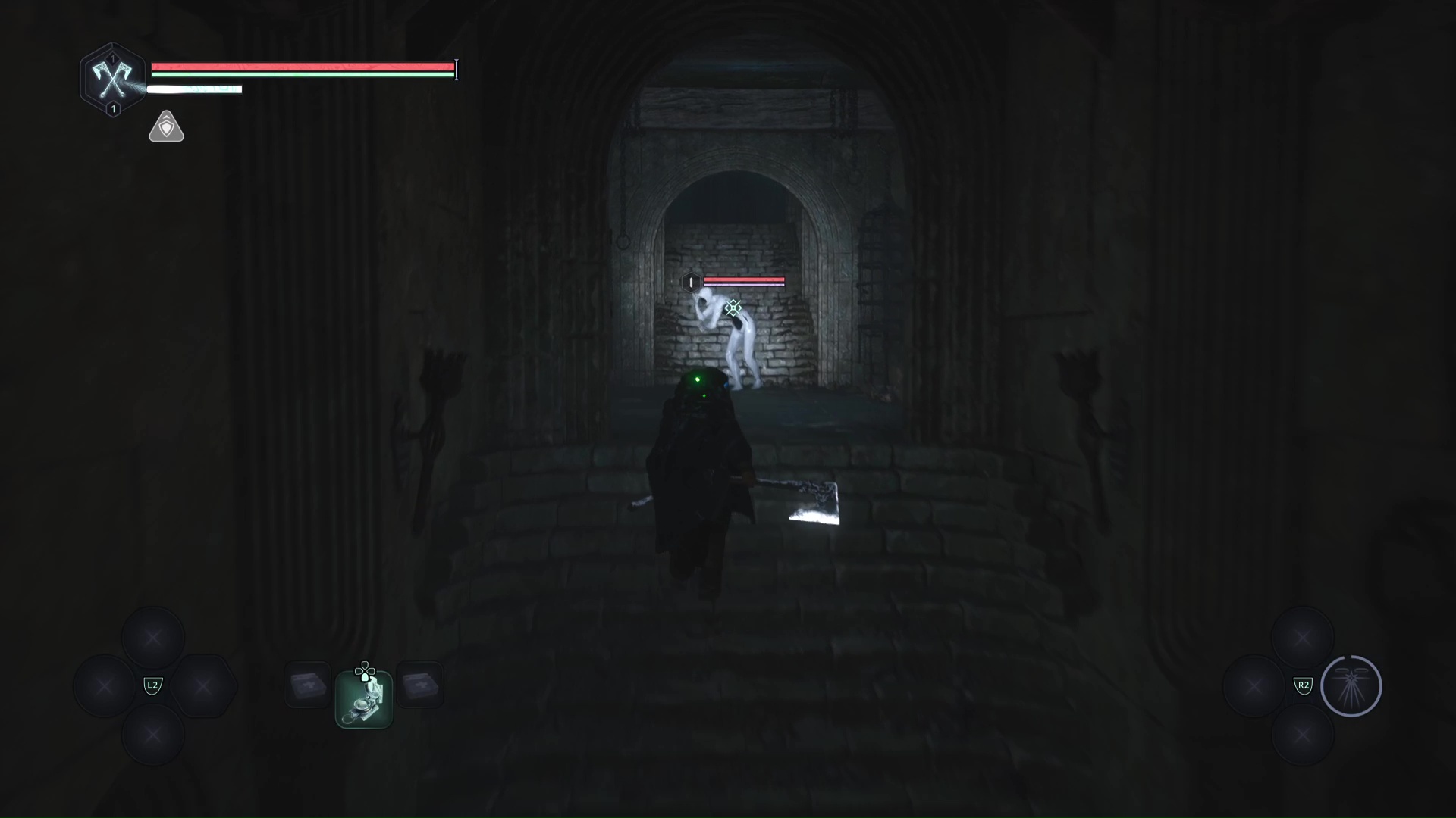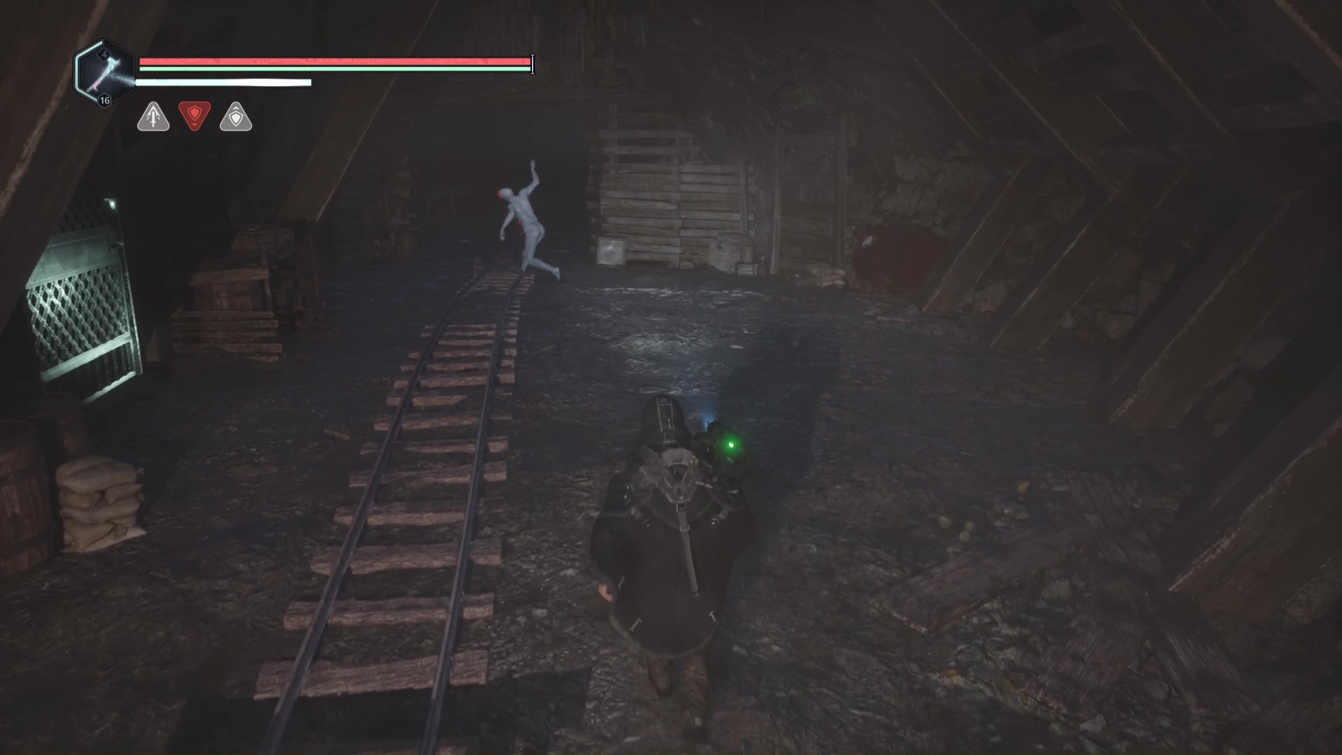 Au début du niveau, un tireur à distance vous visera depuis les hauteurs, sur la gauche. Progressez un peu dans le niveau histoire de le débusquer. Une fois cet Hollow Walker à votre portée, éliminez-le.