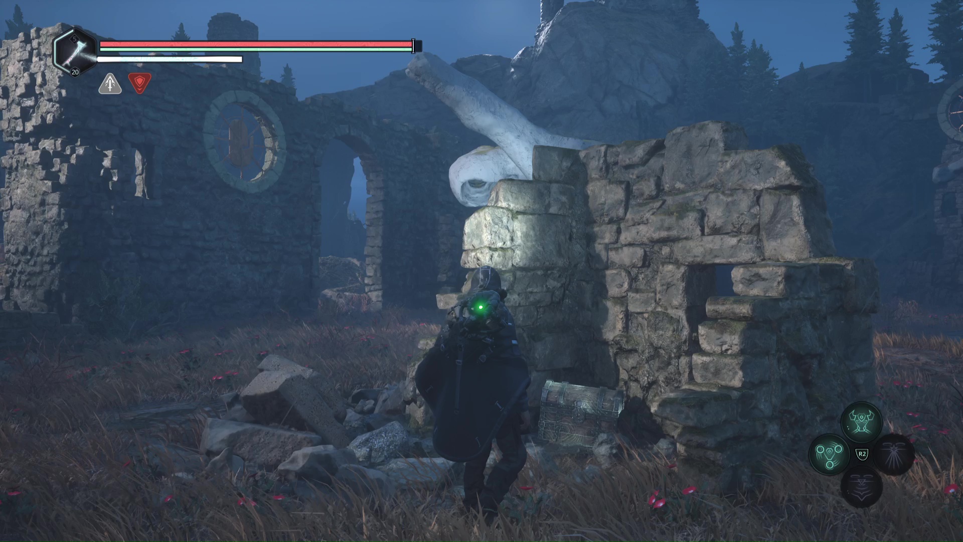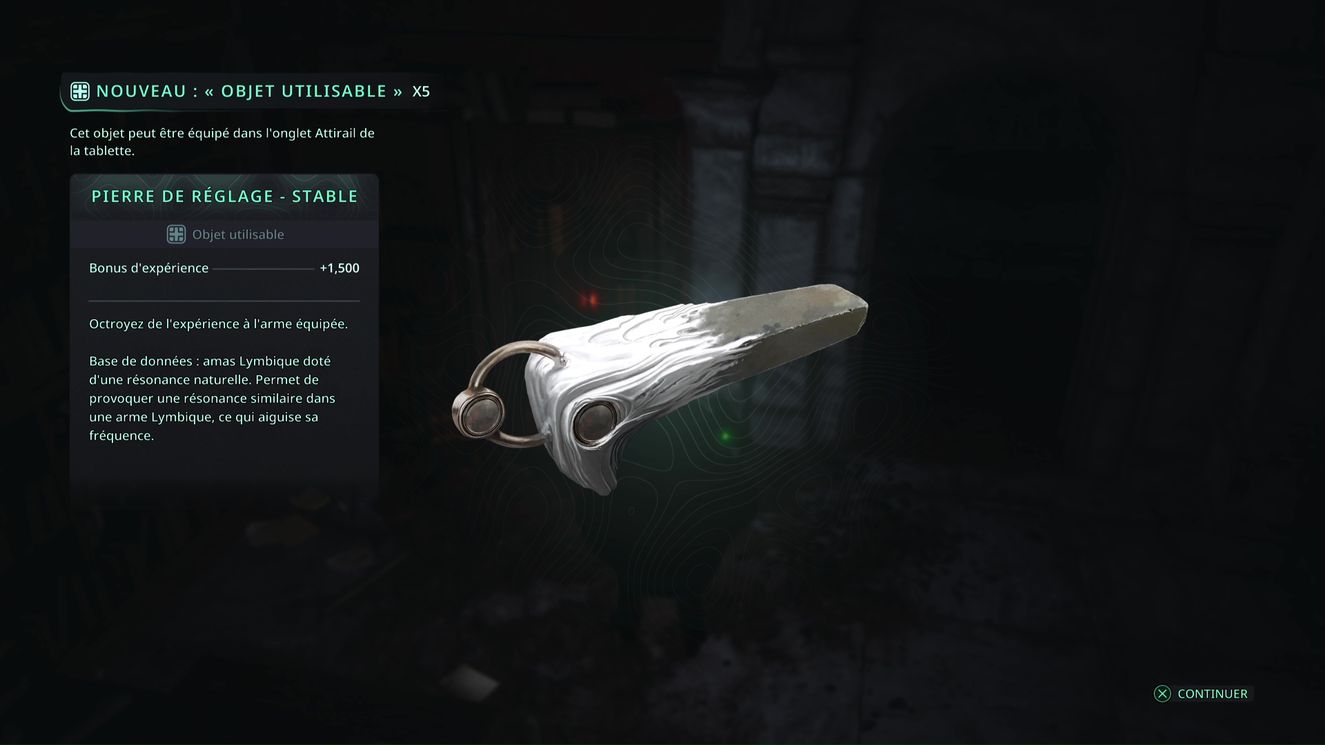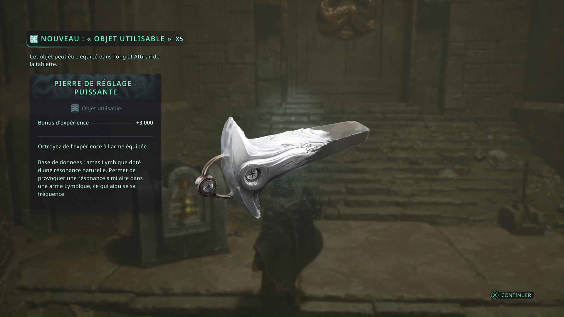 Progressez ensuite dans le donjon jusqu’à affronter une vague très importante d’Hollow Walkers. Une fois tranquille, le coffre lymbique vous attend quelques mètres plus loin. Ouvrez-le avec les bâtons pour récupérer 5 Pierres de réglage – Puissantes.
