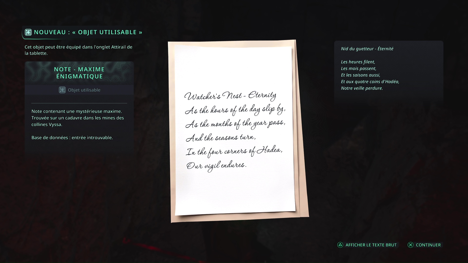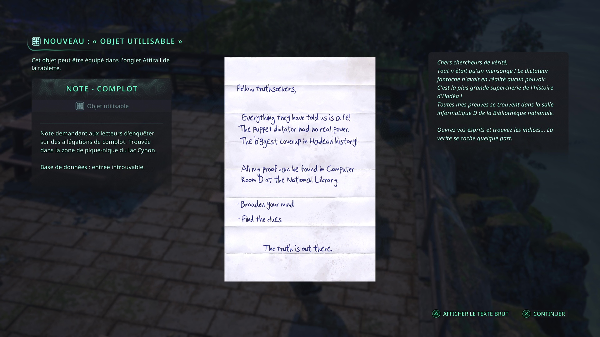 - Région concernée par le mystère : Lethé – Bibliothèque nationale