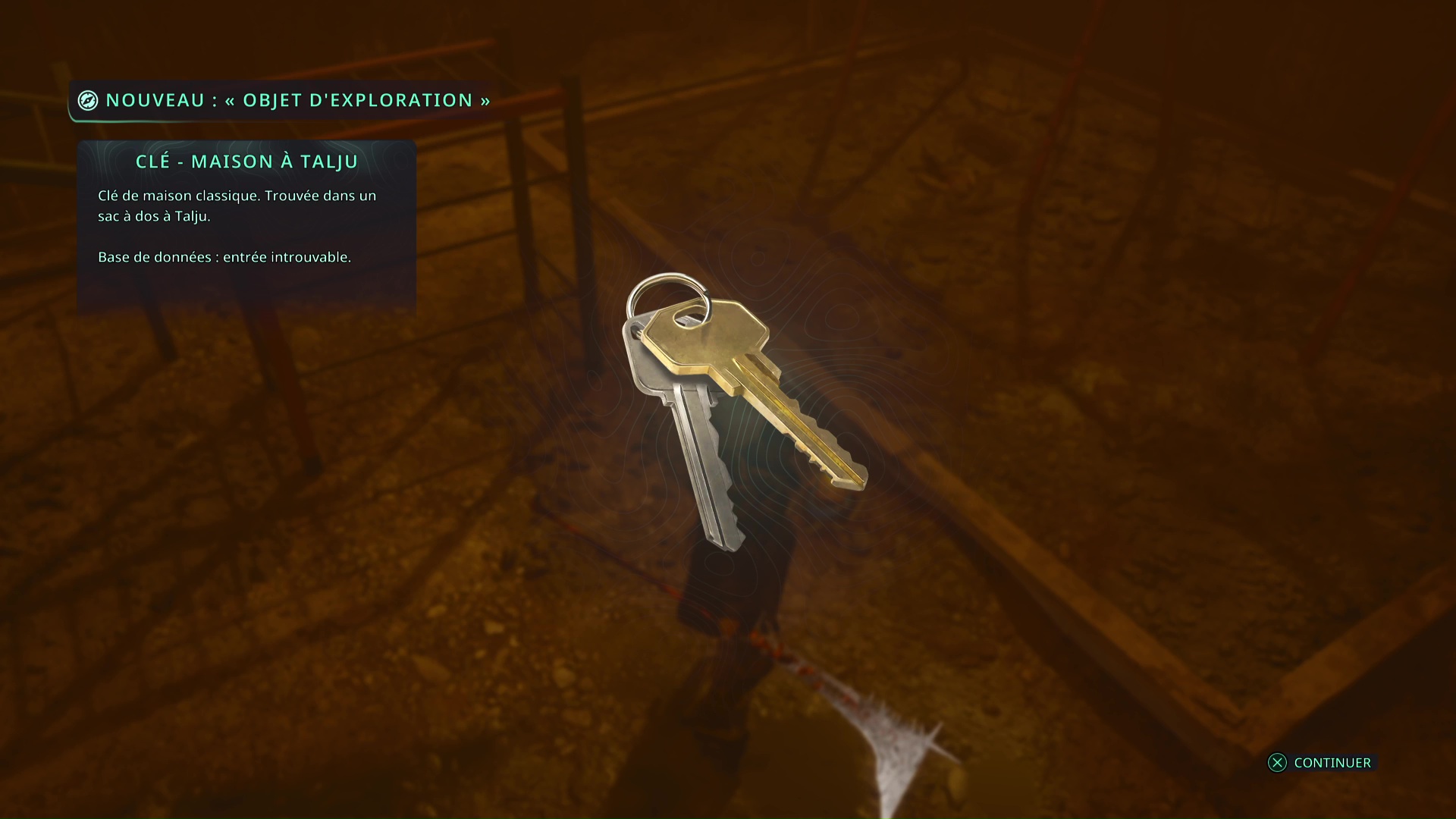 Montez à cette échelle et, en haut, ramassez l’objet par terre. Il s’agit d’une Clé – Rouillée.