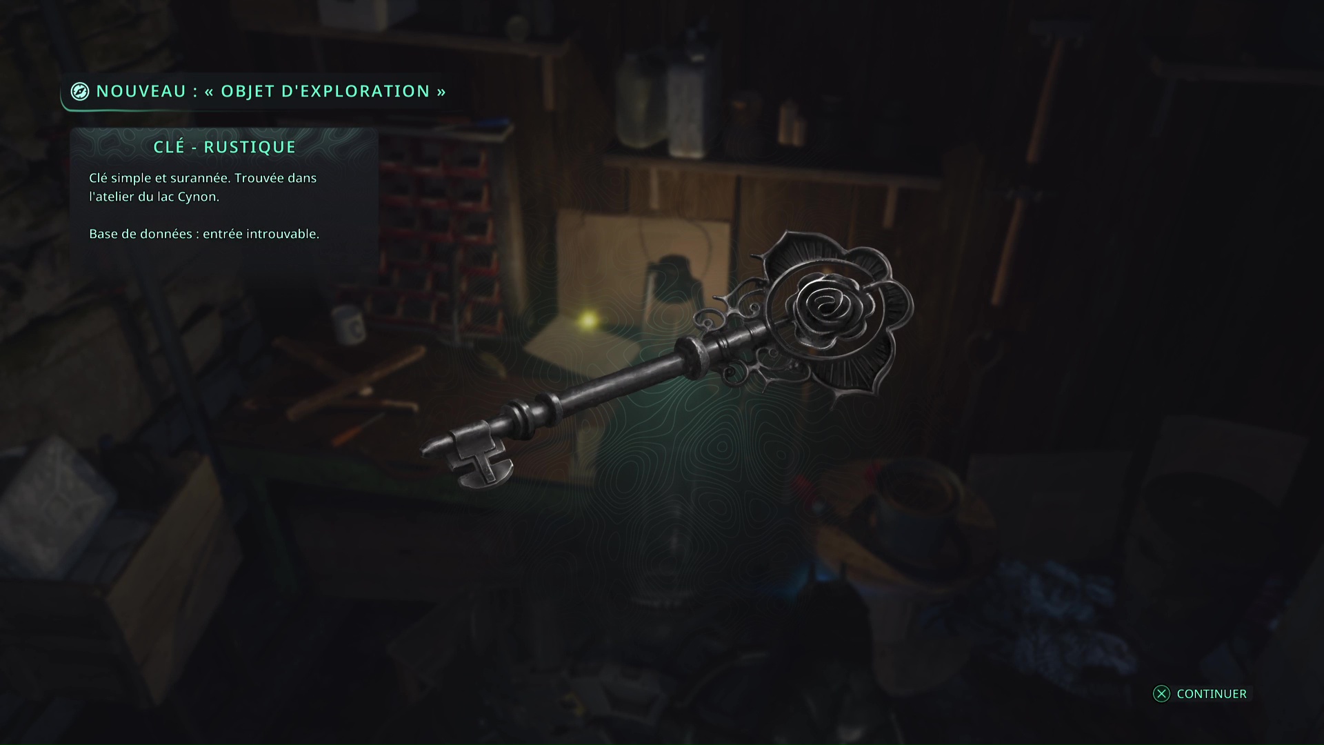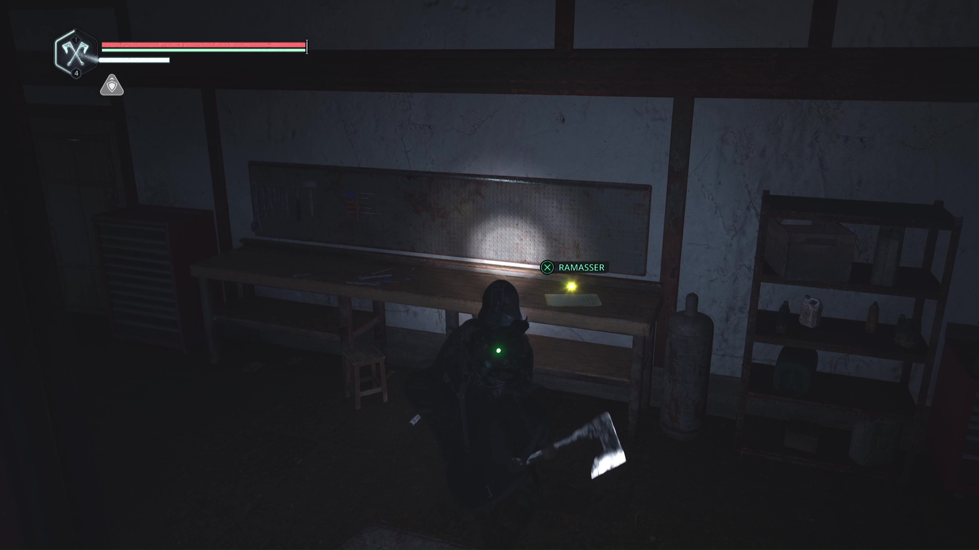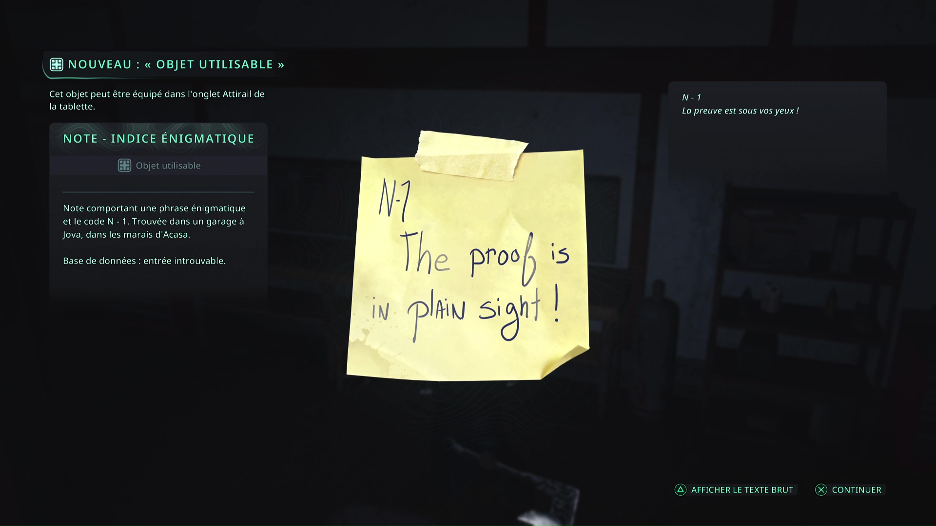Une première Note – Indice énigmatique « N-1 » se trouve au garage de Jova, au sud-ouest du village. Il se trouve sur l’établi.