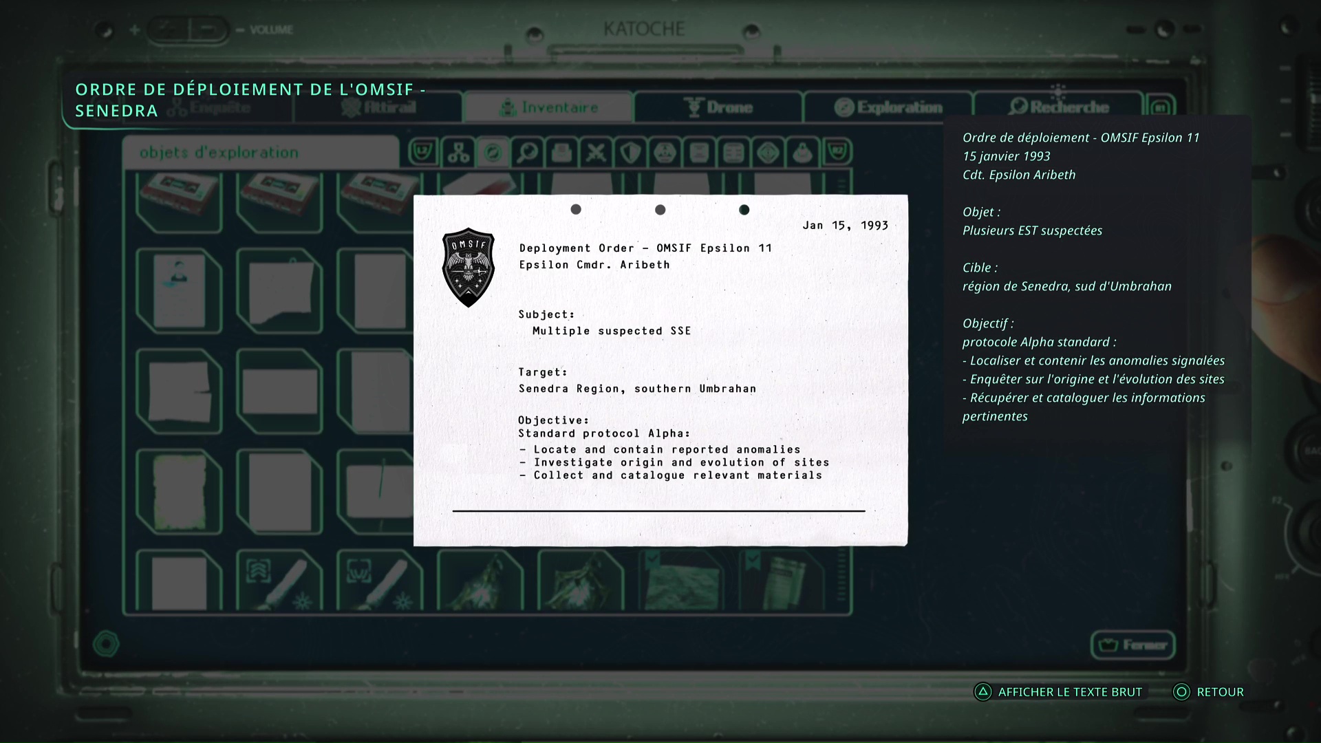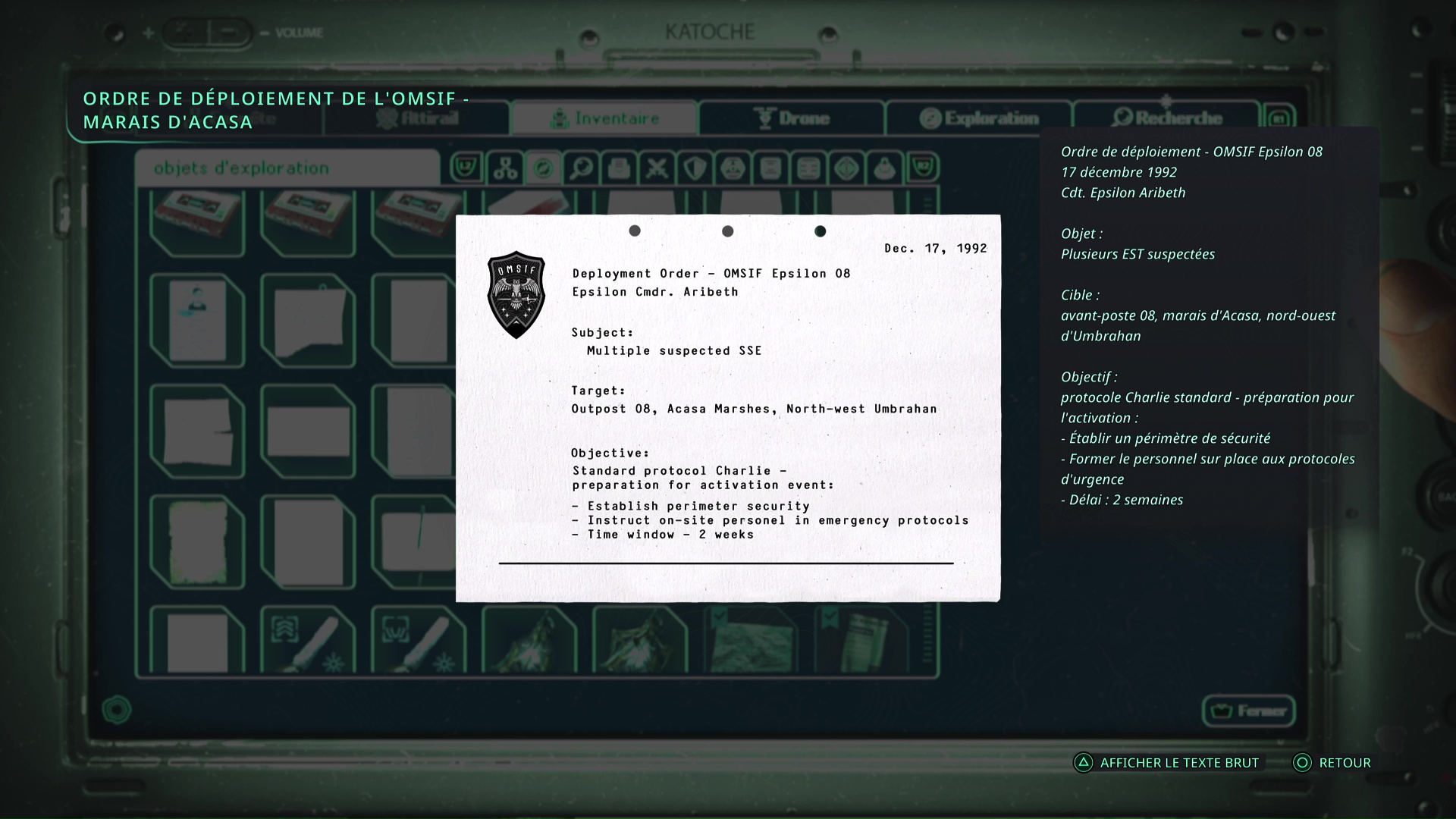 Techniquement, ce mystère ne peut se résoudre qu’à partir du moment où vous avez une deuxième clé des émotions. Vous recevrez un appel dans le VAB qui vous dira de fouiller sous un siège pour trouver une série de codes. Ces codes permettent de déverrouiller un avant-poste OMSIF situé au nord-est de Jova, dans les Marais d’Acasa.