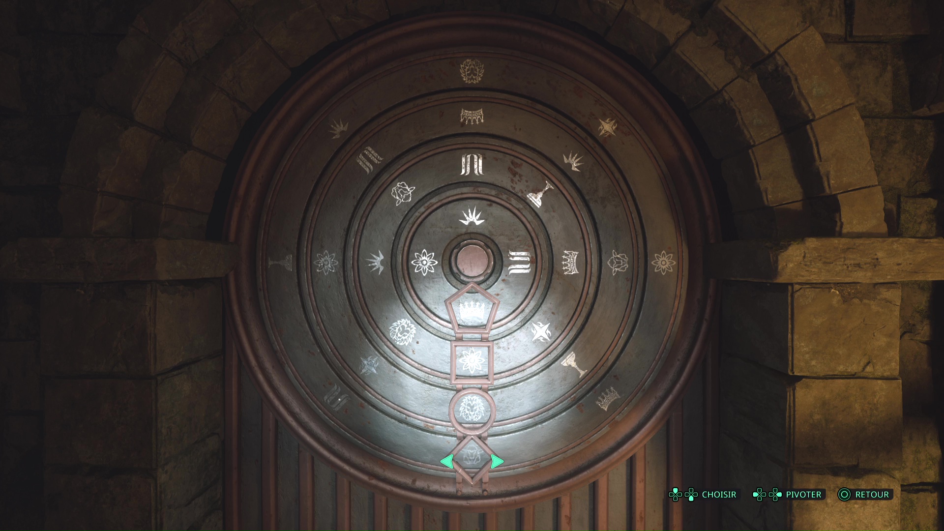 Quoi qu’il en soit, voici la solution, de haut en bas, de la disposition des symboles : Couronne – Fleur – Lion – Agneau. Une fois la porte déverrouillée, le mystère sera résolu.