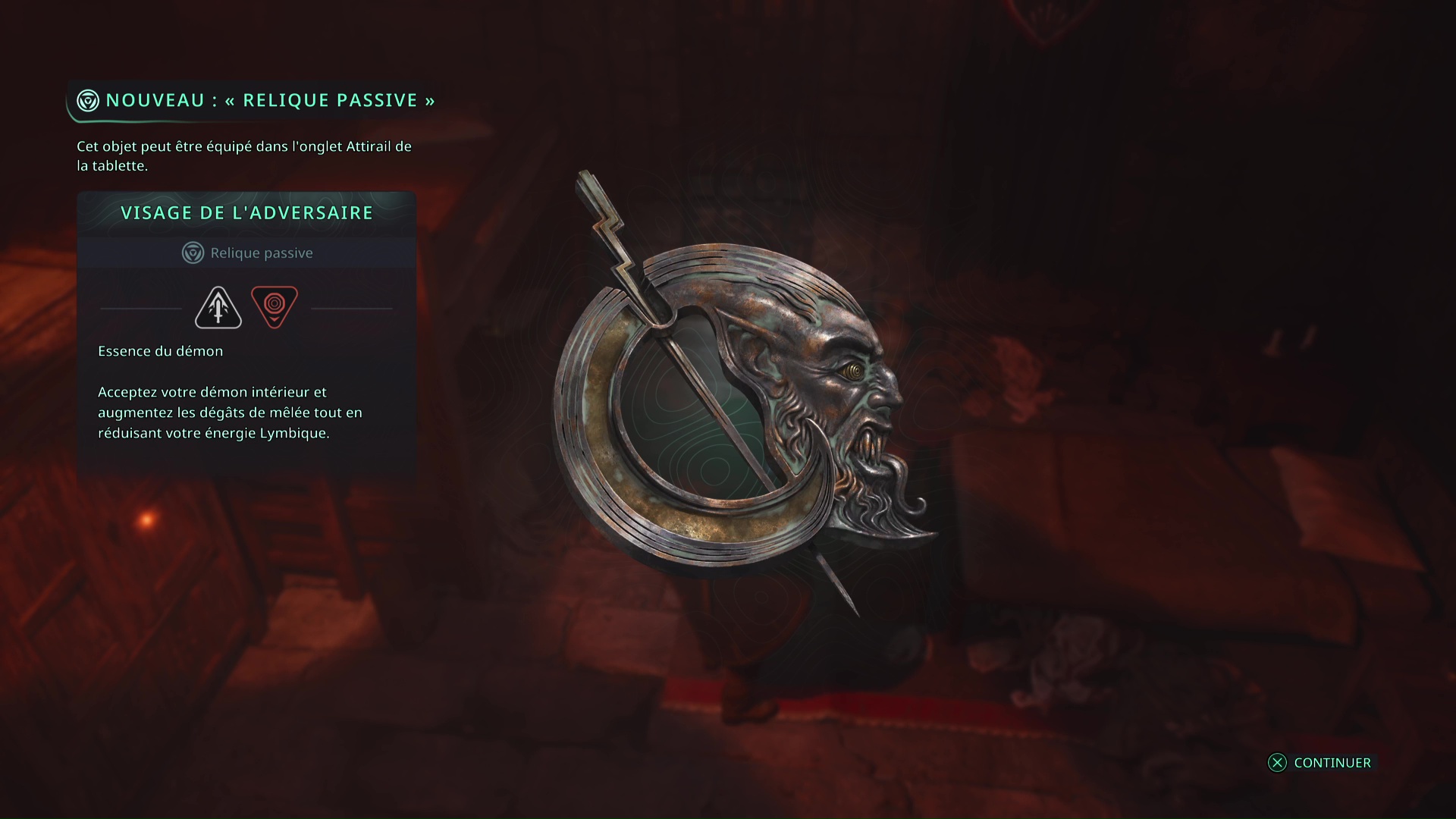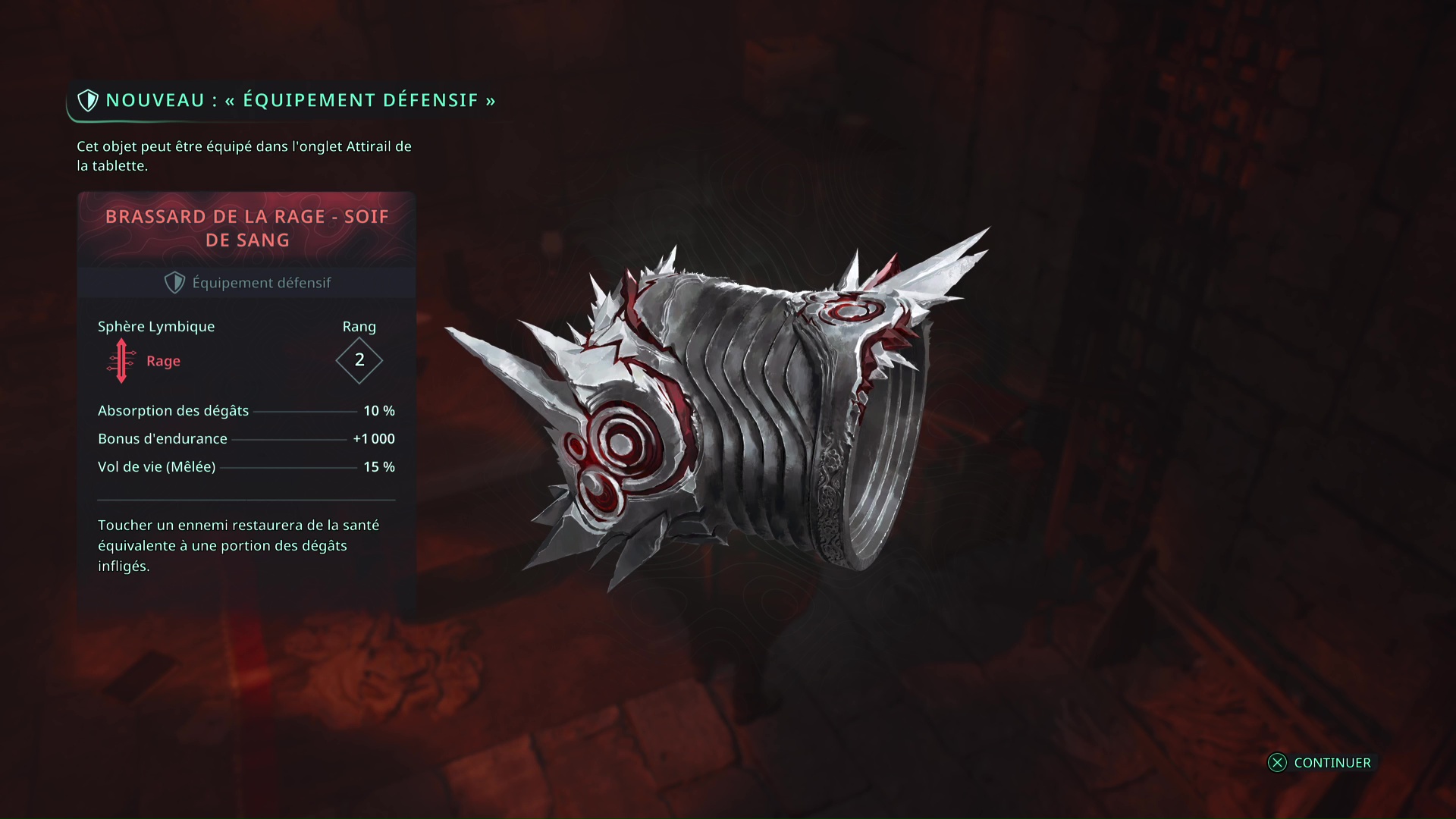 Vous trouverez dans la salle révélée 2 Pierres de réglage – Puissantes, un Brassard de la rage – Soif de sang (Rang 2), la relique Visage de l’adversaire et 2 Batteries lymbiques – Grandes.