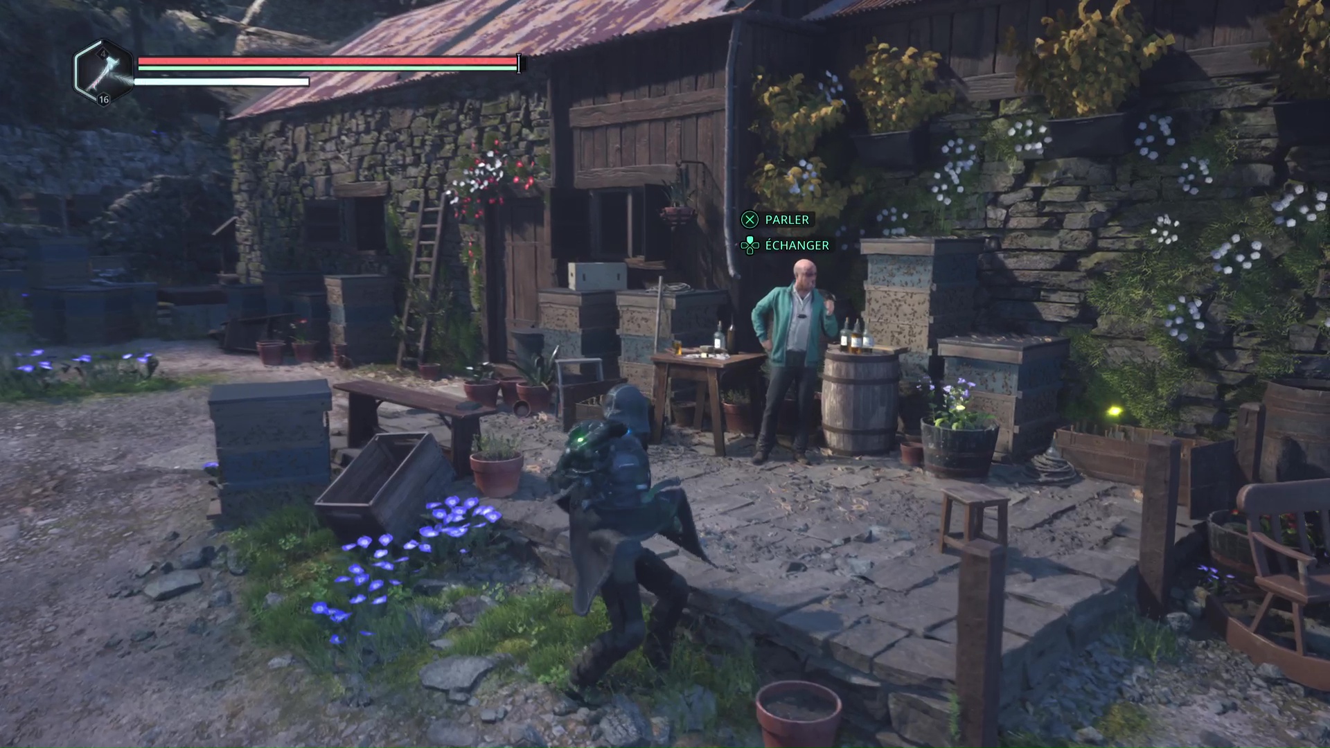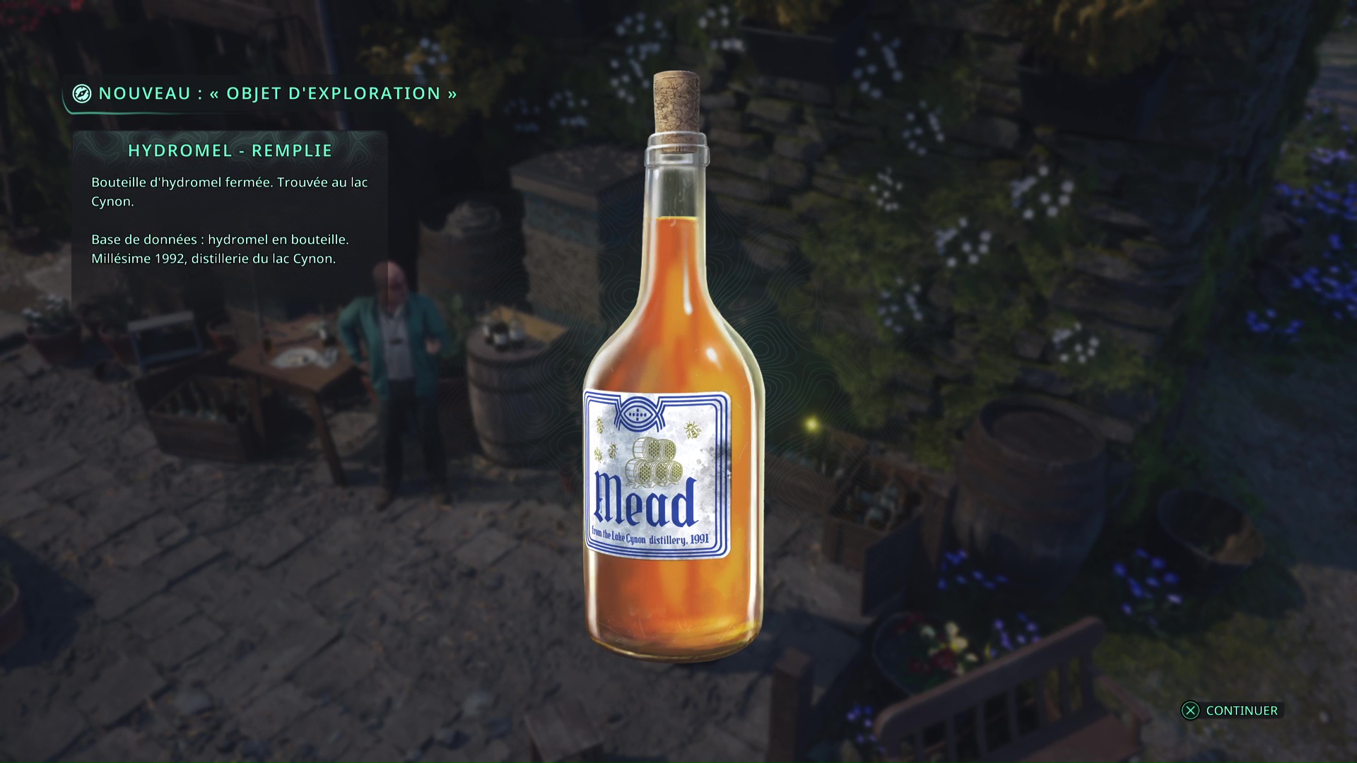 Dès que c’est le cas, voyagez jusqu’au Lac Cynon et allez tout au bout des champs de fleurs pour tomber sur une petite maison. L’abbé s’y trouvera avec Rebecca et un point brillant doré peut être examiné à côté de l’abbé. Il s’agit d’une bouteille d’Hydromel – Remplie.