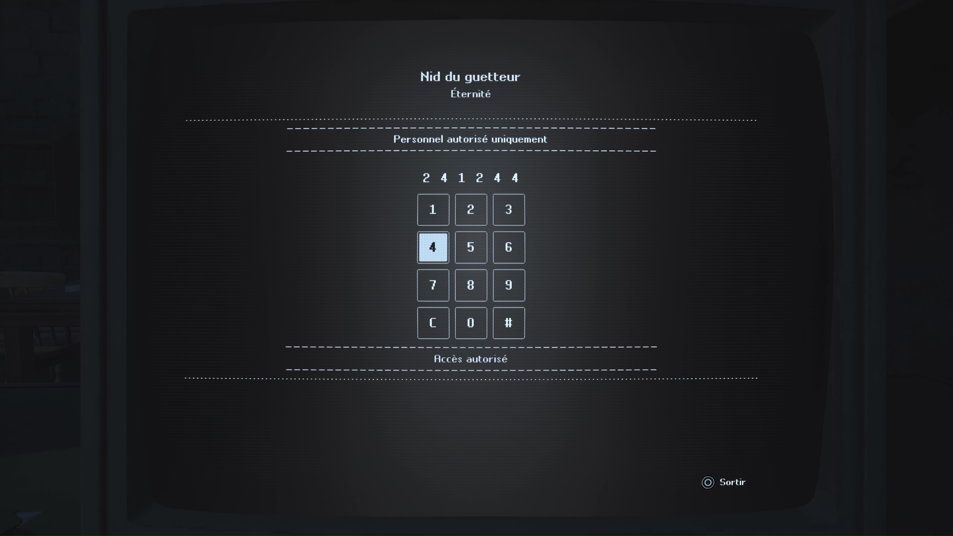 Retournez au poste de surveillance et fiez-vous aux chiffres entourés. La combinaison est donc 4132. Le mystère est résolu.