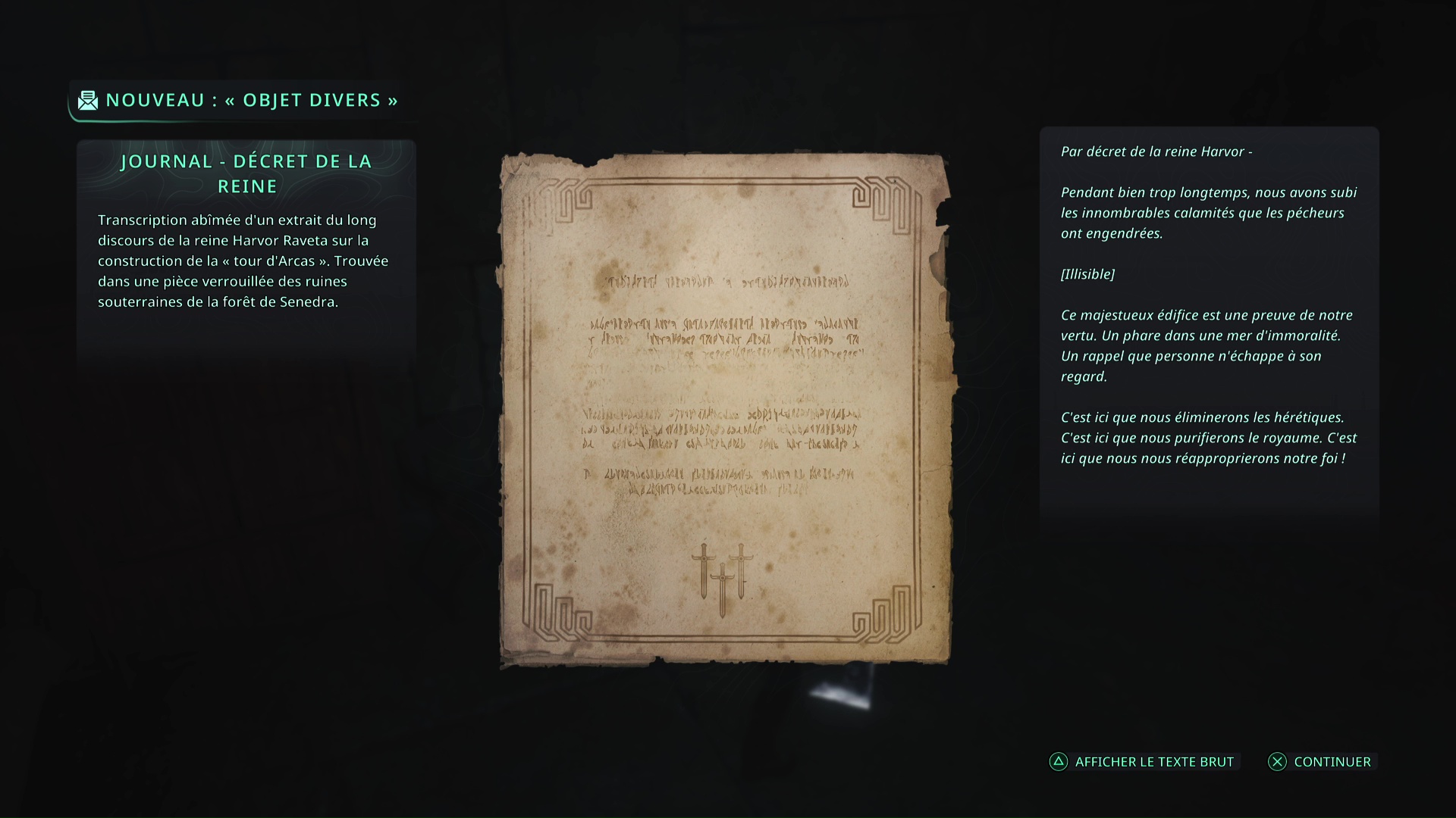 Voici un mystère qui peut être démarré dès votre premier voyage au cœur du village de Jova, mais qui ne pourra être accompli qu’une fois l’Acte 2 commencé et l’Evangile de Teâar récupéré dans le bureau de restauration de livre de Lethé – Bibliothèque nationale.