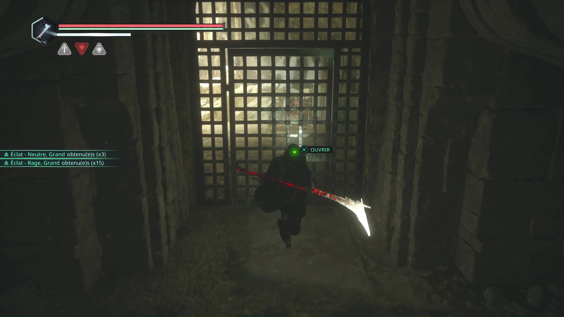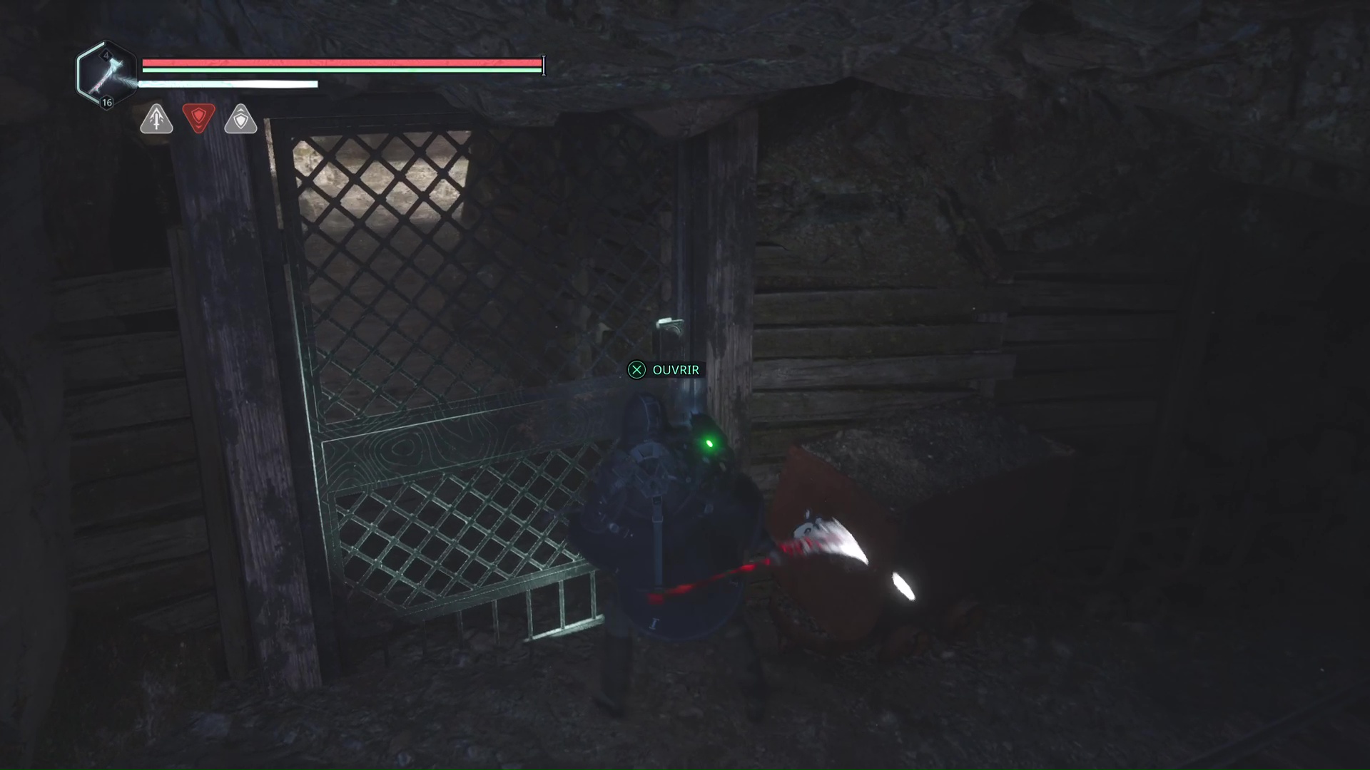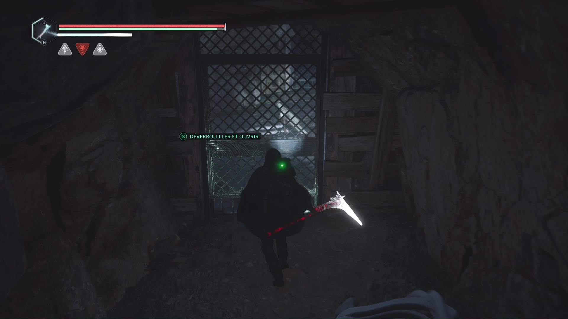 Continuez jusqu’à un Hollow Walker-Haze de rage, éliminez-le et ouvrez une nouvelle porte sur la gauche. Avancez jusqu’à devoir déverrouiler une porte, puis allez en face pour utiliser une fois encore votre clé de la mine.