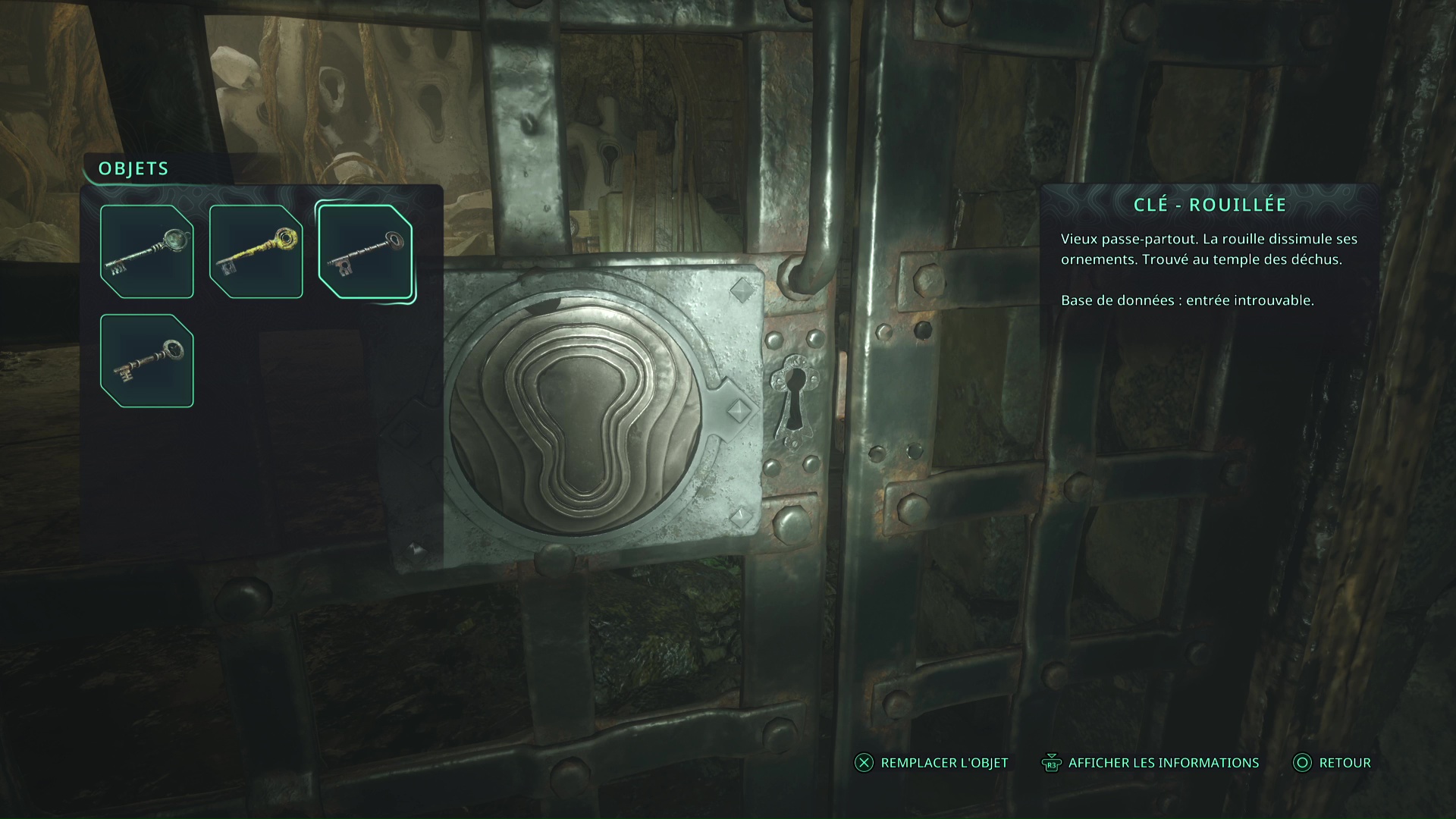 Patience ensuite puisque vous ne pourrez utiliser la clé qu’à la fin du donjon, après avoir éradiqué la boucle temporelle. Grâce à la Clé – Rouillée automatiquement récupérée en battant le boss, entrez dans la tour en face et déverrouillez la porte.