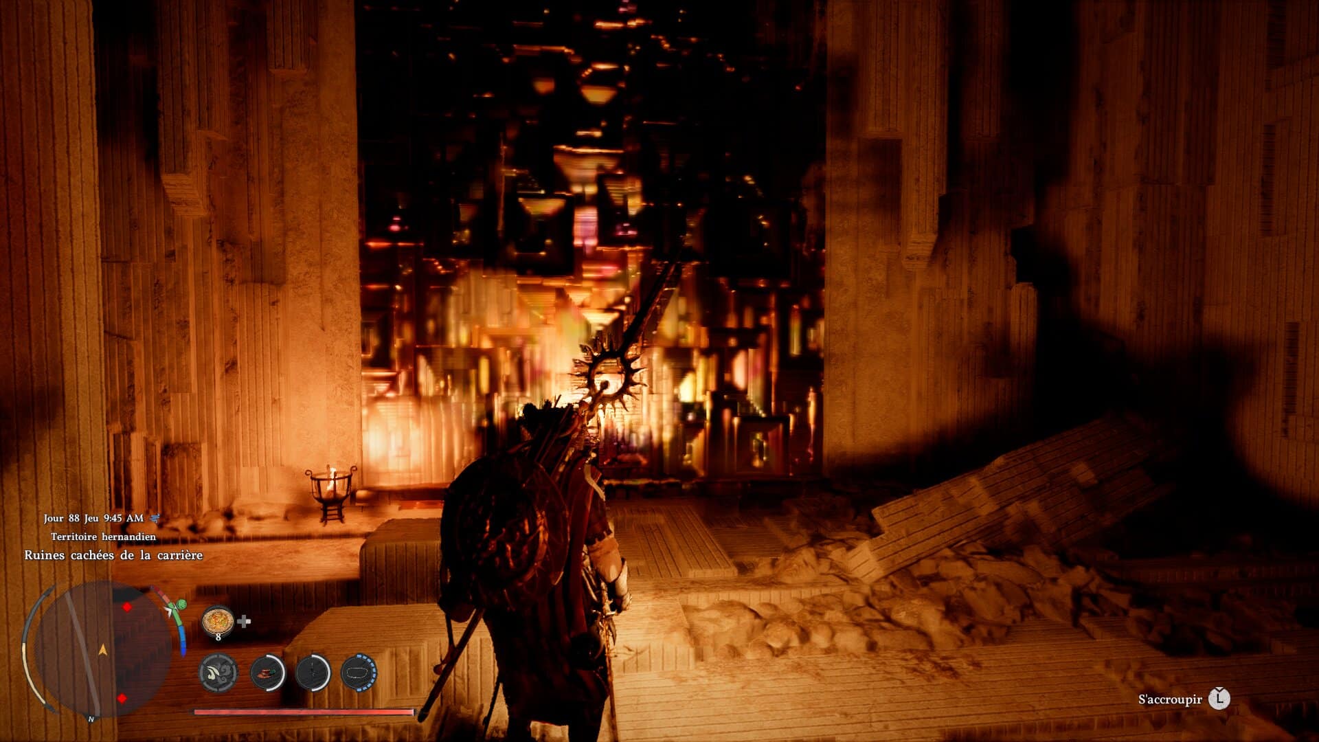 Manque de chance, cela ne s’arrête pas là. Le Nexus abyssal est bien là, mais incomplet. Pour trouver la pièce qu’il lui faut, vous devrez au moins attendre le chapitre 4, après avoir effectué la quête de Grimnir, qui donne accès au sac en fonte de coucou. Vous devrez aussi attendre d’avoir la compétence du coup de paume concentré, indispensable ici.