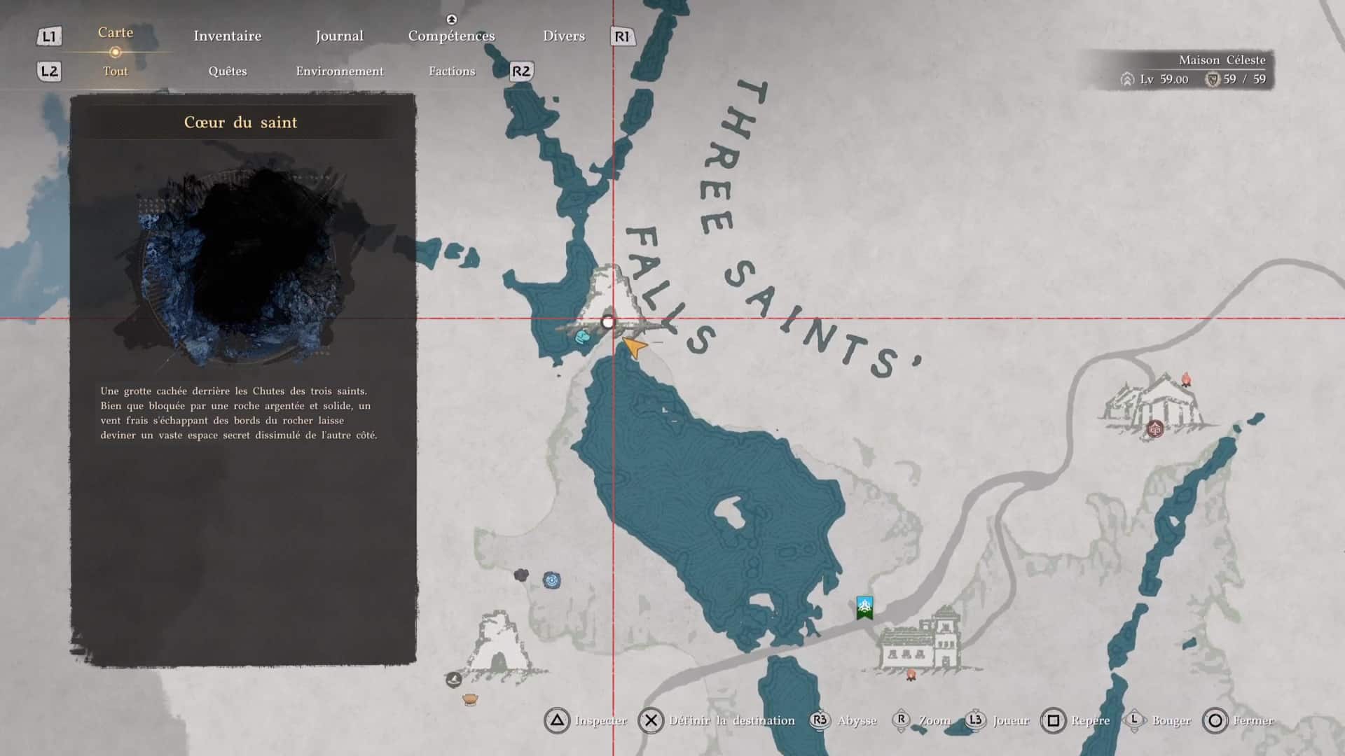 Pour passer à travers une cascade, la technique est simple mais il faut la connaître : positionnez-vous devant une cascade, debout, et effectuez une Perforation avec R1+Triangle/RB+Y. C’est une compétence dont vous disposez dès le départ et qui permet de porter un coup d’estoc.