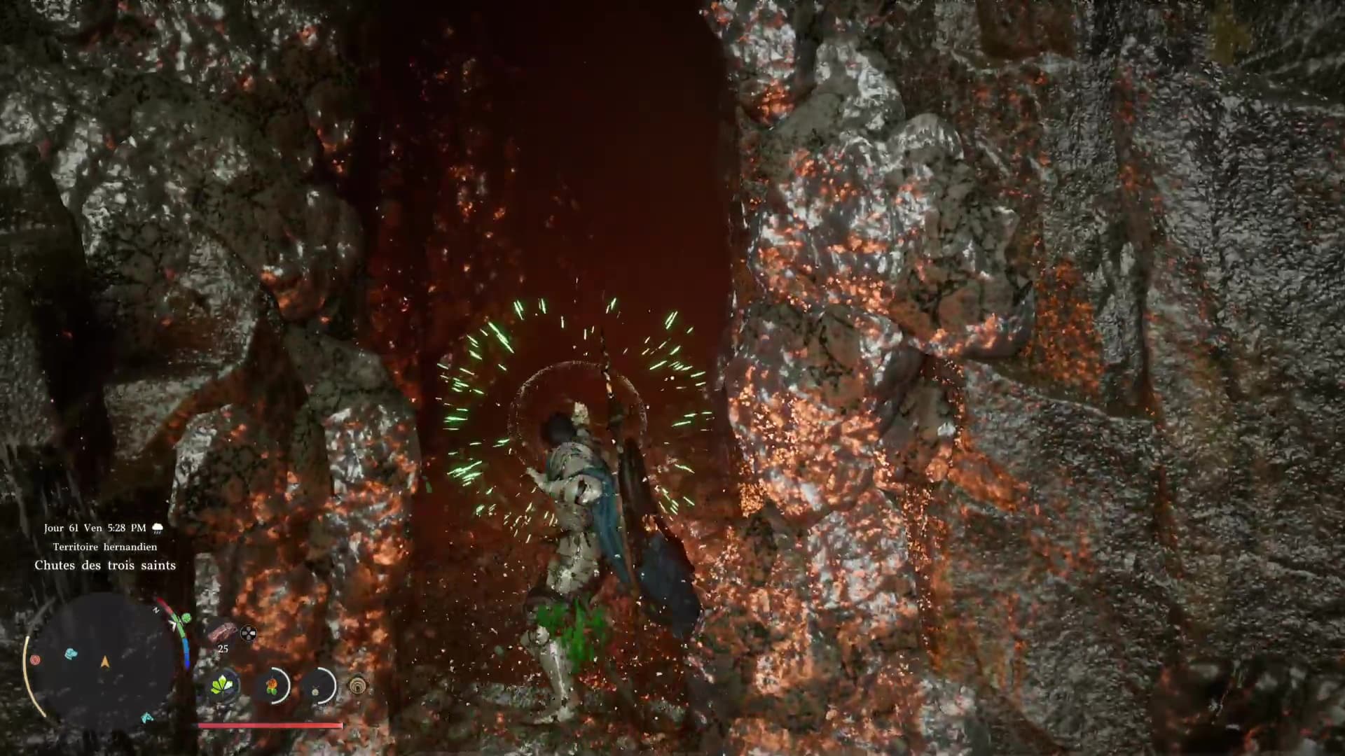 En faisant une Perforation, Kliff passera donc à travers une chute sans prendre de dégâts, et cela vous donnera accès à des zones intéressantes, comme le Cœur du saint, une grotte cachée au niveau du secteur des Chutes des trois saints (« Three Saints’ Falls » sur la map), au nord de la ville d’Hernand.