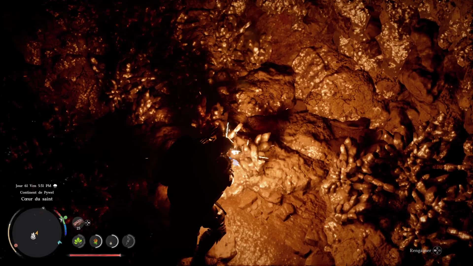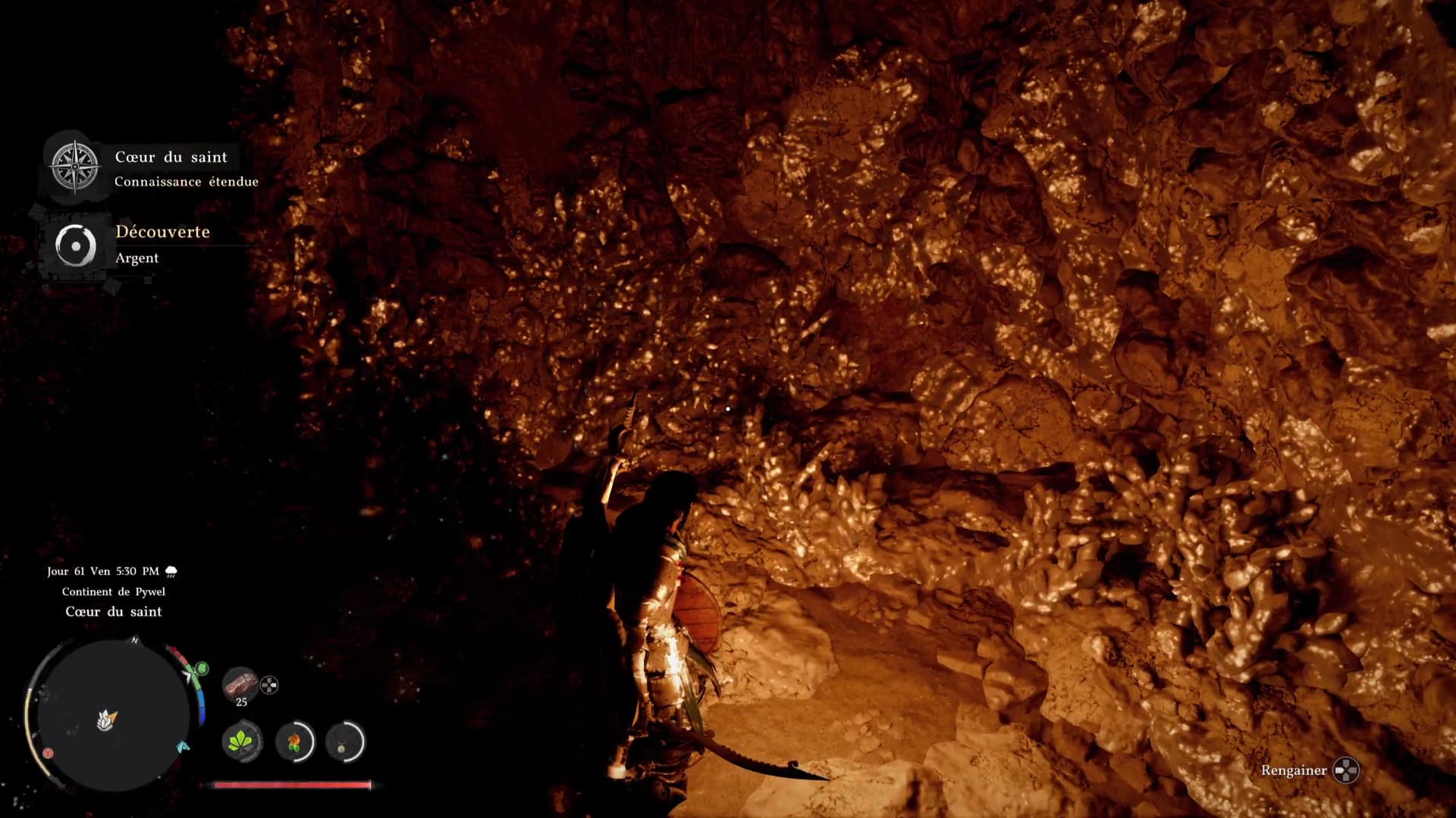 En effet, une fois de l’autre côté de la cascade, faites un coup de paume sur la paroi rocheuse claire en face de vous et continuez pour tomber sur un généreux gisement de minerai d’argent.