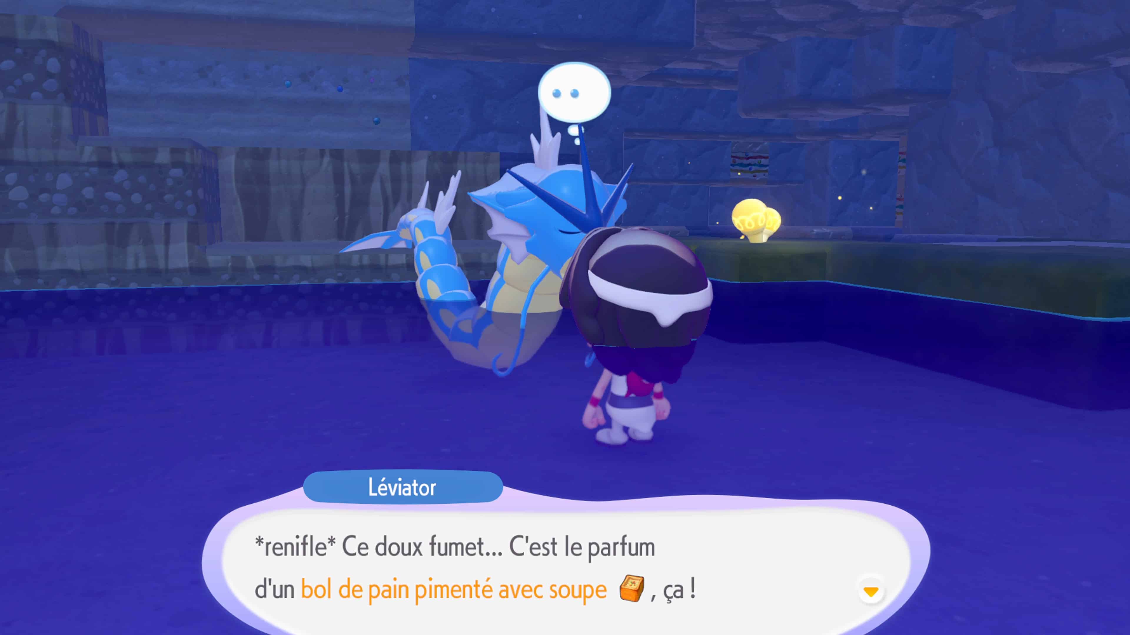 Il vous demande de lui rendre un service : lui donner un « bol de pain pimenté avec soupe ». On vous rassure, il n’y a pas besoin de la recette pour compléter cette requête. Vous pouvez en effet trouver des « bols de pain pimenté avec soupe » dans les ruines juste au-dessus du Léviator (utilisez la carte du screen pour vous repérer).