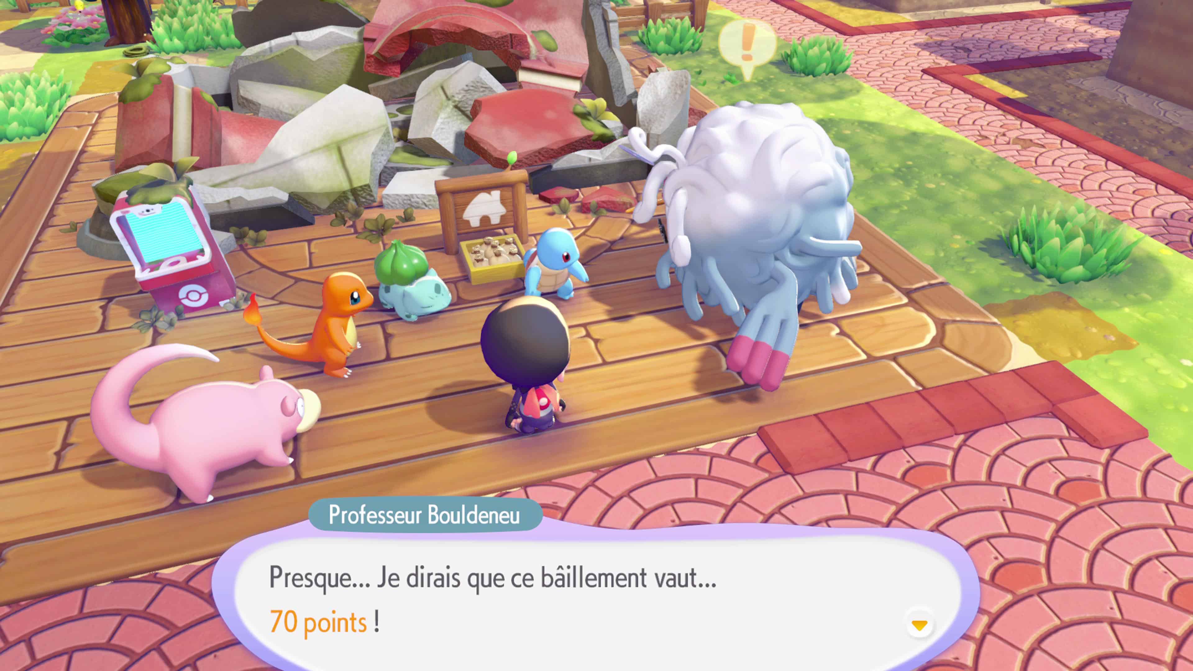 Votre première grosse requête importante commence, vous en aurez une dans chaque région, à savoir « Construire le Centre Pokémon ». L’occasion de vous servir du PC et d’accomplir quelques quêtes. Revenez souvent ici pour valider vos défis, récolter des pièces Poké Vie et acheter des récompenses et méthodes dans la boutique. Sur ces PC, vous pourrez aussi tamponner vos carnets et parcourir de nouveaux mondes connectés, par exemple.