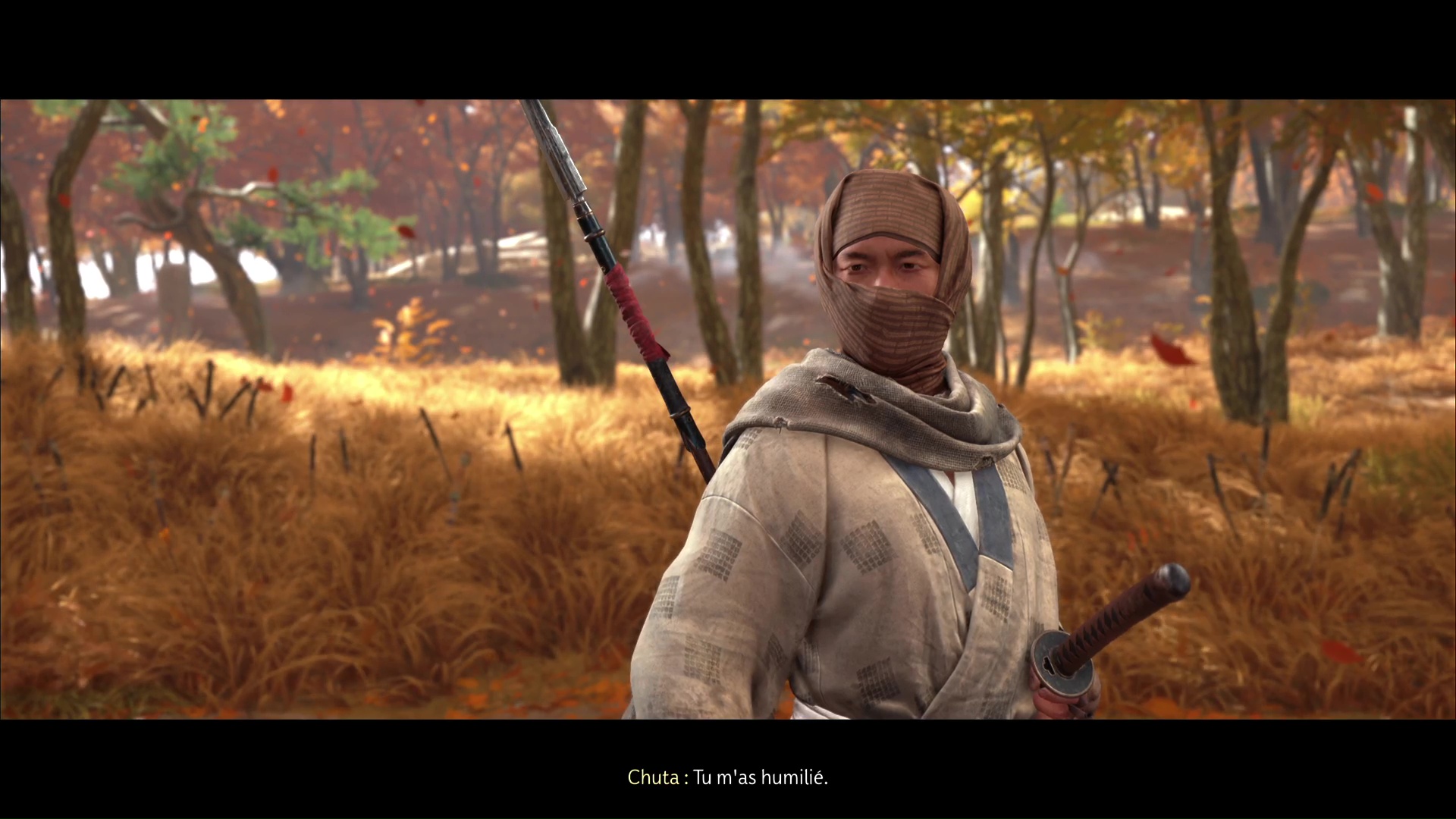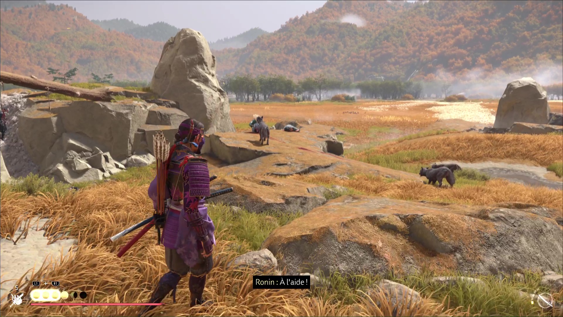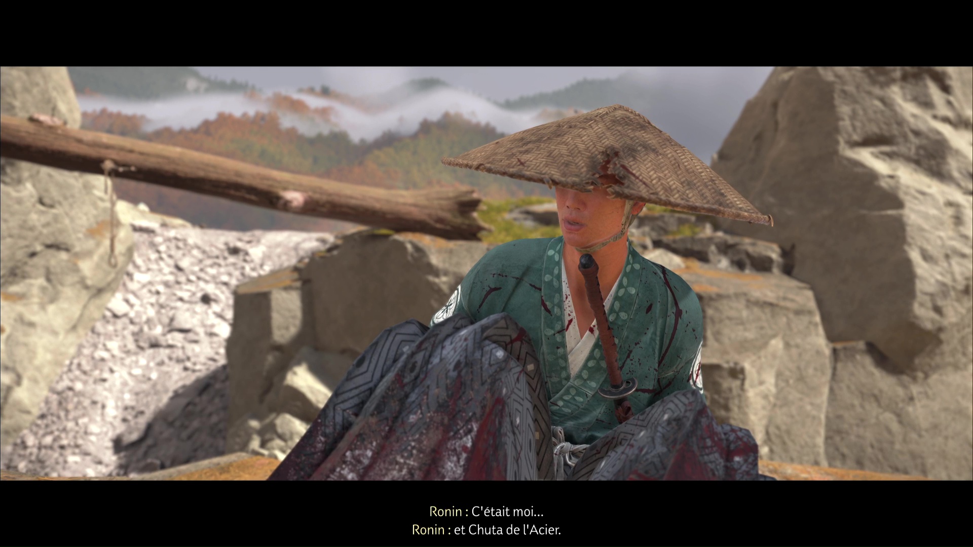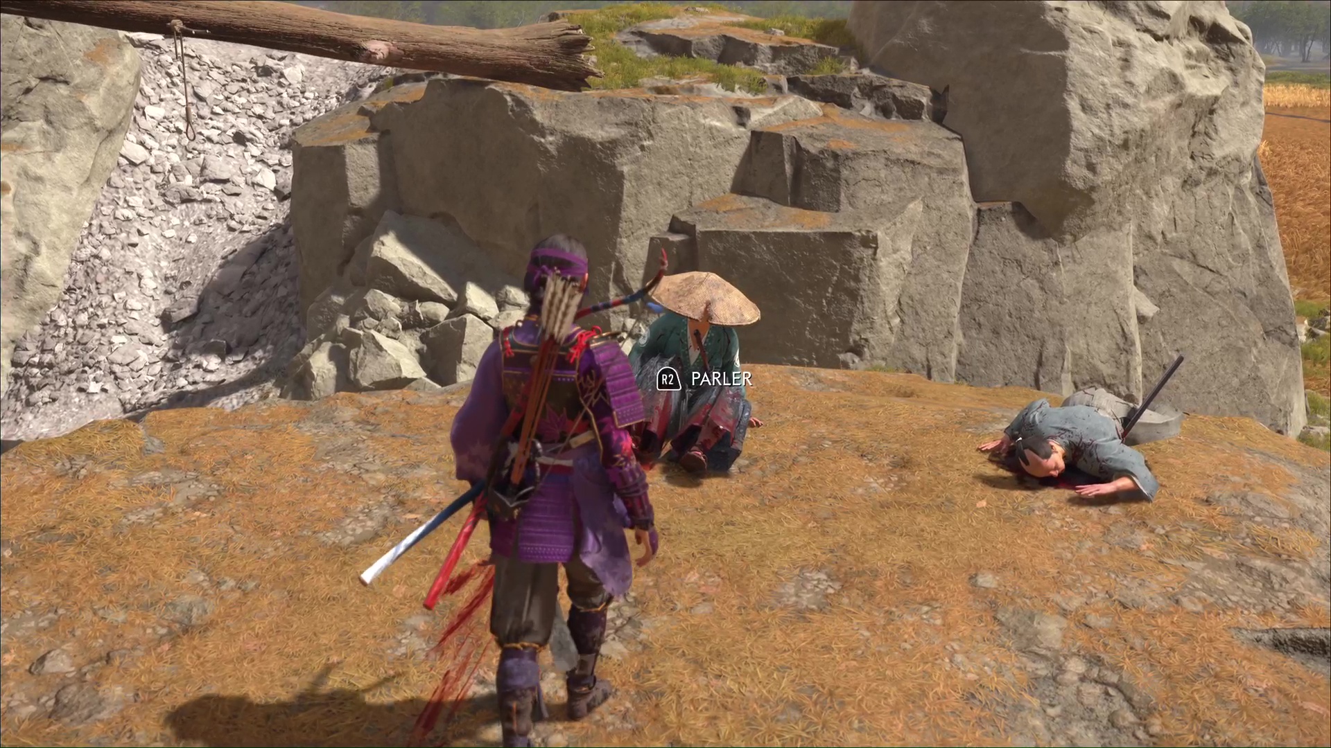 Retournez là-bas pour entendre un ronin appeler à l’aide. Il est en effet en proie à l’assaut de chiens sauvages. Tuez-les tous puis allez voir le ronin blessé. Vous apprenez que les cadavres laissés et exposés autour de la grotte sont l’œuvre de Chuta de l’Acier.