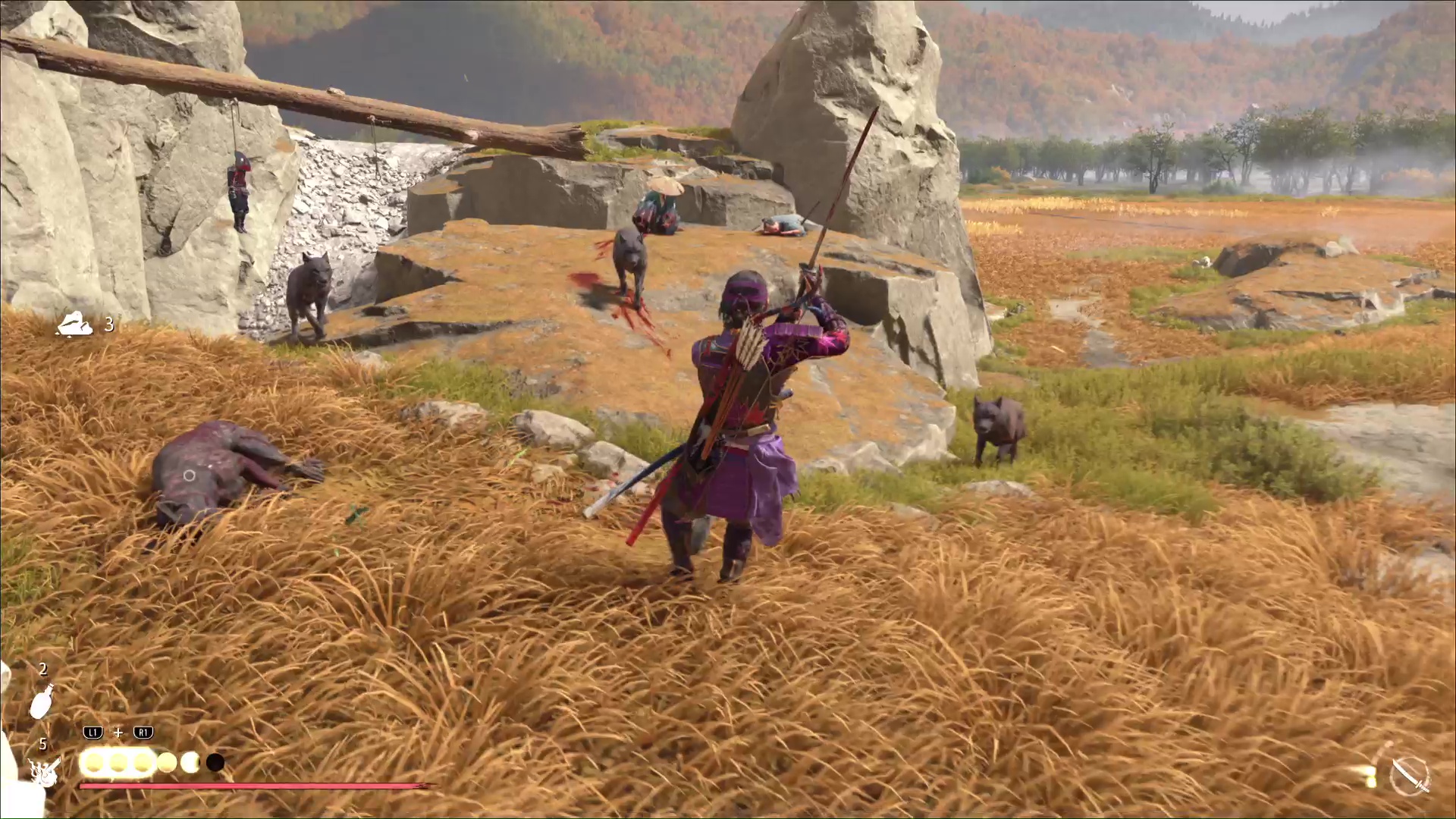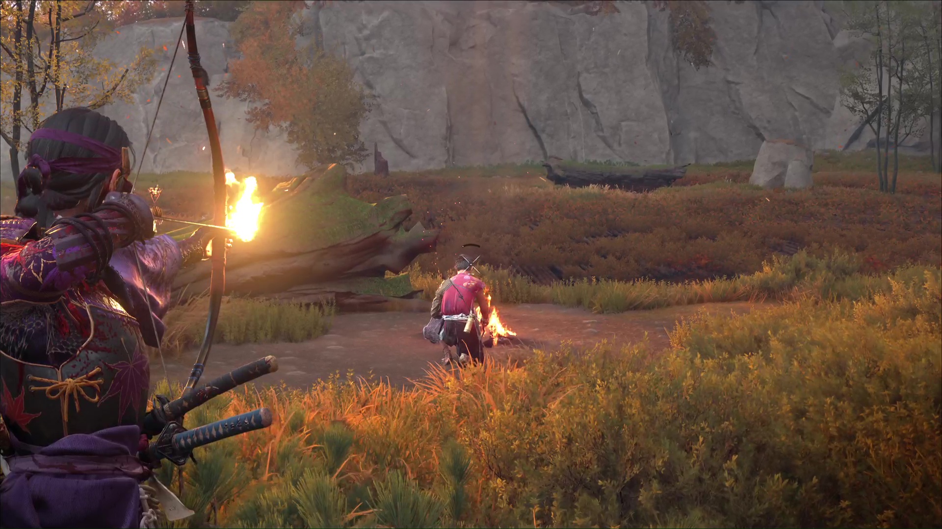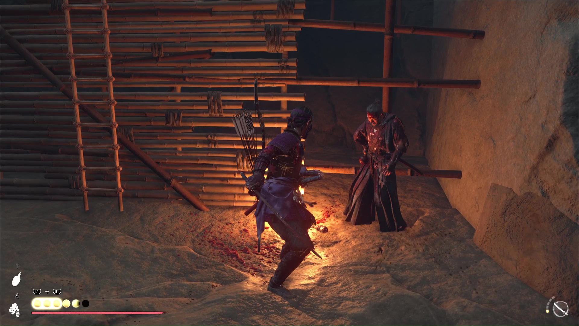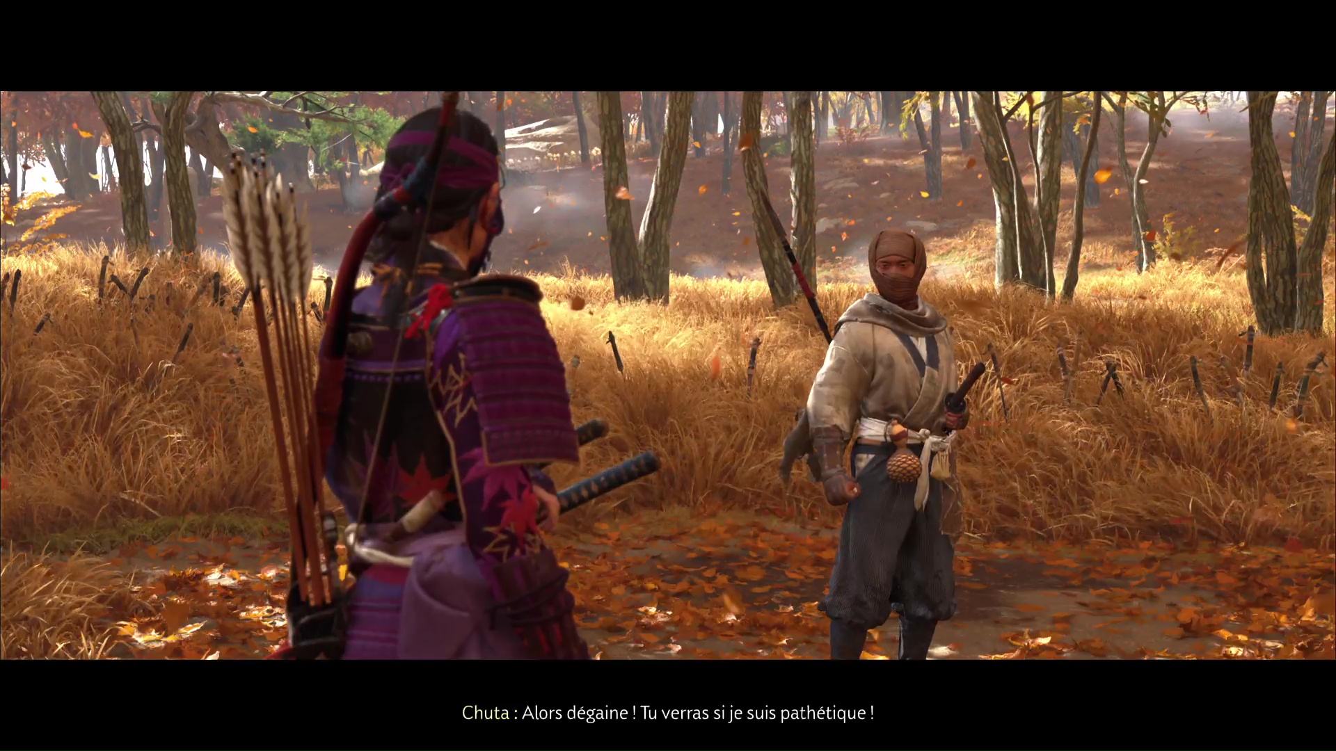 Retournez là-bas pour entendre un ronin appeler à l’aide. Il est en effet en proie à l’assaut de chiens sauvages. Tuez-les tous puis allez voir le ronin blessé. Vous apprenez que les cadavres laissés et exposés autour de la grotte sont l’œuvre de Chuta de l’Acier.