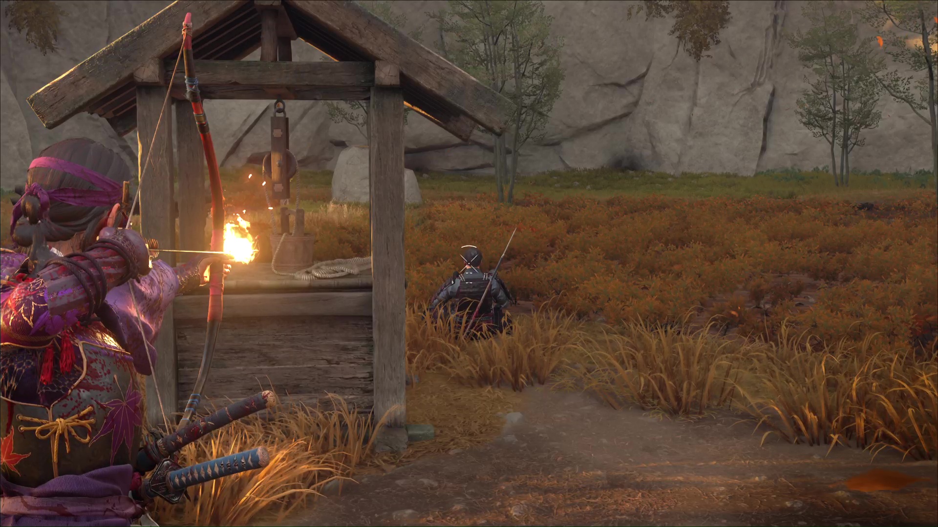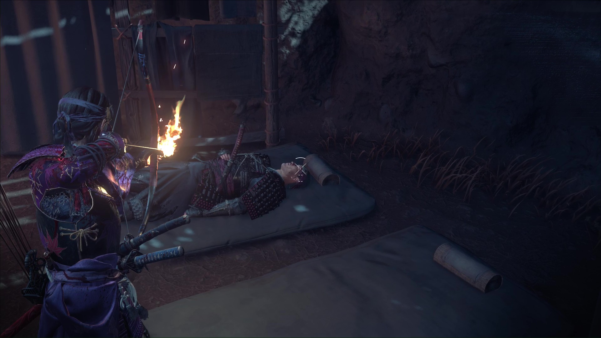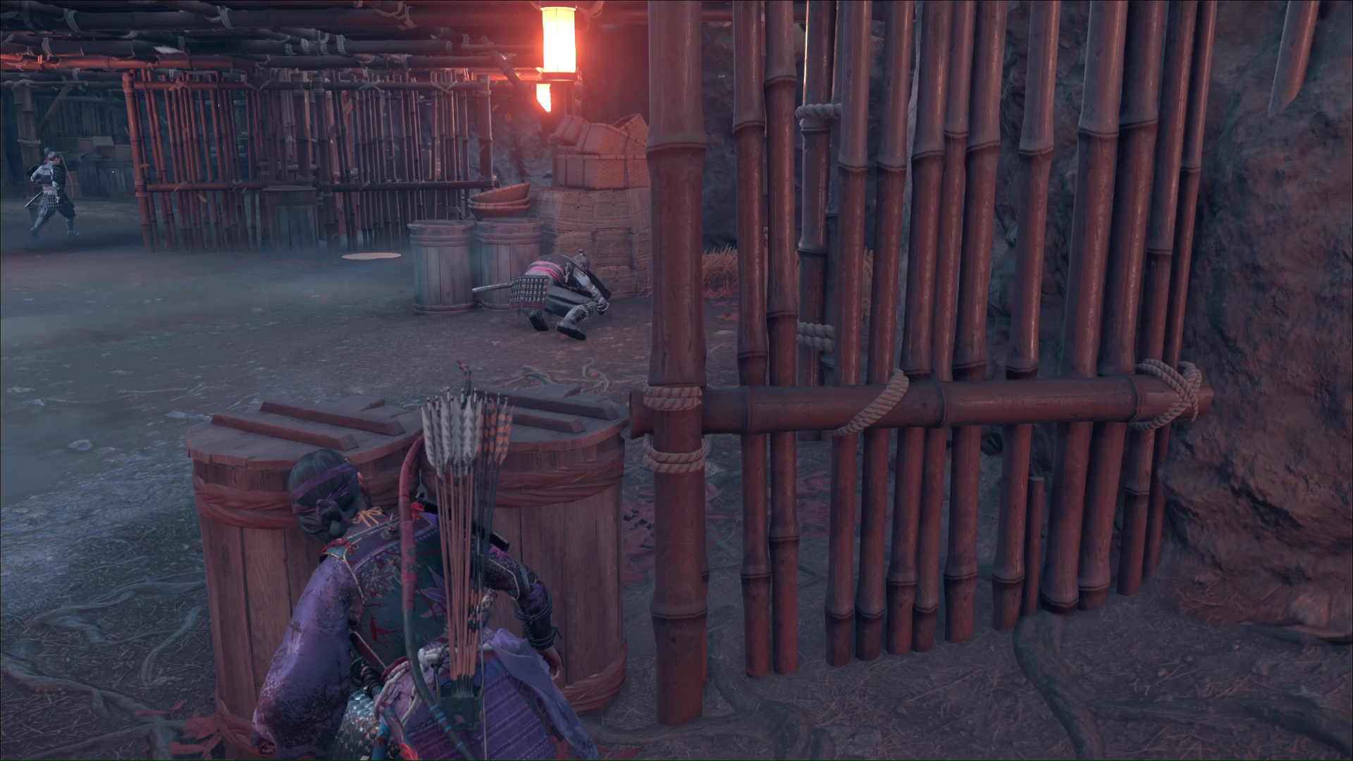 Il n’est d’ailleurs pas seul, et il est préférable de la jouer discrète pour éliminer un maximum d’ennemis avant le duel, dont l’archer au sommet de sa tour de guet. Sinon, le combat se lancera en ayant l’obligation de gérer Moritaka et les autres gardes simultanément.