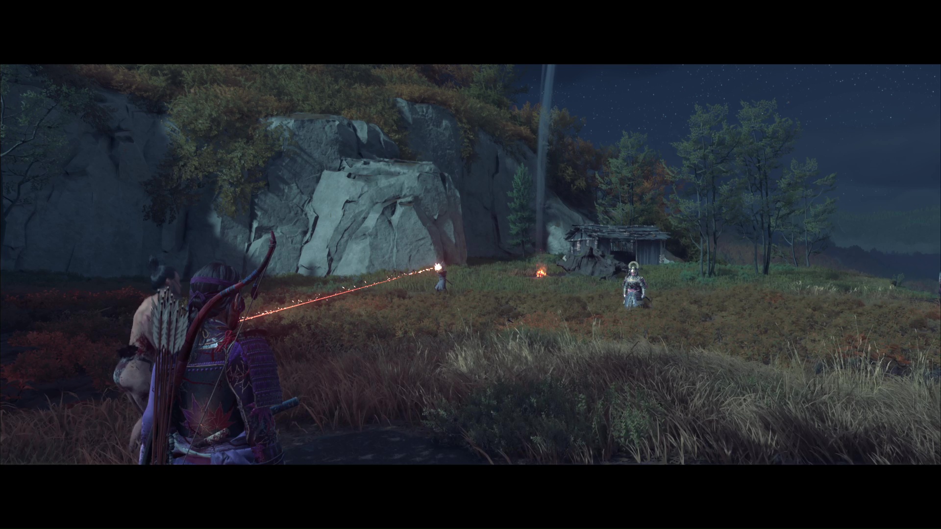 À cet étang, allez examiner le camp en jetant un œil par exemple aux cadavres. Notez une chose importante, il faut chercher Yae l’Ancienne, de nuit. Si ce n’est pas le cas, allumez un feu et reposez-vous en faisant passer le temps jusqu’à la nuit.