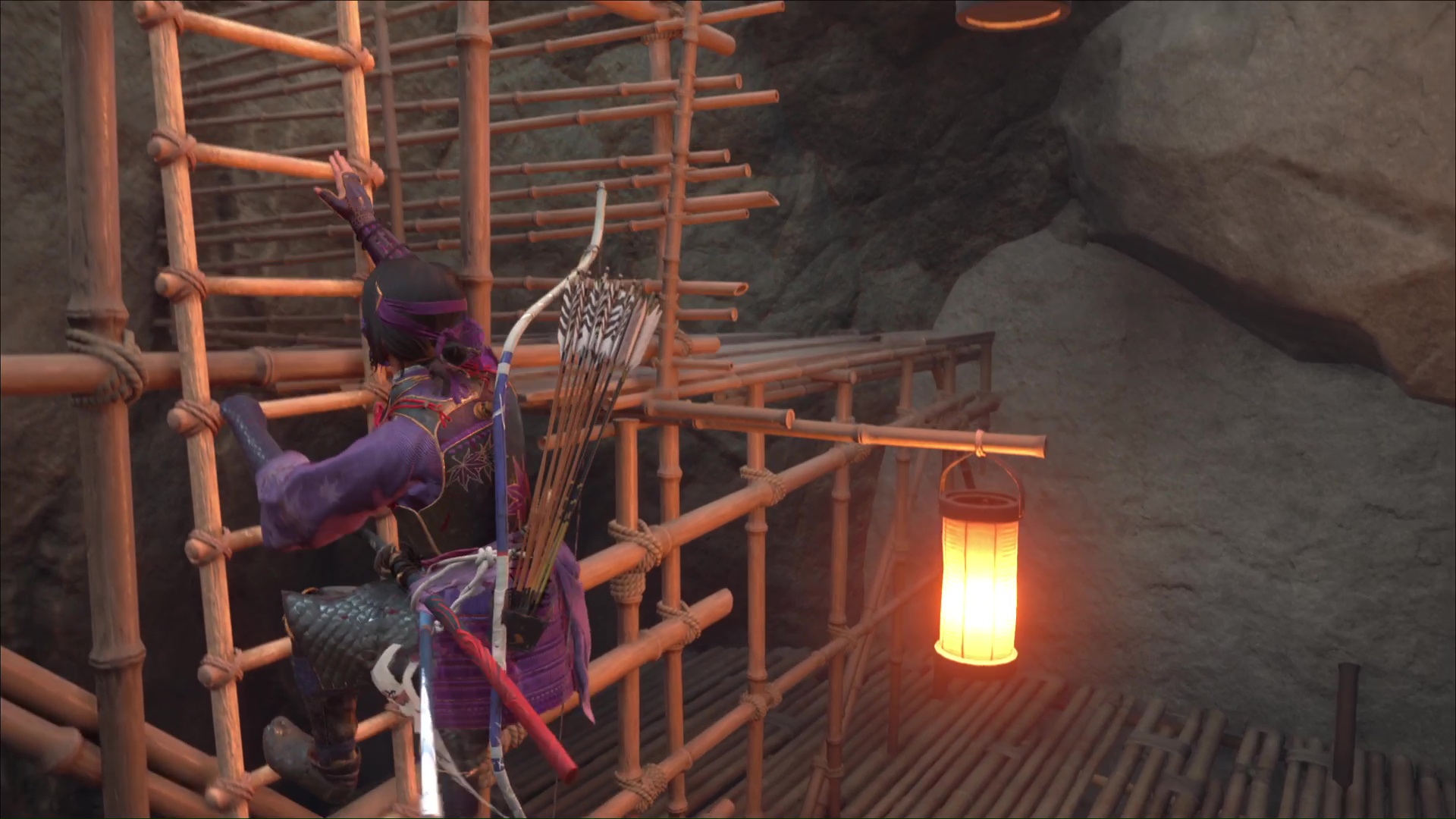 Soudain, le ronin comprend qu’Atsu est l’onryō, et décide donc de se battre. Tuez-le puis grimpez à trois échelles successives.