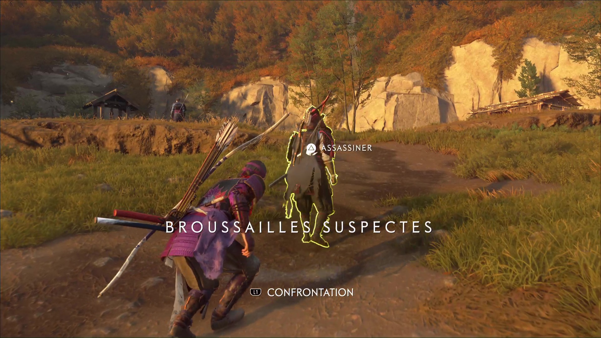 Vous voici de nouveau à l’air libre, du côté des Broussailles suspectes. Vous débarquez même directement dans le dos d’hommes de Saito. Assassinez-en un premier devant vous. Montez ensuite le rebord sur la gauche et tuez celui qui est assis près d’un puits. Remarquez ensuite la cabane isolée. Contournez-la par la droite.