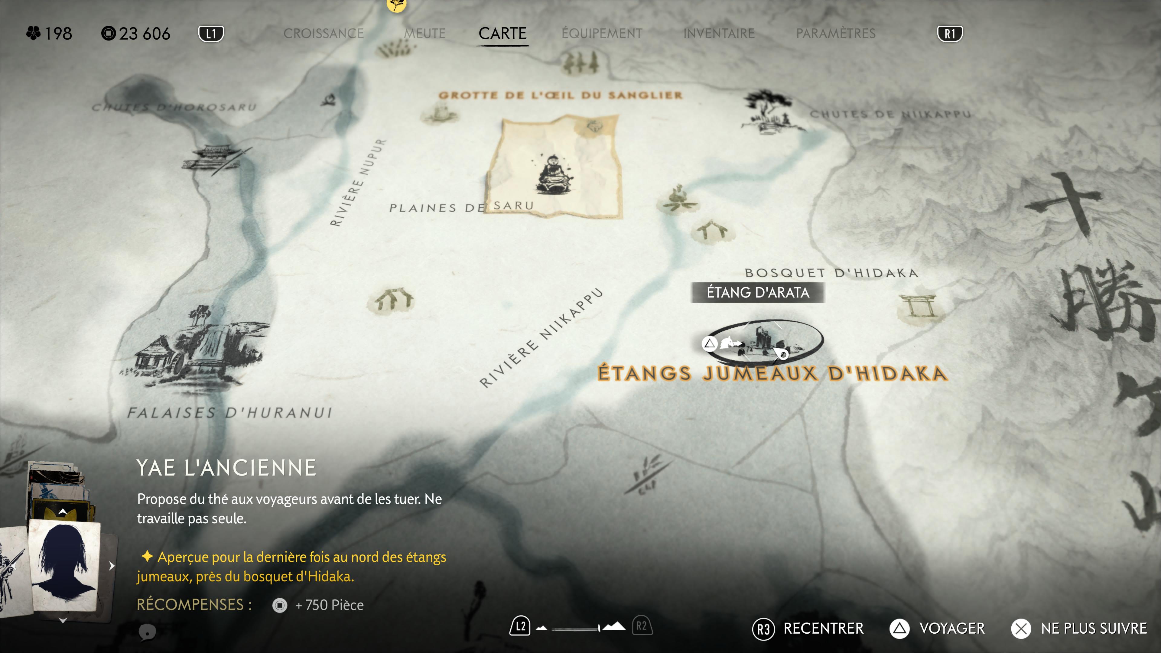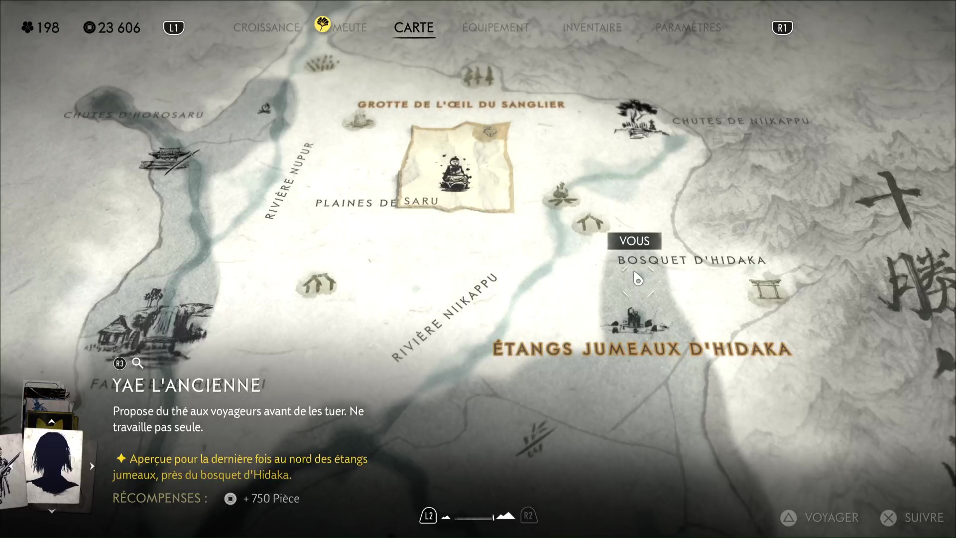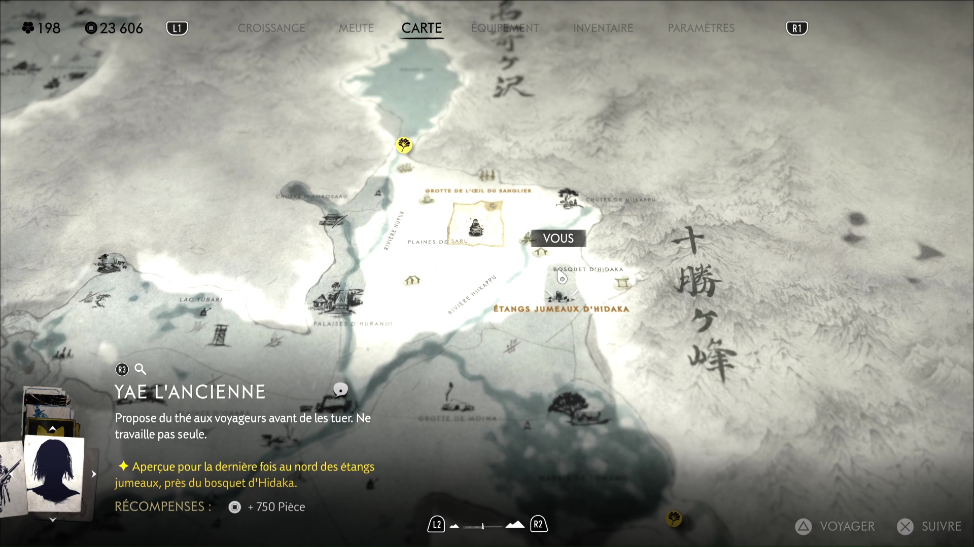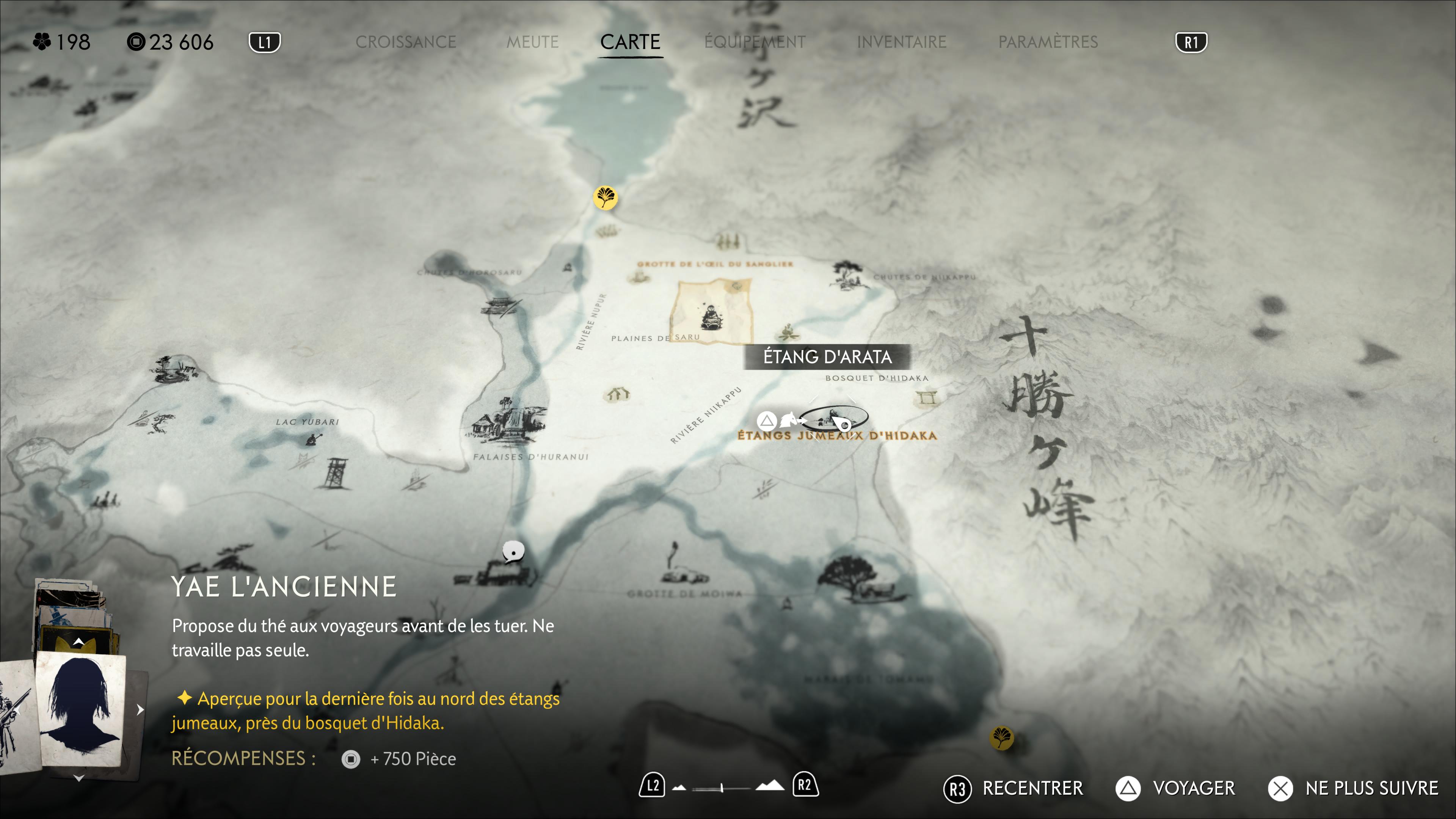 Un borgne, une buveuse de thé pas comme les autres ou encore un homme qui ne travaille pas tout à fait seul, tels sont les quelques profils dangereux que vous pourrez traquer dans les Monts Tokachi de Ghost of Yōtei. On vous décrit l’emplacement des cibles et les récompenses qu’elles vous donneront une fois éliminées.