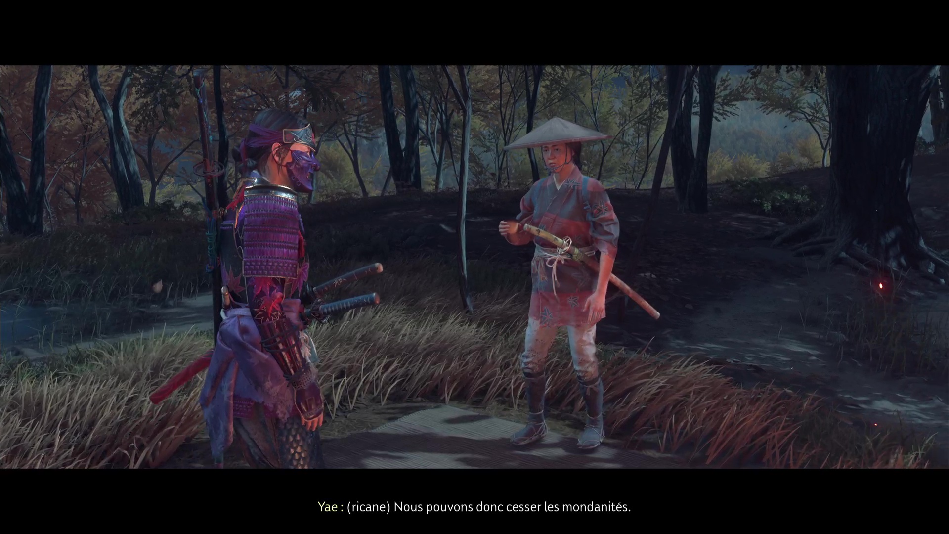 Dès que tout le monde est mort, allez voir Yae et écoutez ses dernières paroles. Puis, récupérez le kit de sabre Concoction cruelle de Yae sur son cadavre. Encaissez ensuite votre prime de 750 pièces auprès de Kojiro.
