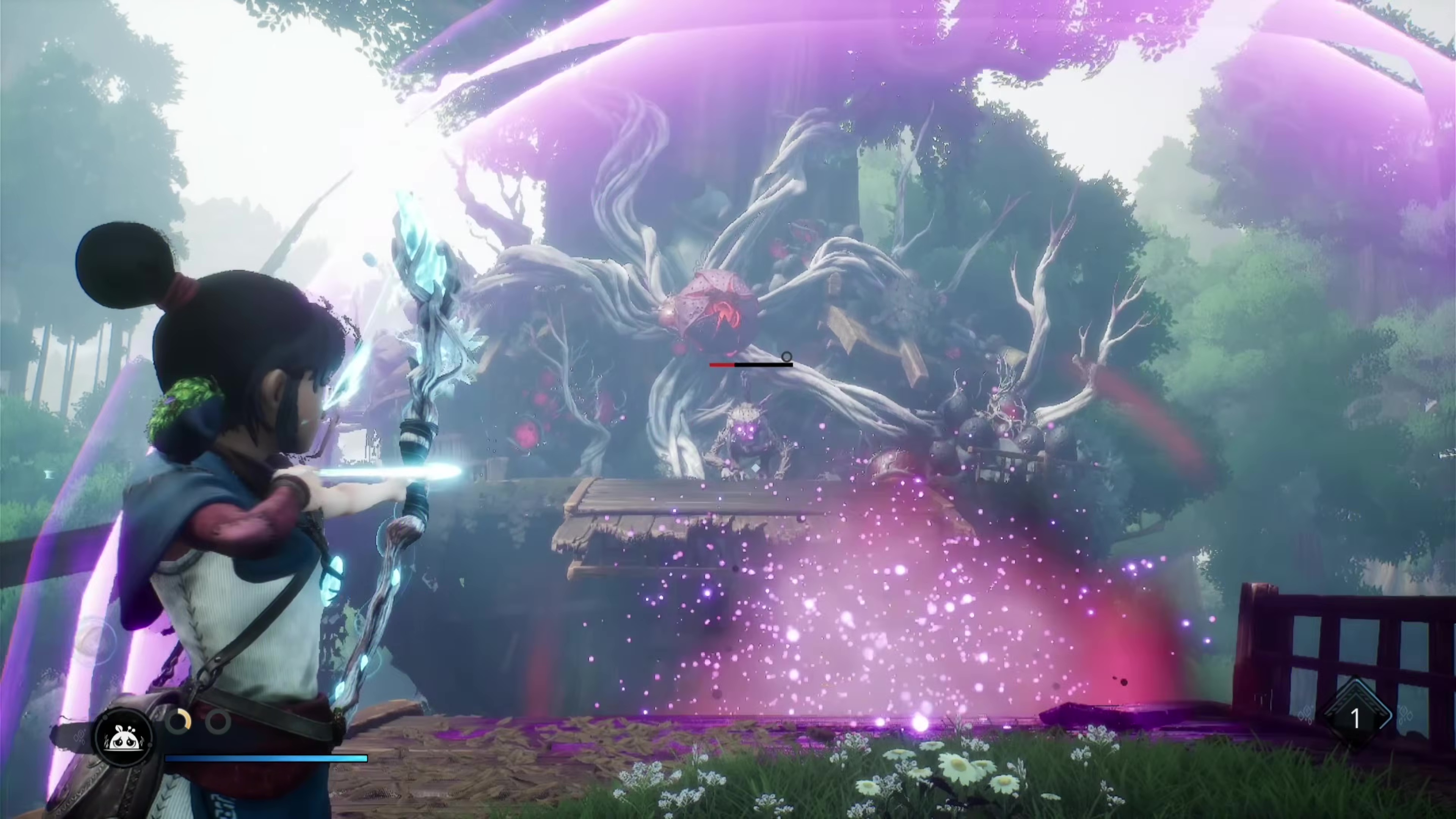 Plusieurs années après avoir touché pour la première fois au bijou « triple-i » comme on pourrait le qualifier, il nous aura fallu quelques dizaines de minutes d’adaptation pour retrouver nos réflexes d’antan. Notamment parce qu’on pourrait avoir tendance à oublier que Kena: Bridge of Spirits n’est pas un simple jeu d’aventure « facile d’accès » mais plutôt une épopée plus orientée action, avec de multiples affrontements, et même des combats de boss assez retors, qui nous gratifieront de maîtriser les contrôles de notre héroïne, en plus d’être agrémentés de somptueuses musiques ci-et-là.