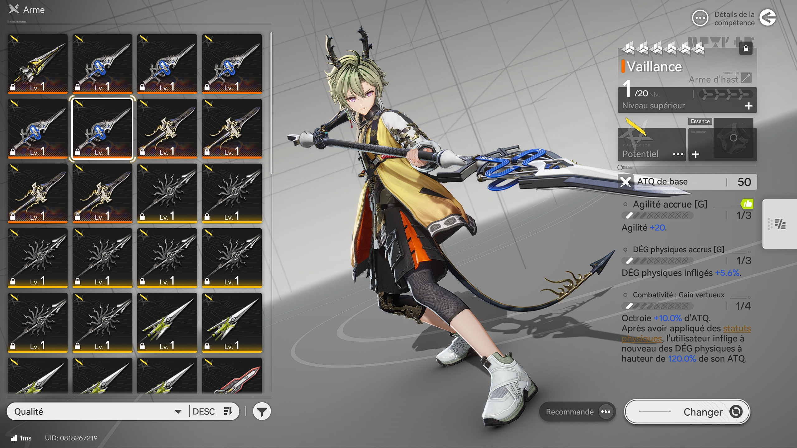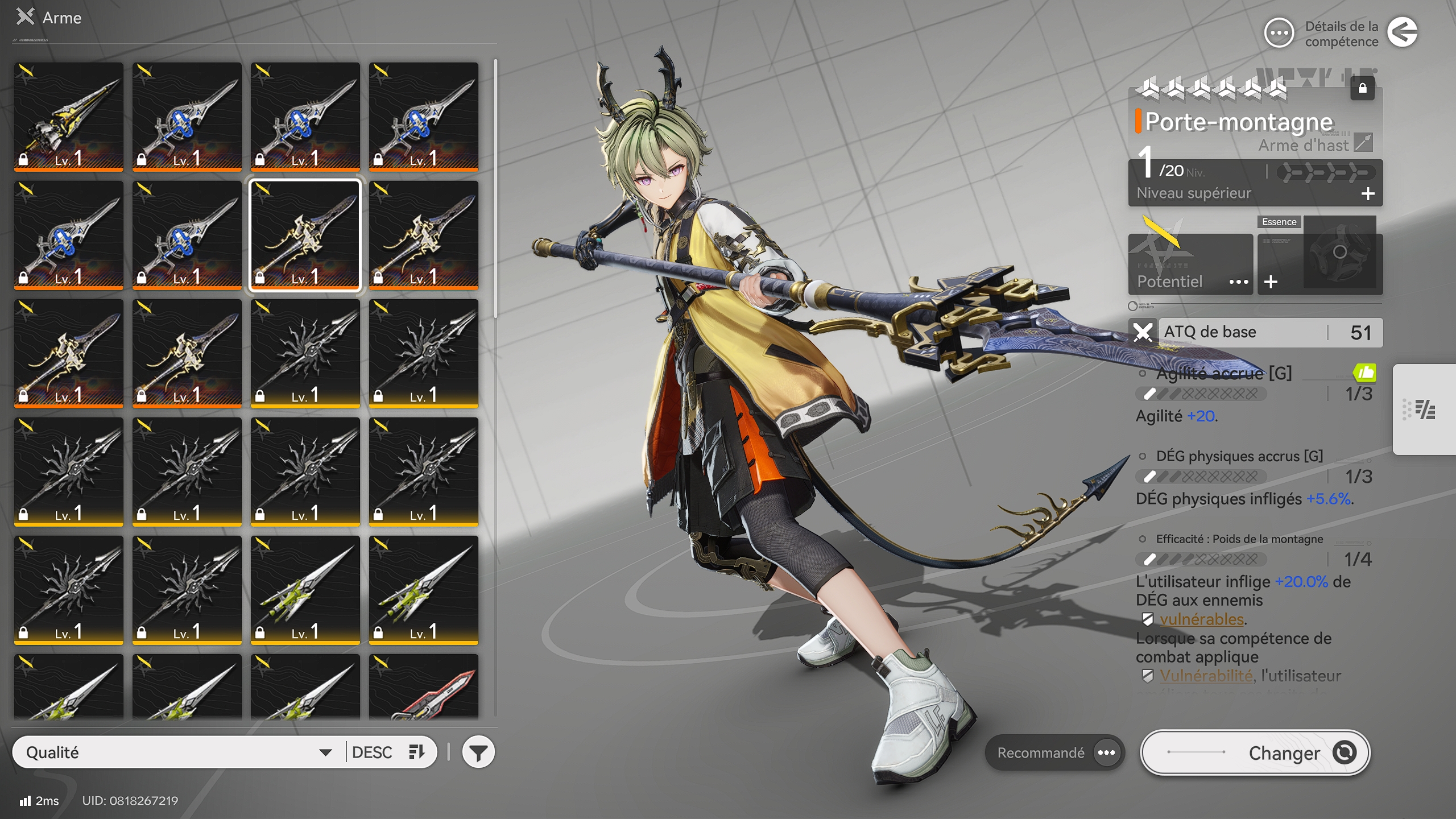 Concernant l’arme de Lifeng, bien évidemment, son arme signature “Porte-montagne” est la meilleure que vous pouvez avoir. En revanche, au cas où vous n’auriez pas eu assez de chance, sachez que deux autres armes peuvent faire l’affaire :