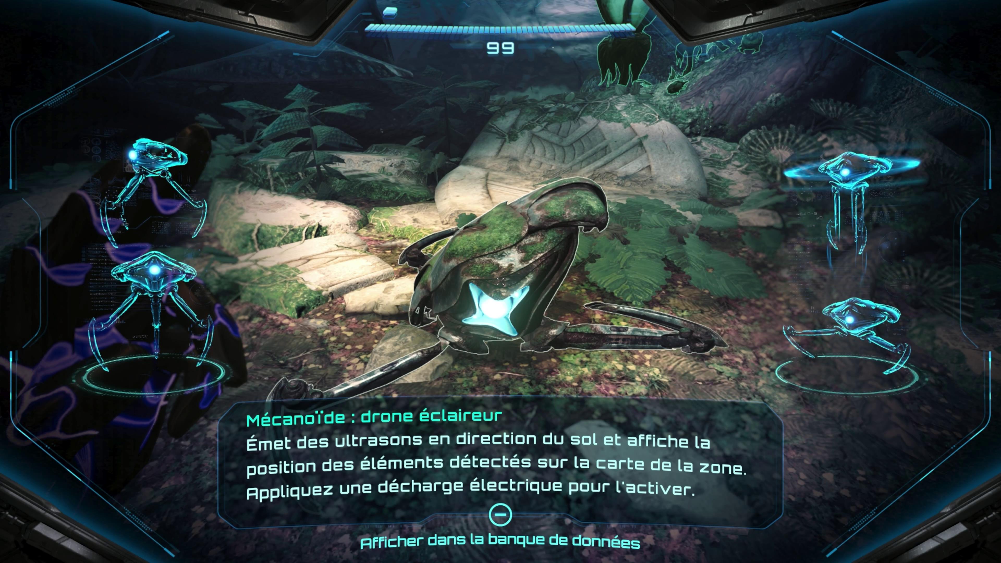 Même si cette approche plus exigeante ne plaira pas à tous, le fait de devoir expérimenter avec les nouveaux outils (parfois à tâtons) procure un vrai sentiment de découverte et d’apprentissage. Metroid Prime 4: Beyond exploite cela avec intelligence, même si l’on aurait aimé que le jeu nous prenne un peu moins par la main pour laisser davantage de place à la réflexion. Un bon exemple est la vision psychique, nouvelle capacité permettant à Samus d’analyser la végétation, les structures ou les artefacts pour obtenir des indices ou enrichir le lore.