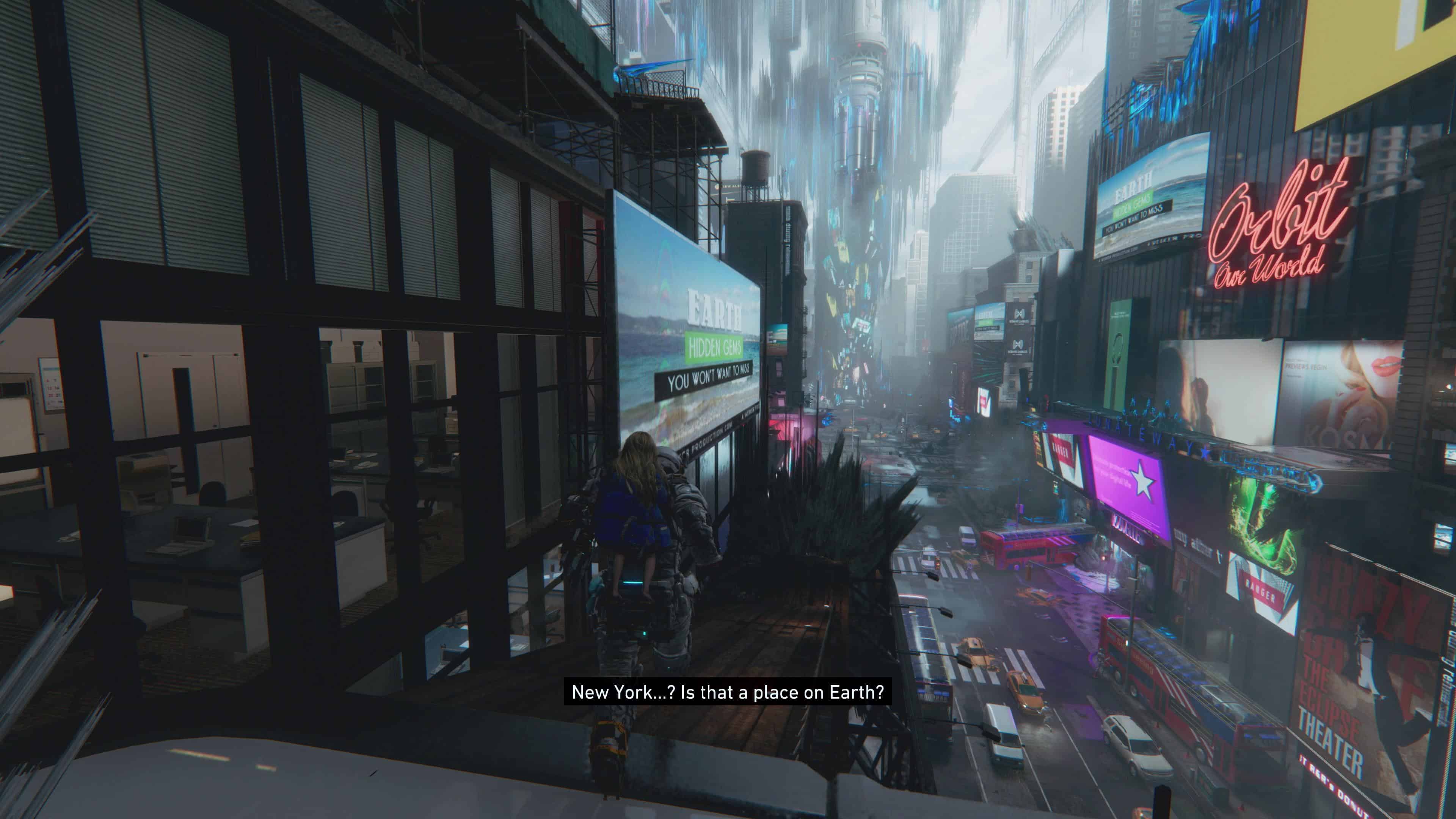 Parcourir les rues de ce Times Square reconstitué est souvent l’occasion d’assister à une nouvelle curiosité de Diana, que Hugh tente d’expliquer avec plus ou moins de succès. Le duo devient ainsi rapidement attachant et apporte un peu de vie à cette station vide et hostile. Nous avons d’ailleurs pu jouer avec le doublage français et, bien qu’il semble globalement de bonne qualité, nous avons encore un peu de mal avec la performance de Diana comparée aux voix anglaises et japonaises. A confirmer lors du test.