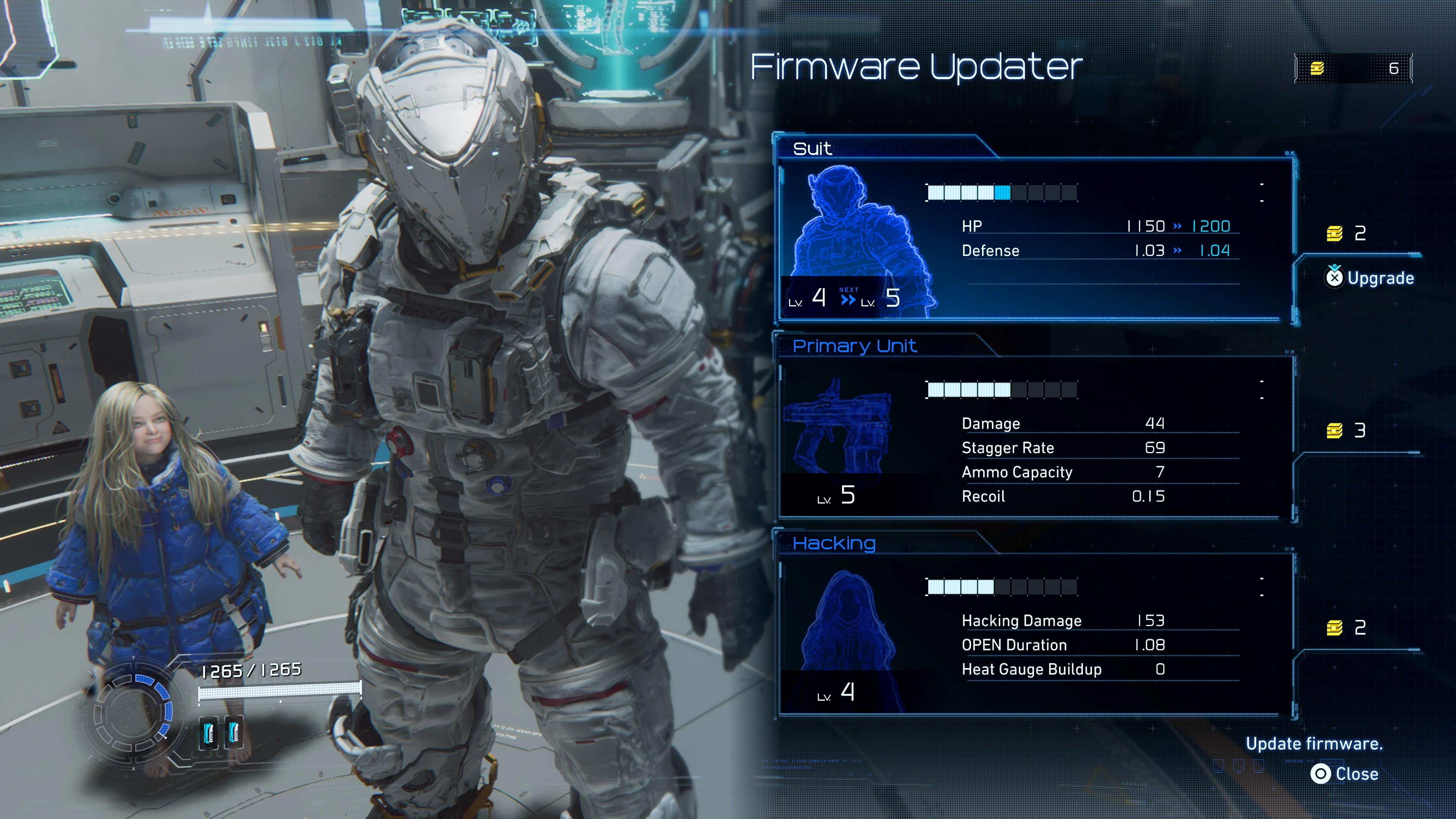 Grâce aux ressources récoltées, vous pourrez augmenter vos points de vie, votre défense ou encore les dégâts liés au piratage. Elles servent également à fabriquer et améliorer vos armes. Ainsi, après une défaite, il est possible de revenir mieux préparé et de s’équiper en fonction du défi à relever. Vous pouvez aussi configurer des cases de piratage bonus selon vos besoins, comme une réduction de défense ennemie ou encore un multi-piratage.