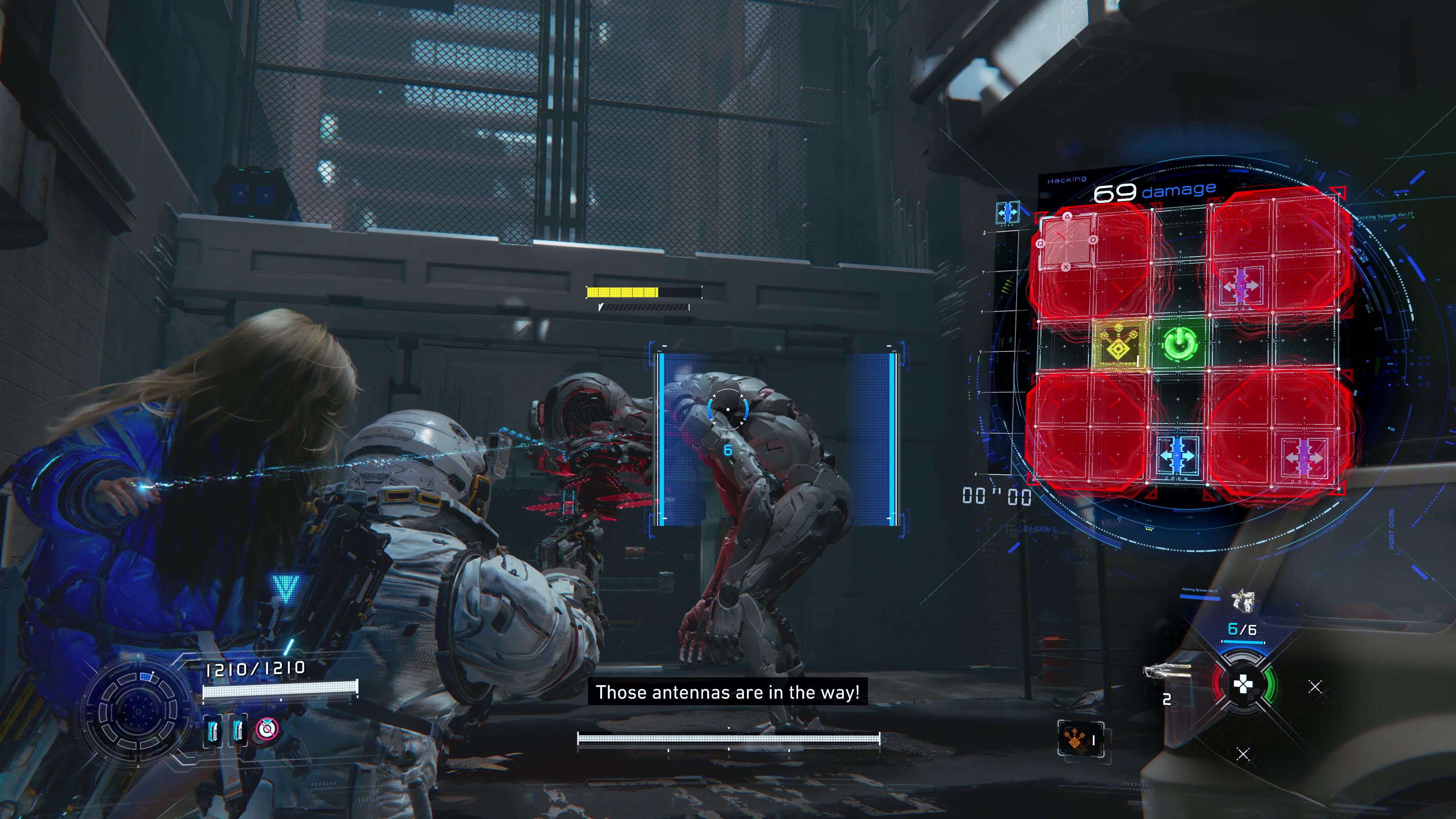 Ce piratage prend la forme d’un panneau qui apparaît en temps réel à l’écran pour affaiblir la cible. L’objectif consiste à déplacer le curseur jusqu’à une destination précise afin de terminer la phase de hacking, tout en évitant les obstacles et en récupérant des cases bonus qui octroient différents effets.