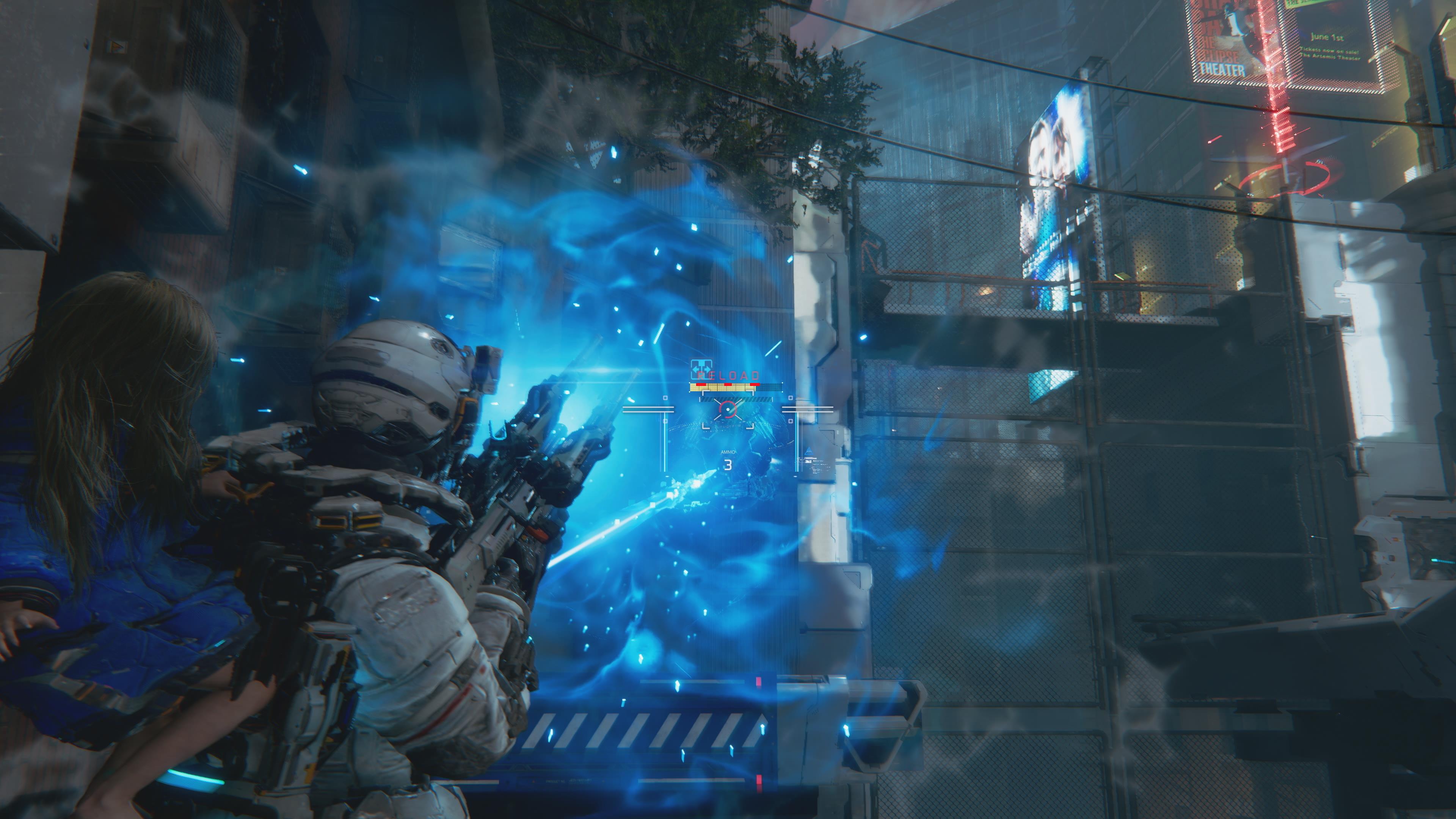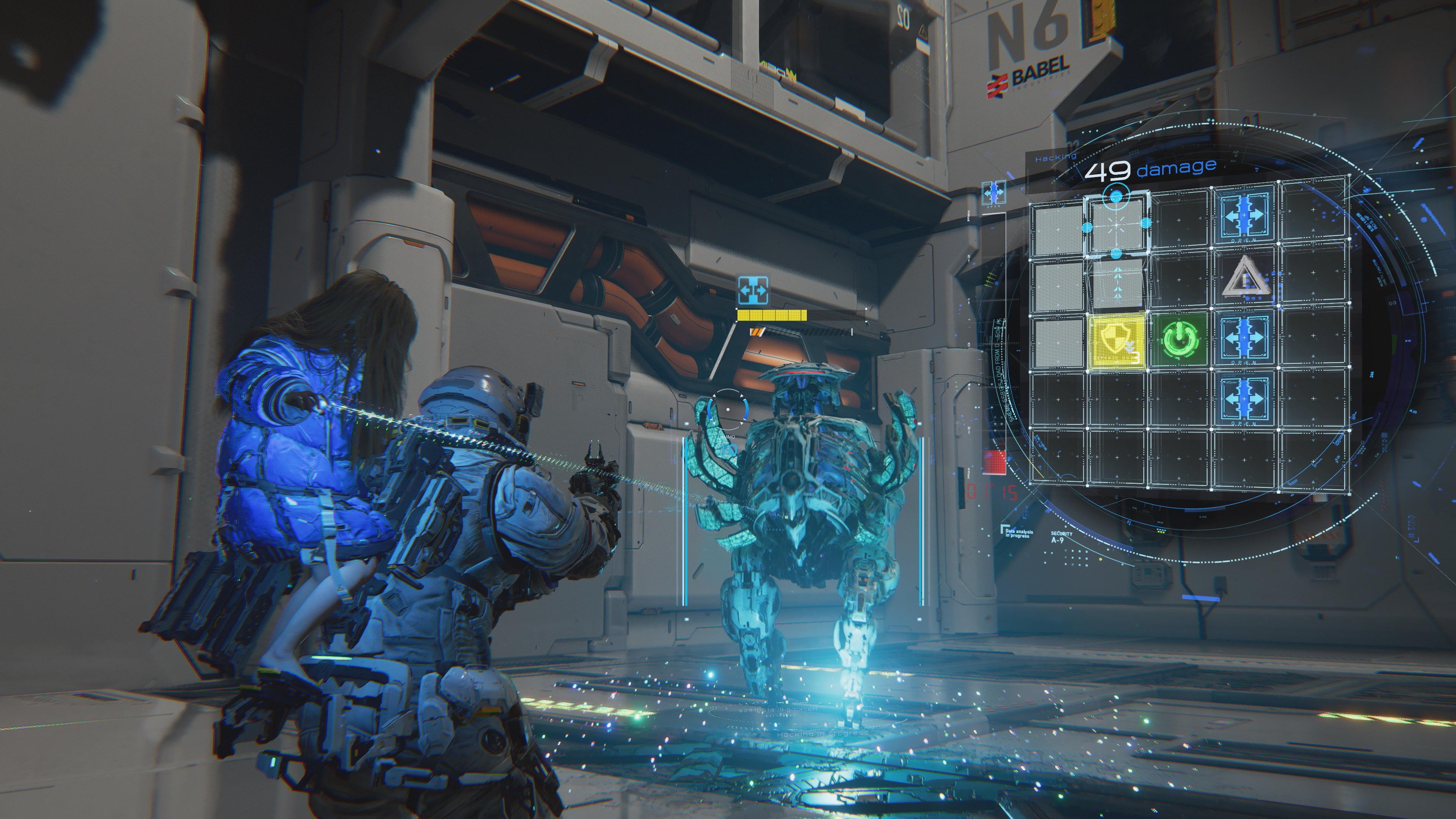L’une de nos principales inquiétudes concernant le jeu réside dans une certaine répétitivité de son gameplay, largement centré sur le système de hacking. Nous attendons donc de voir comment les développeurs parviendront à enrichir l’expérience, notamment à travers de meilleures synergies entre les armes et les différents nœuds de hacking, afin de donner une idée plus claire de la progression et de la profondeur du système. Au‑delà des combats, Hugh et Diana pourront explorer la station lunaire, en se déplaçant via un tramway depuis le Refuge vers les sas d’évacuation précédemment débloqués. Ces sas jouent aussi le rôle de points de sauvegarde durant l’aventure.