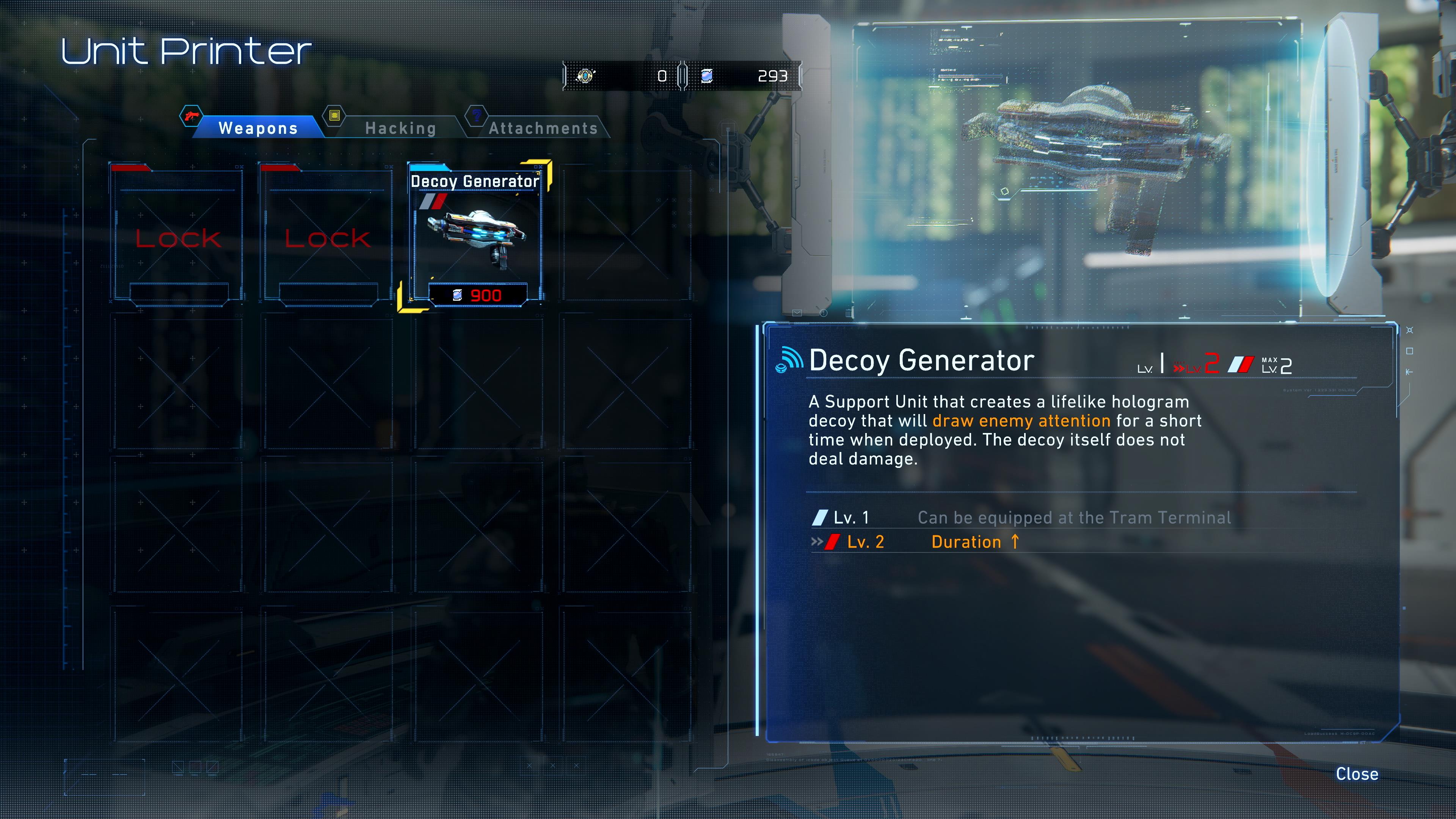 En attendant d’en savoir plus sur l’histoire et les environnements que nous pourront explorer, Pragmata montre un peu plus de décors sur la station lunaire, et notamment « le Refuge ». Ce lieu servira de base pour imprimer (déverrouiller) et améliorer vos armes et nœuds de hacking. On y découvre deux armes inédites : le Charge Piercer (Canon perforeur) et le Decoy Generator (Générateur de leurres) qui fourniront à Hugh de nouveaux moyens pour affronter les robots hostiles.