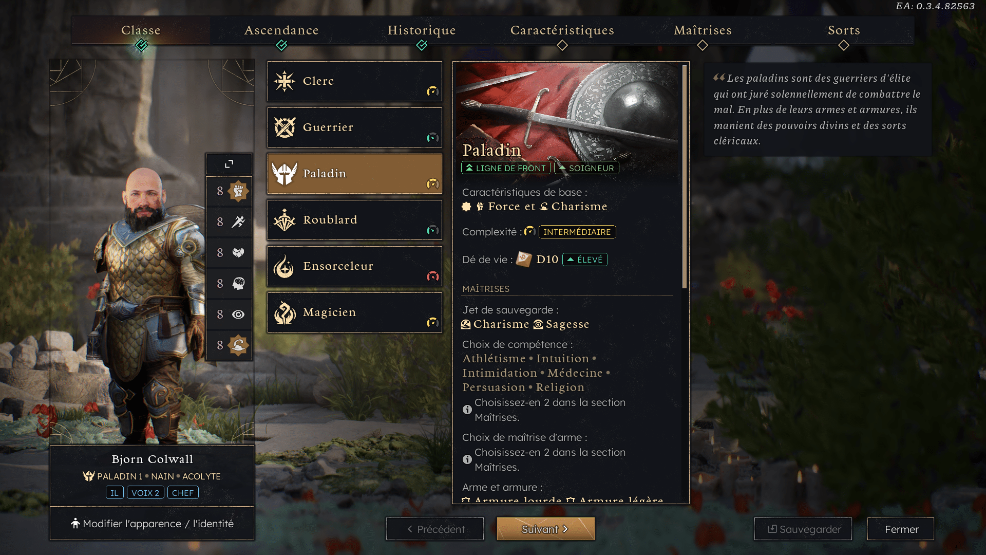 Tout comme dans Solasta: Crown of the Magister, Solasta II souhaite nous faire vivre un périple de type heroic fantasy, aux côtés de quatre aventuriers et/ou aventurières que nous sommes libres de créer entièrement dès le début d’une partie. Pour cela, nous devons utiliser un éditeur de personnages, sachant que celui-ci a bien changé comparé à celui présent dans l’opus de 2021. Pour preuve, il a bénéficié d’une refonte visuelle particulièrement agréable à l’œil, se montre plus ergonomique dans son organisation, sa lisibilité, et sa navigation et il fait l’effort de tendre davantage la main aux joueurs et aux joueuses qui ne seraient pas habitué(e)s aux jeux de rôle inspirés de la célèbre licence Donjons & Dragons.