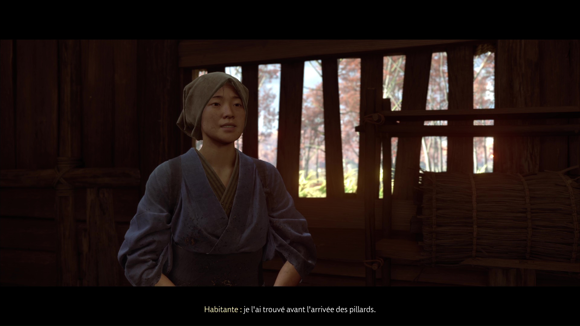Partez vers le nord jusqu’à rejoindre la Ferme d’Ishikari. Sur place, cherchez une femme qui passe le balai devant chez elle. Parlez-lui et, après quelques échanges, vous apprenez que sa fille a secouru un Matsumae blessé. Sans aucun doute, il s’agit de l’éclaireur.