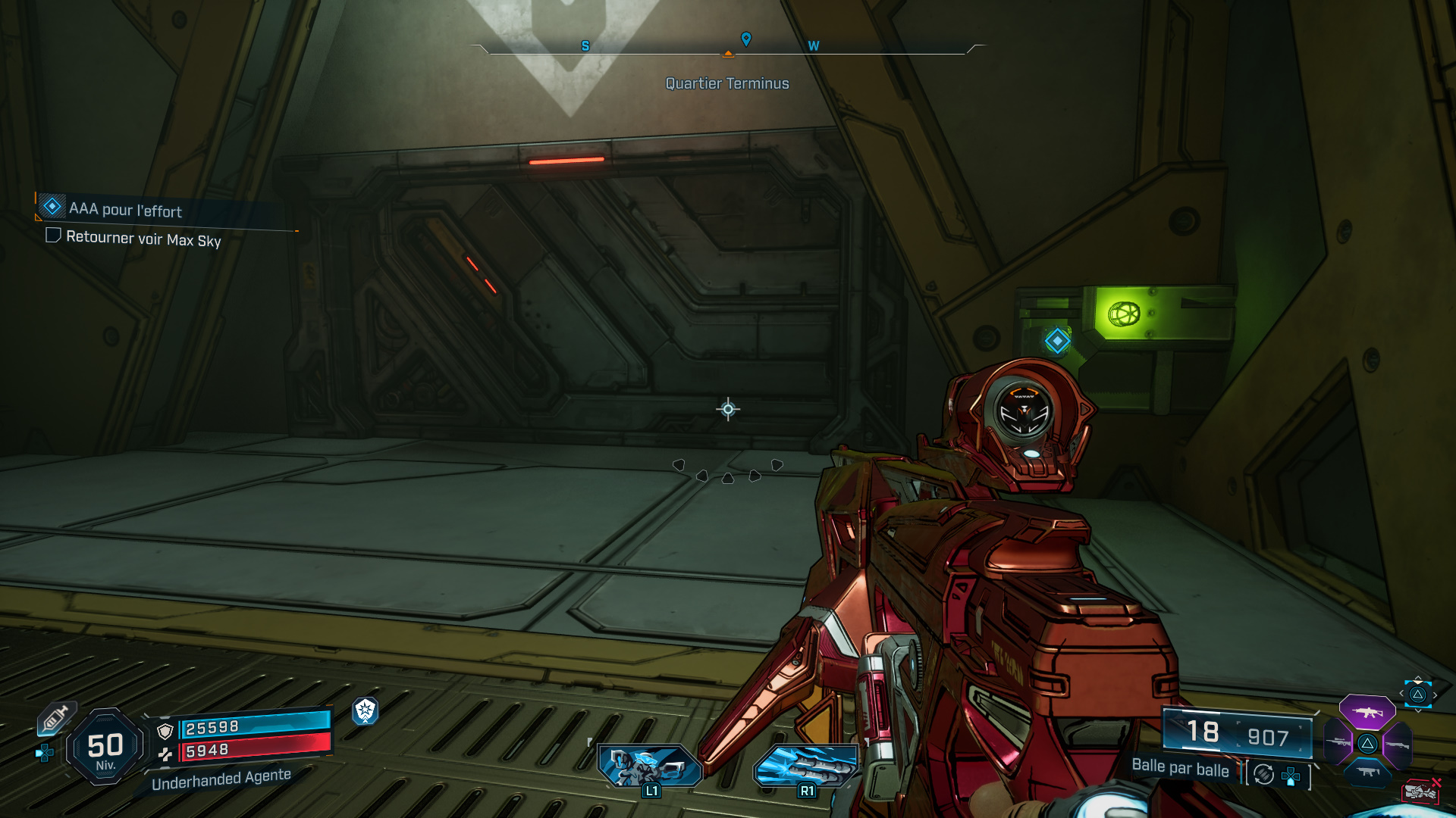 - Point de départ : Max Sky, via une console, au nord-est du Sous-laboratoire Hydrus