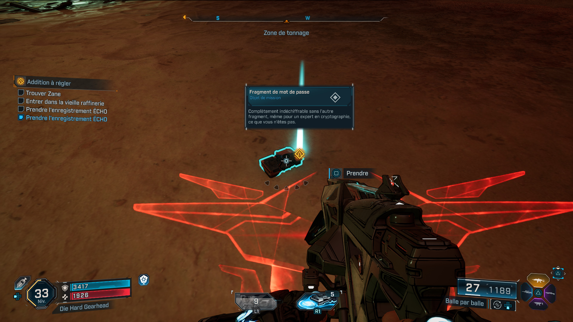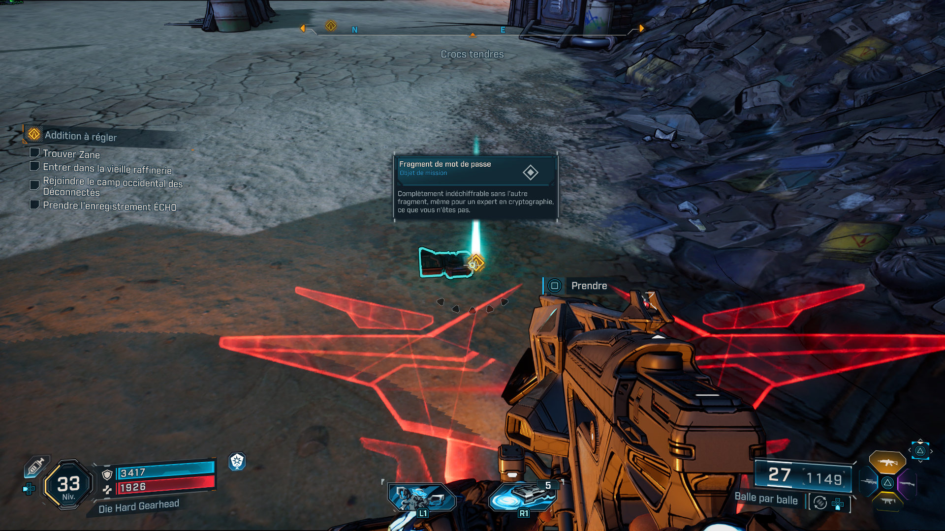 - Récompense : XP + Argent + Eridium + Mitraillette rare ou très rare + Coque d’ECHO-4