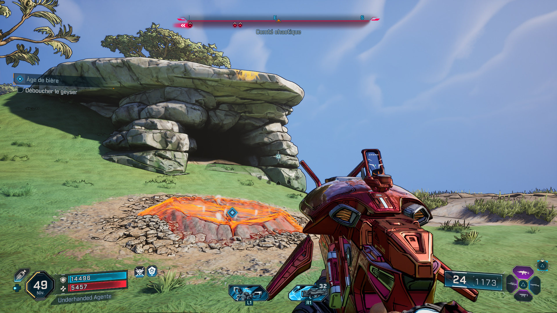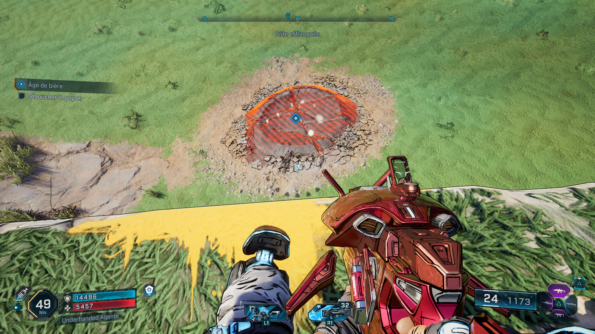 Shammy a repéré un geyser au sud-est de sa cabane, allez donc y jeter un coup d’œil et pilonnez-le depuis la hauteur du rocher à proximité pour le déboucher.