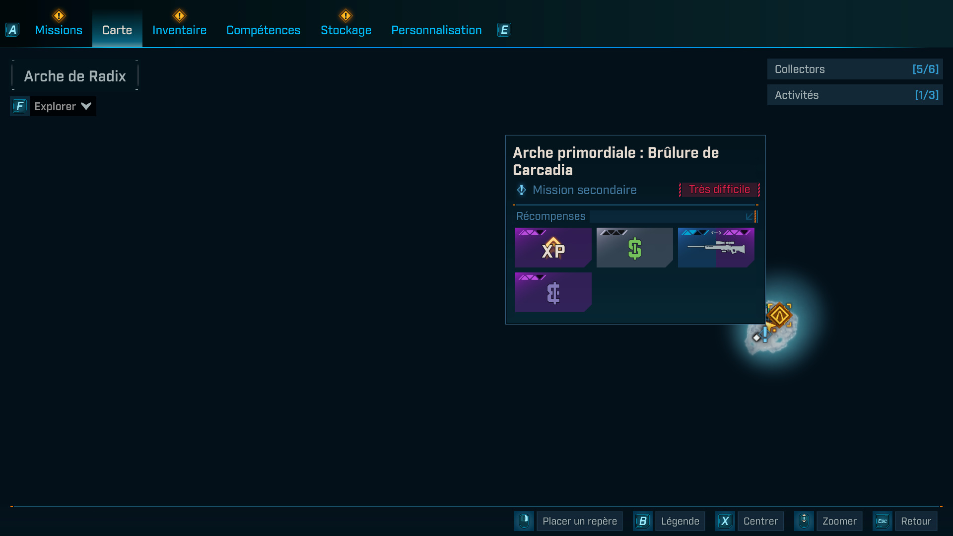 - Pré-requis : Trouver les 3 fragments de clé de l’Arche dans la Brûlure de Carcadia (Face Bancale / Vieux Puisard / Zone de Tonnage)