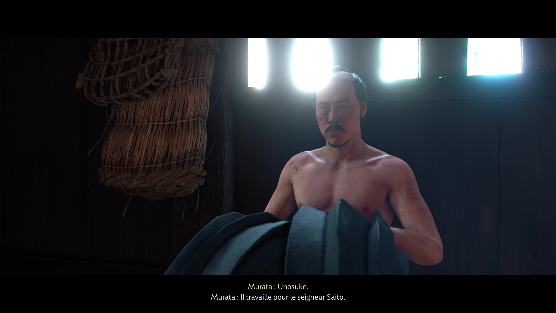 Avant de considérer cette option, Murata emmène Atsu faire un tour. Il lui montre ce qu’Unosuke a fait à son cheval avant de l’emmener à son atelier. C’est ici qu’il vous dit que, si Unosuke est mis hors d’état de nuire, vous obtiendrez l’arme de Murata.
