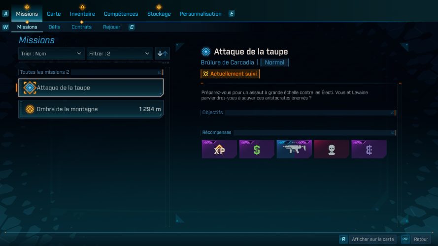 Quittez alors les lieux sans oublier d’ouvrir le coffre rouge avant de partir, et retournez à Carcadia pour discuter avec Levaine et mettre un terme à cette série de missions de faction dédiée aux Electi, ce qui débloque le succès/trophée « Traîtrise et snobisme ».