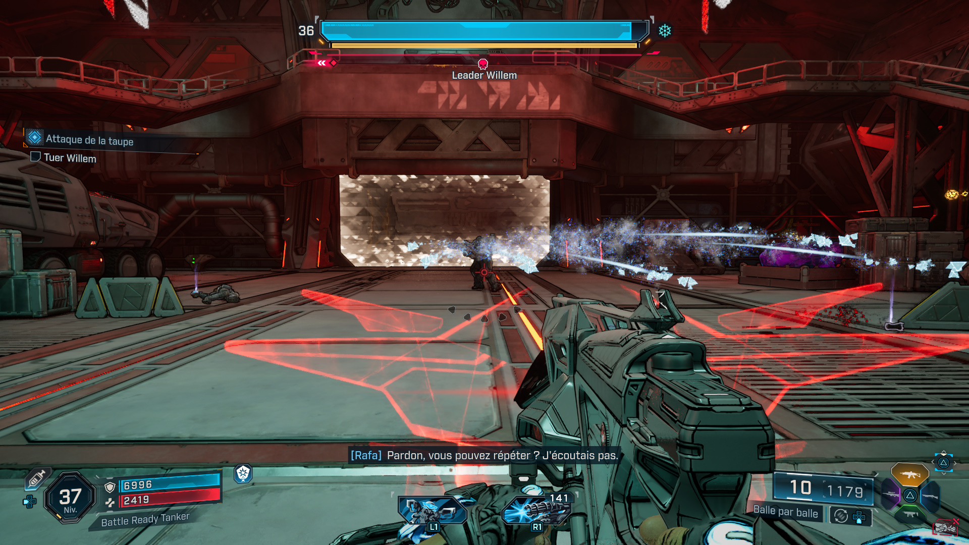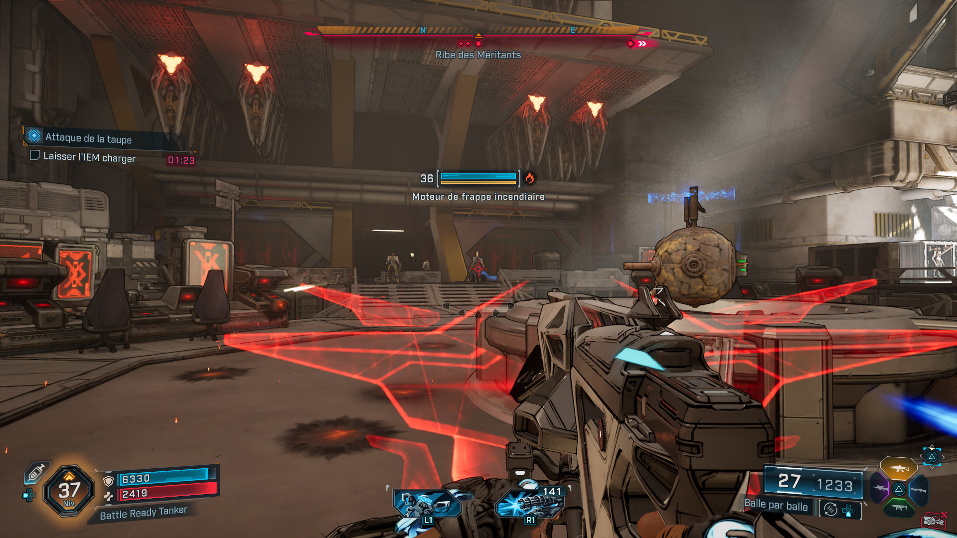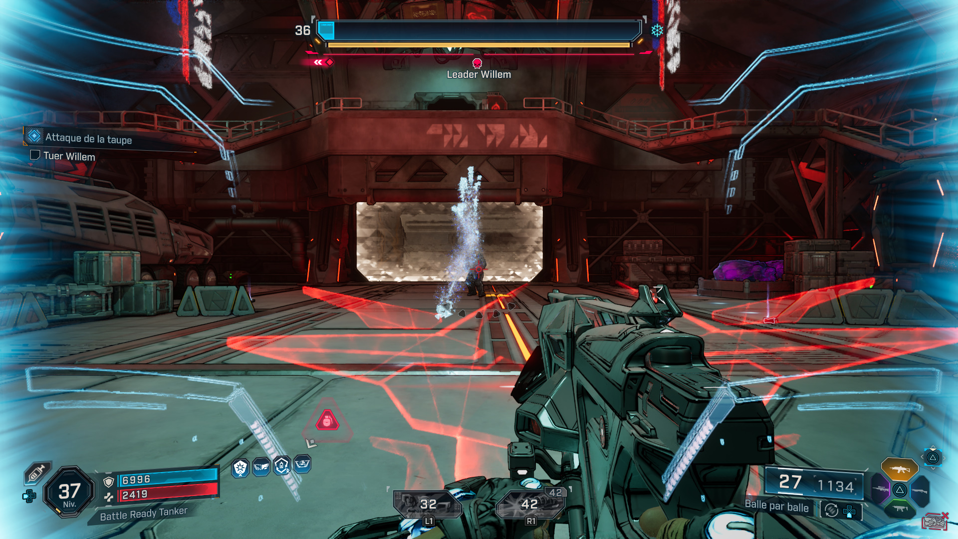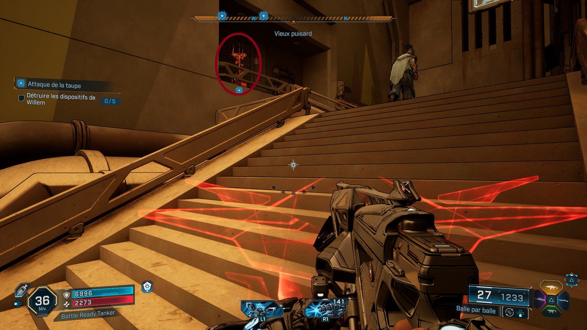 C’est alors qu’un compte à rebours d’1 min 30 commence, le temps pour l’IEM de charger, mais aussi de vous défendre contre une vague de cyborgs. Au bout du temps imparti, il ne vous reste plus qu’à rejoindre Willem en descendant dans l’arène un peu plus loin.