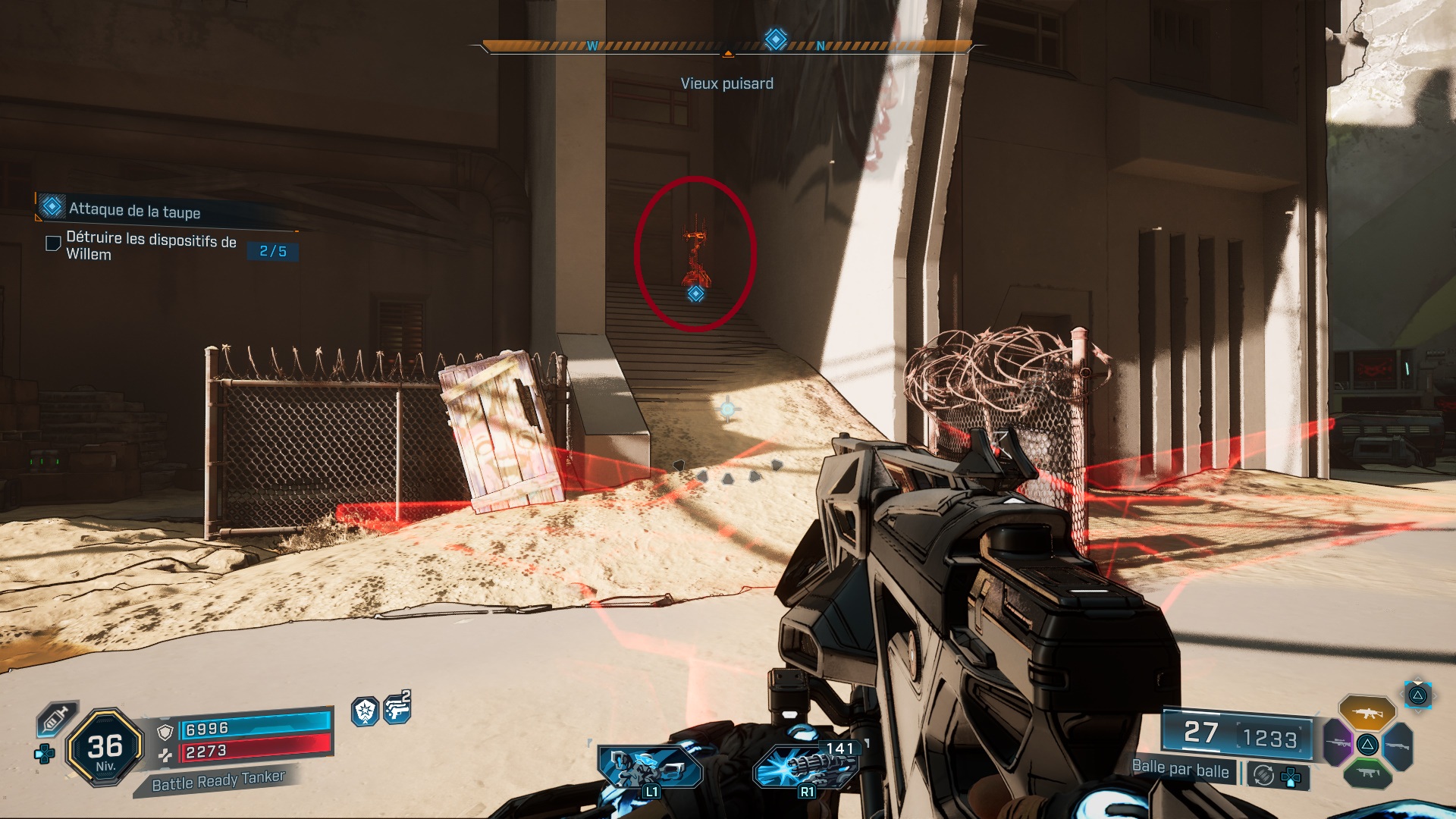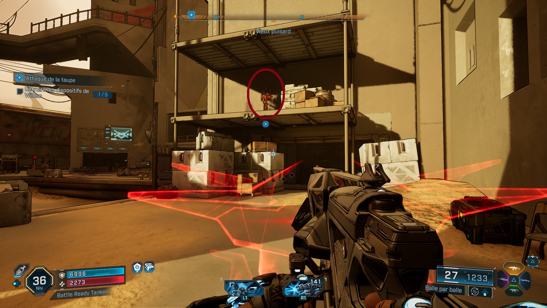 Dans l’enceinte du dépôt, frayez-vous un chemin vers votre objectif en suivant l’indicateur de votre boussole, et tout en vous débarrassant des ennemis sur votre passage, jusqu’à atteindre le dépôt en question.