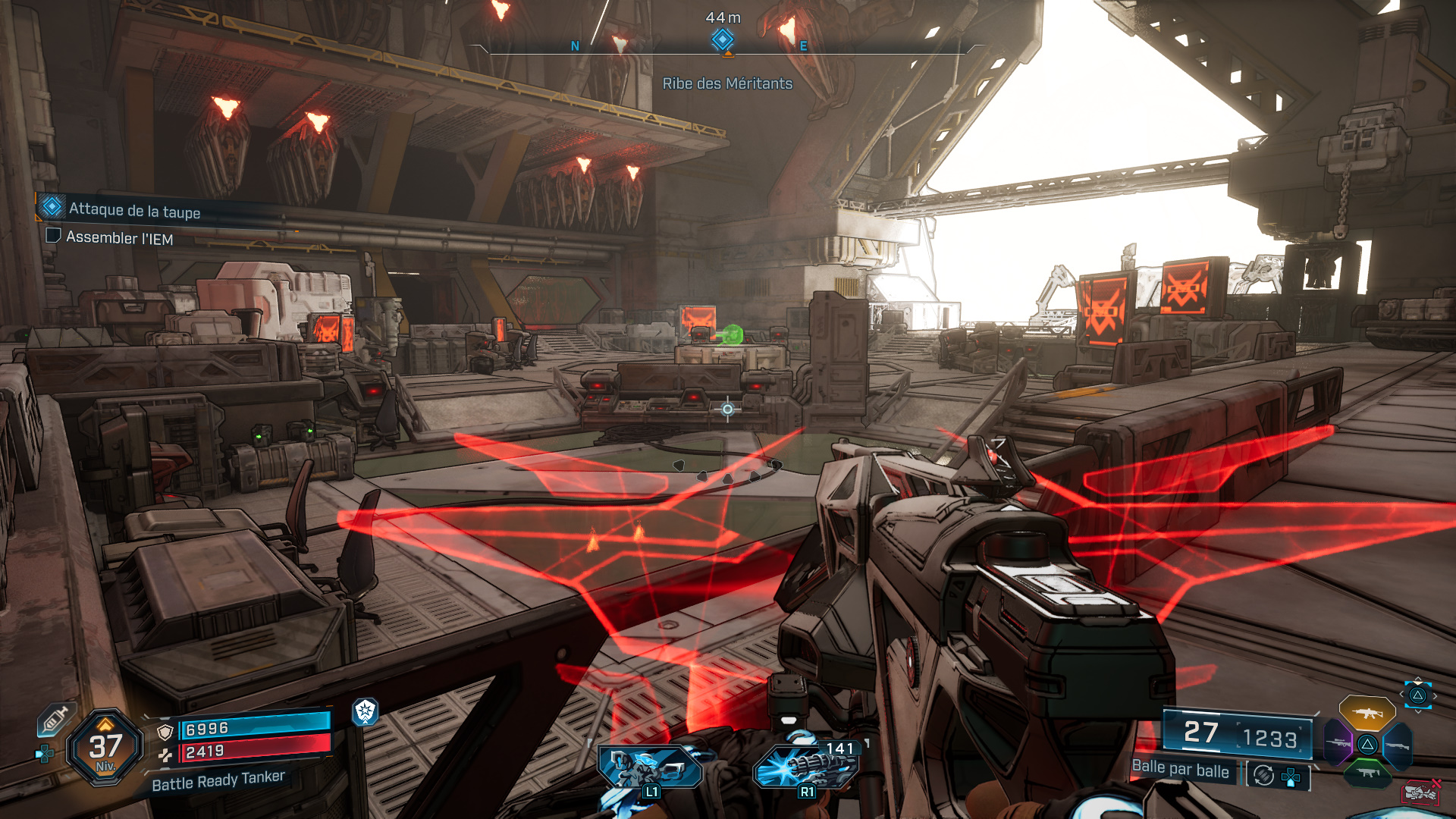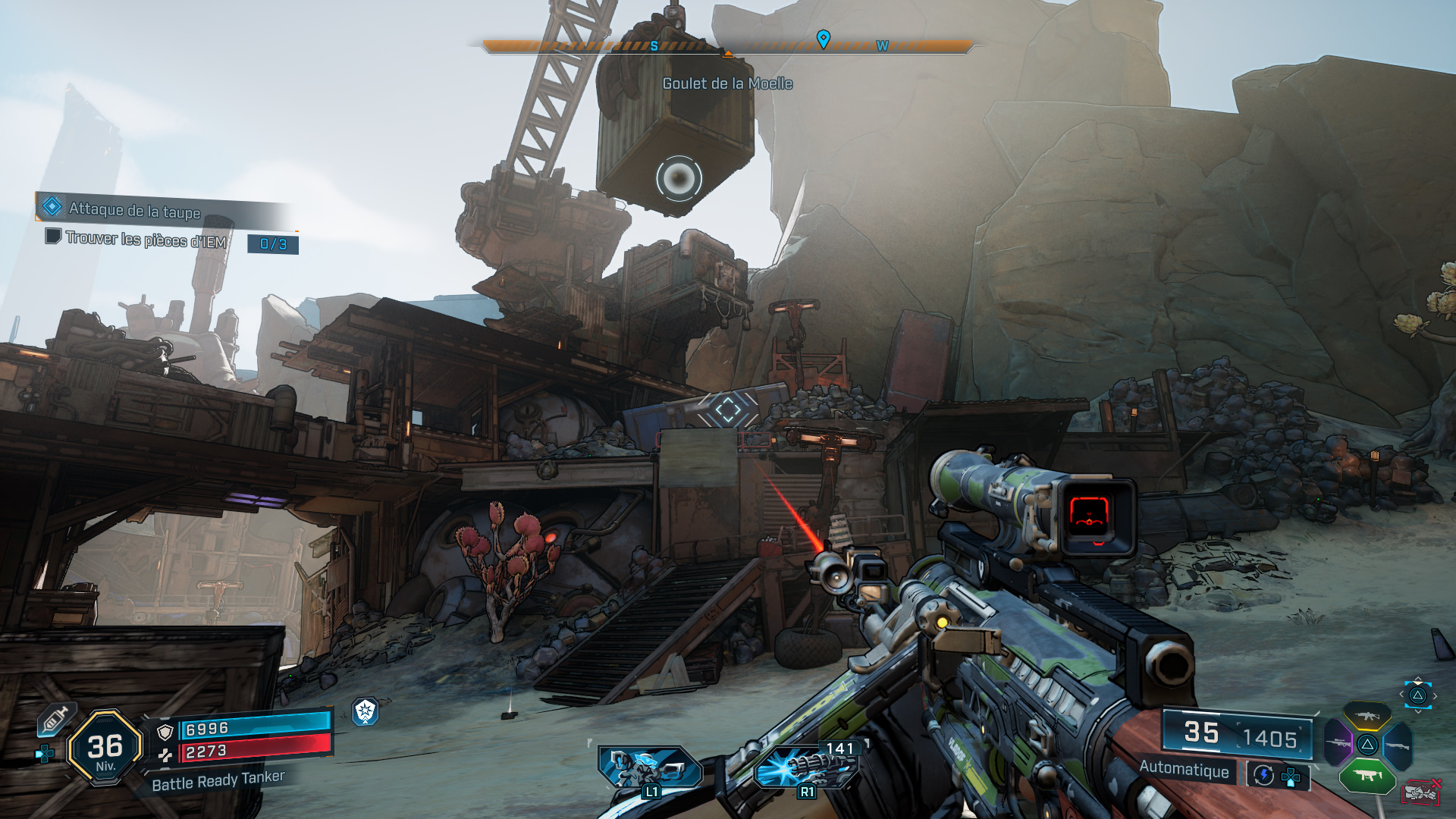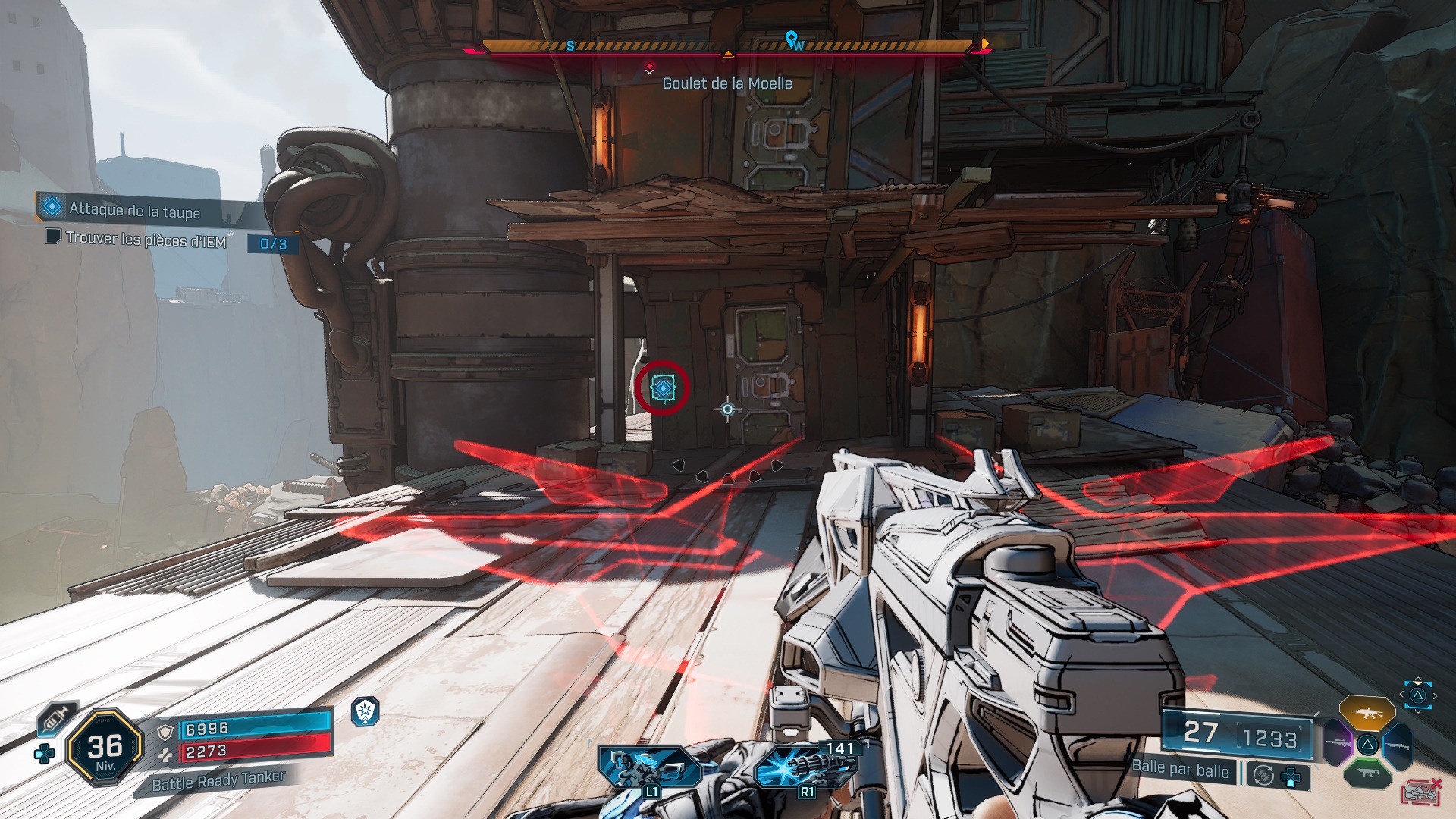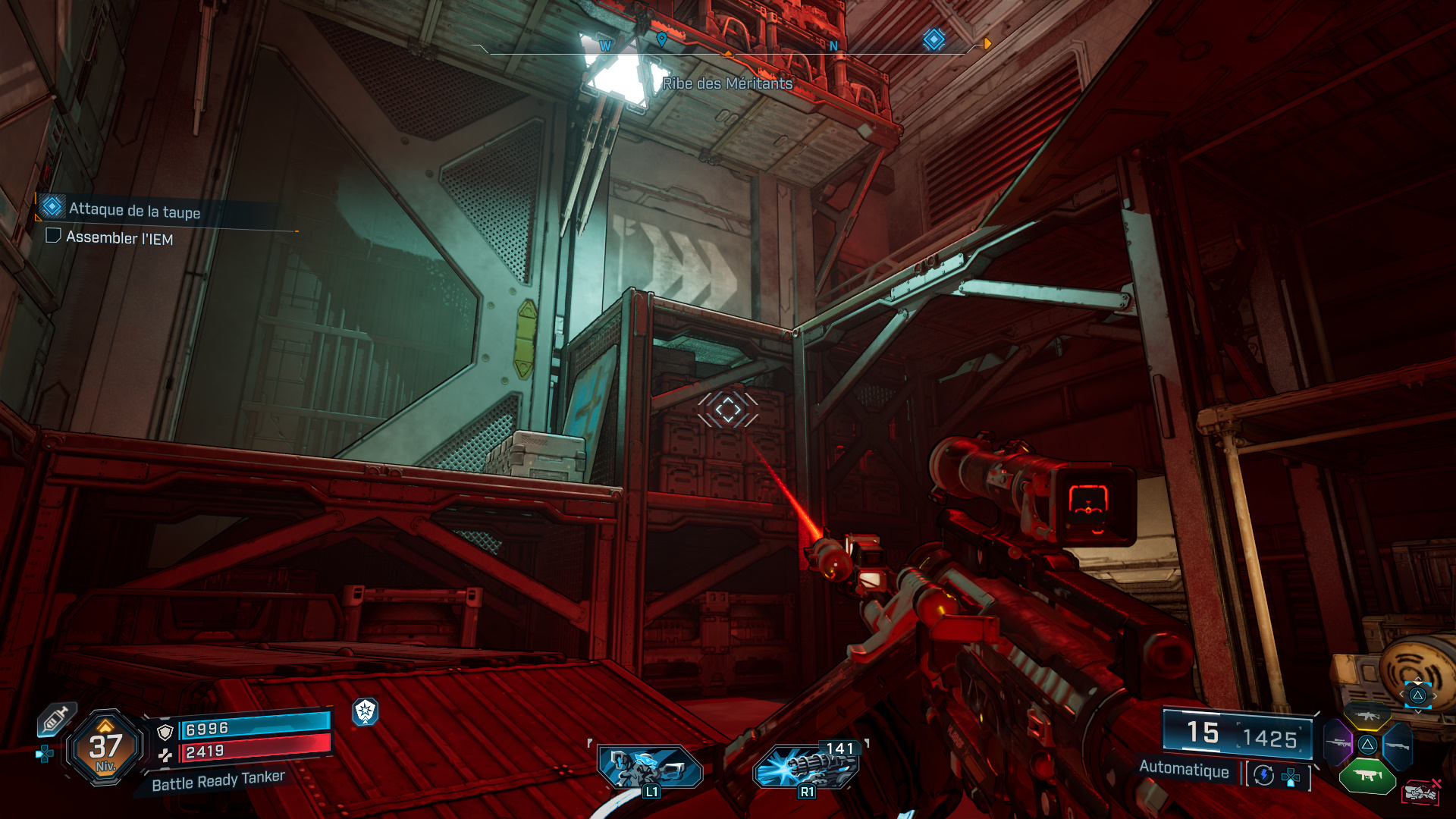 Puis, il s’agit ensuite de trouver 3 pièces d’IEM, quelque part au nord de Carcadia, au niveau du Goulet de la Moelle. Une fois dans la zone d’objectif, tuez tous les ennemis et repérez une première grue vers le sud, l’une des pièces d’IEM se trouvant justement à l’étage du bâtiment adjacent, juste à côté d’une porte.