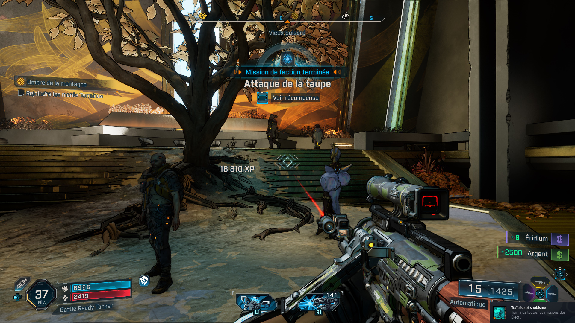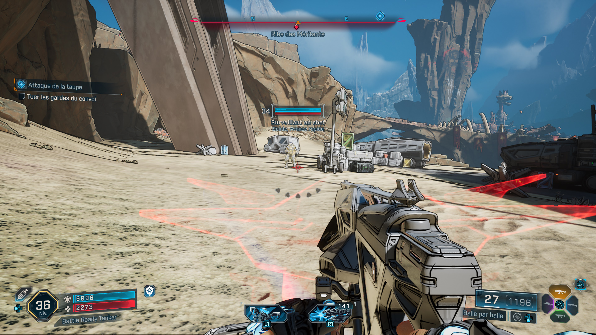 - Récompense : XP + Argent + Eridium + Mitraillette rare ou très rare + Tête de Chasseur de l’Arche