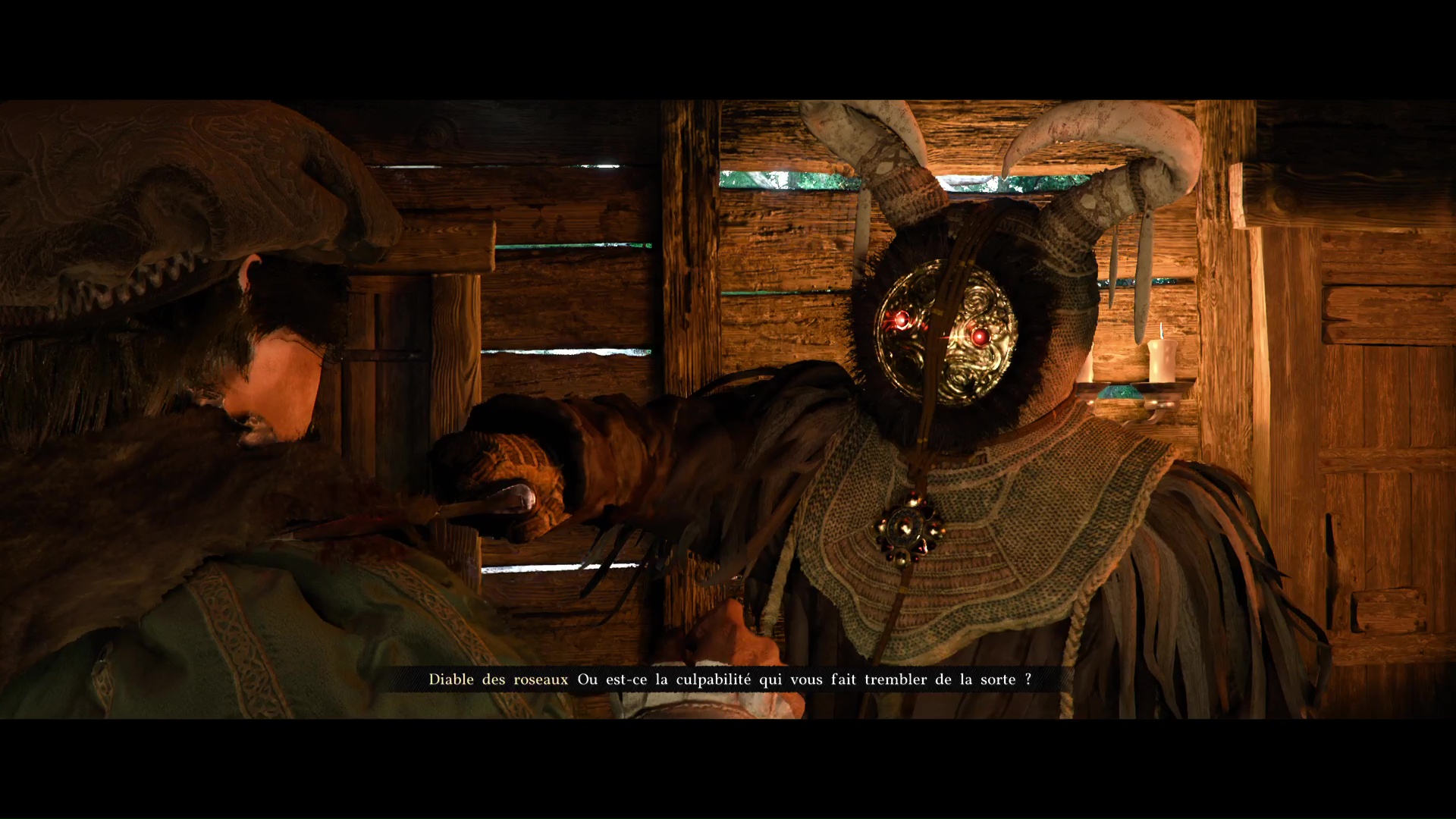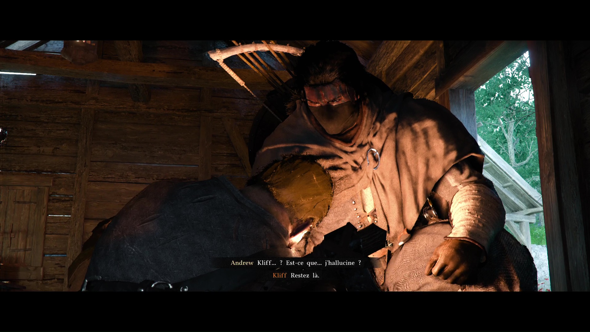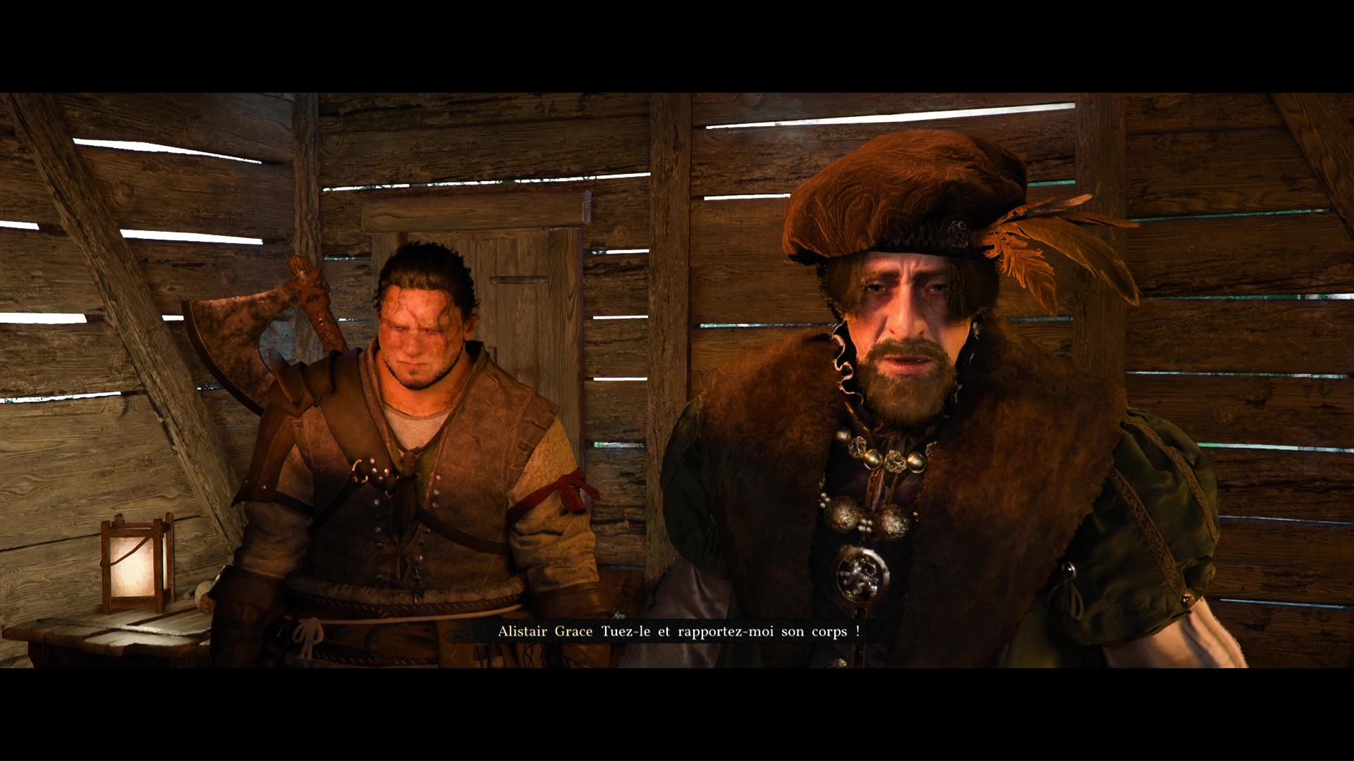Finalement, vous arriverez devant une cabane surveillée par deux gardes. À l’intérieur, Alistair Grace demande à Andrew et Naira de s’occuper du Diable. À peine ces paroles prononcées, ce dernier fait irruption et tue son père.