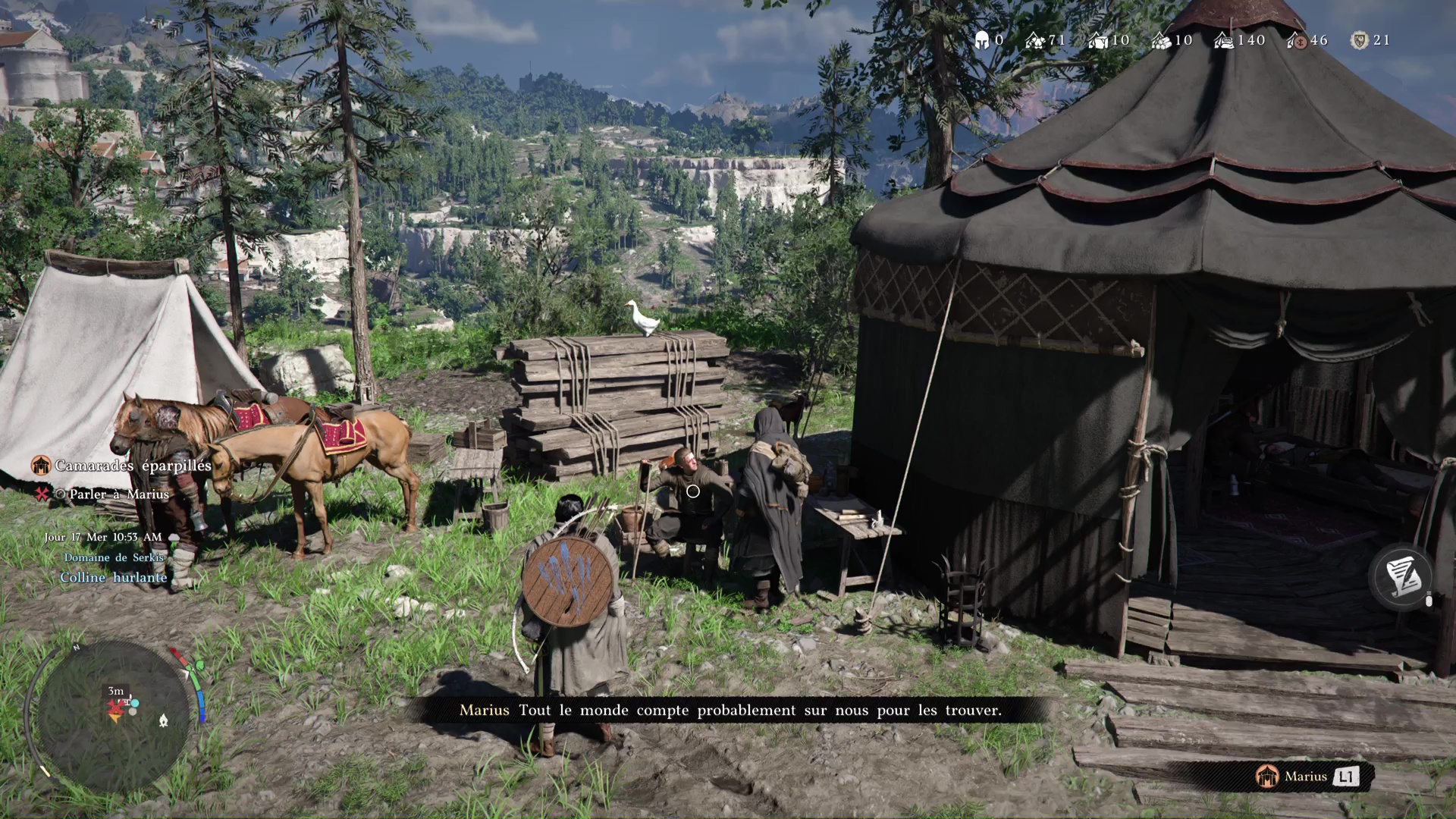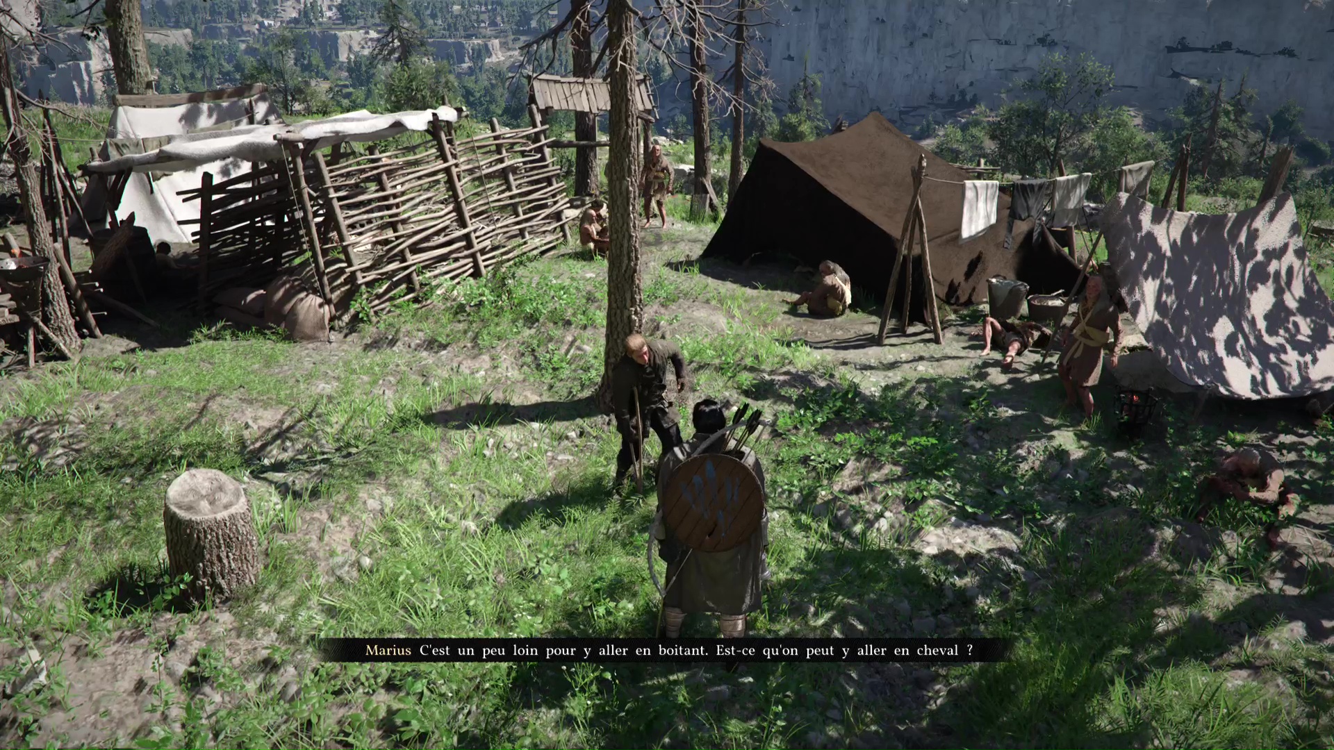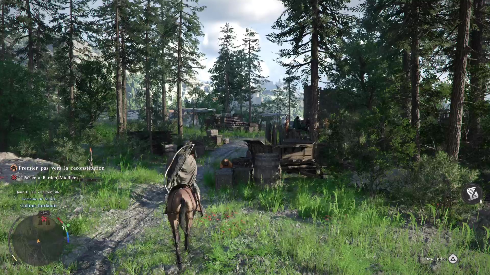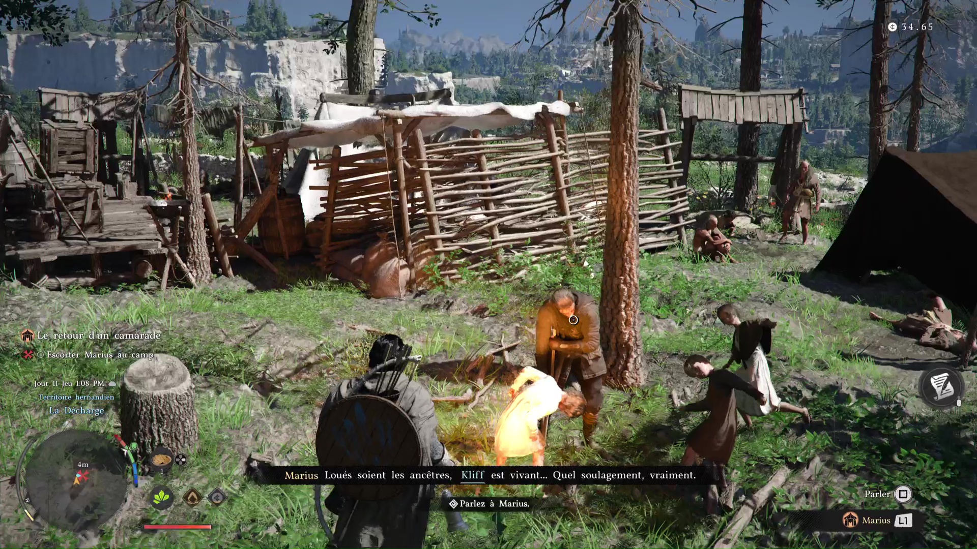 Ce brave Marius, rencontré plus tôt, mérite donc de retrouver son foyer. Mais celui-ci est au sud-ouest de Hernand, à la Décharge. Allez là-bas et parlez-lui pour l’inviter à rejoindre le camp. Vu qu’il est toujours mal en point, il vous demande de l’emmener à cheval.