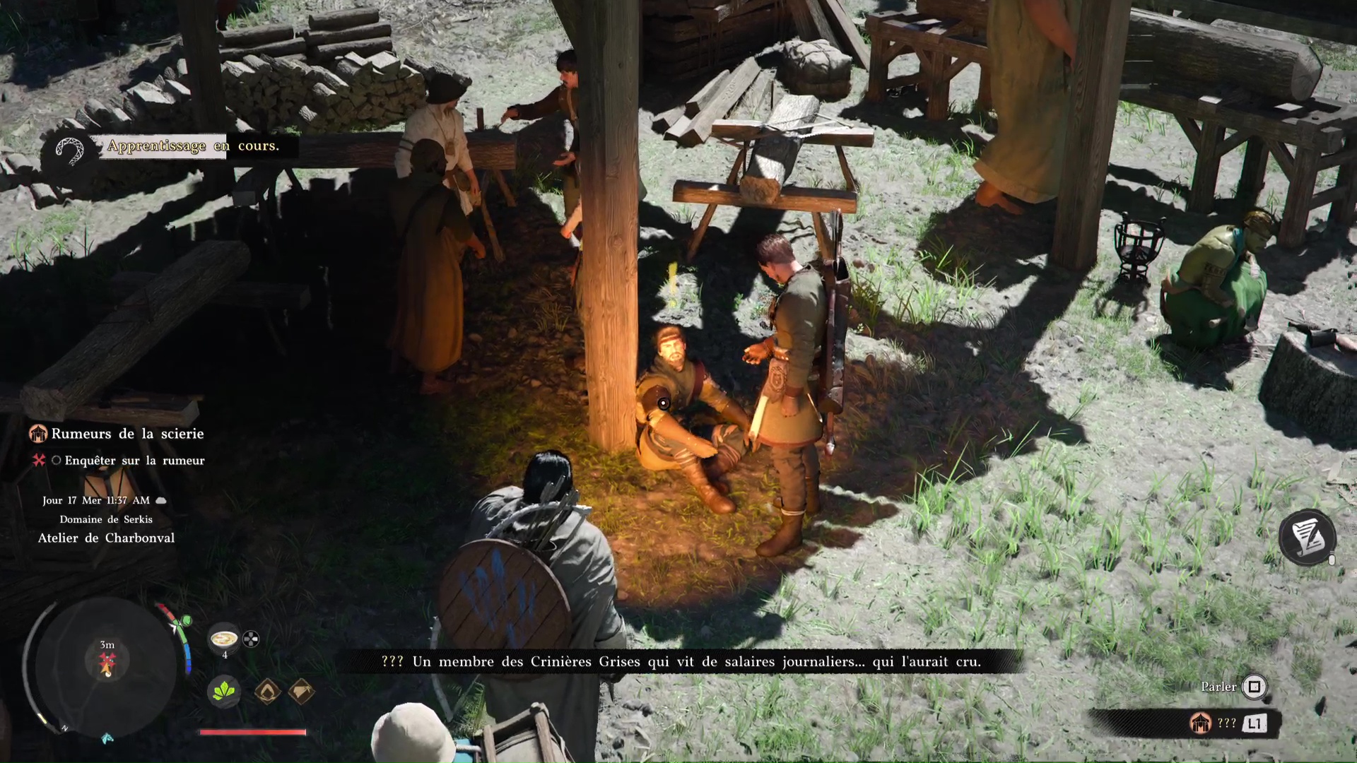 Les recherches commencent près d’une scierie à l’est, où des Crinières Grises travailleraient. Sur place, parlez à l’homme qui est assis contre une poutre. Kliff retrouve ainsi Luke et Ronald, deux camarades. Après une brève discussion, les voilà partis pour la Colline hurlante.